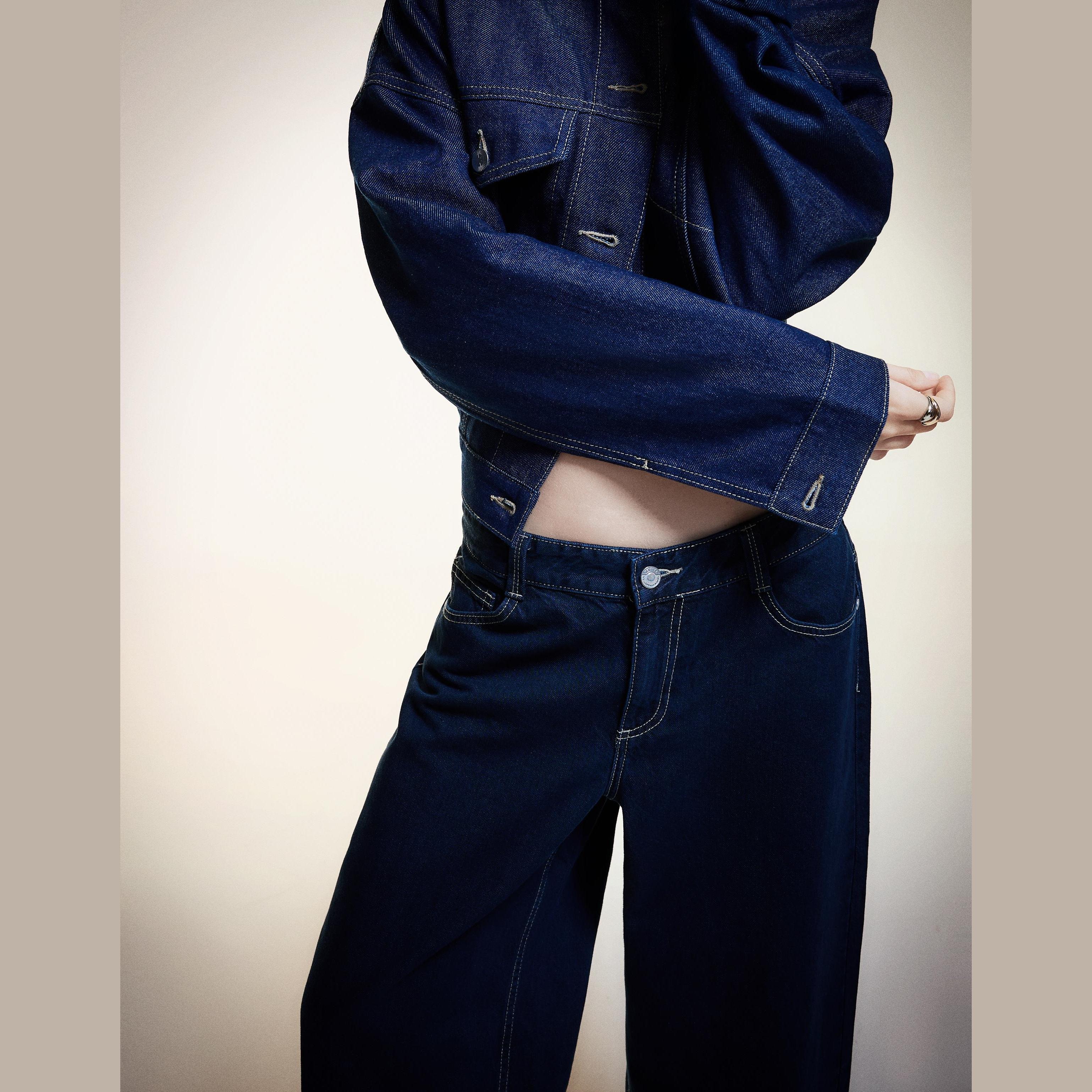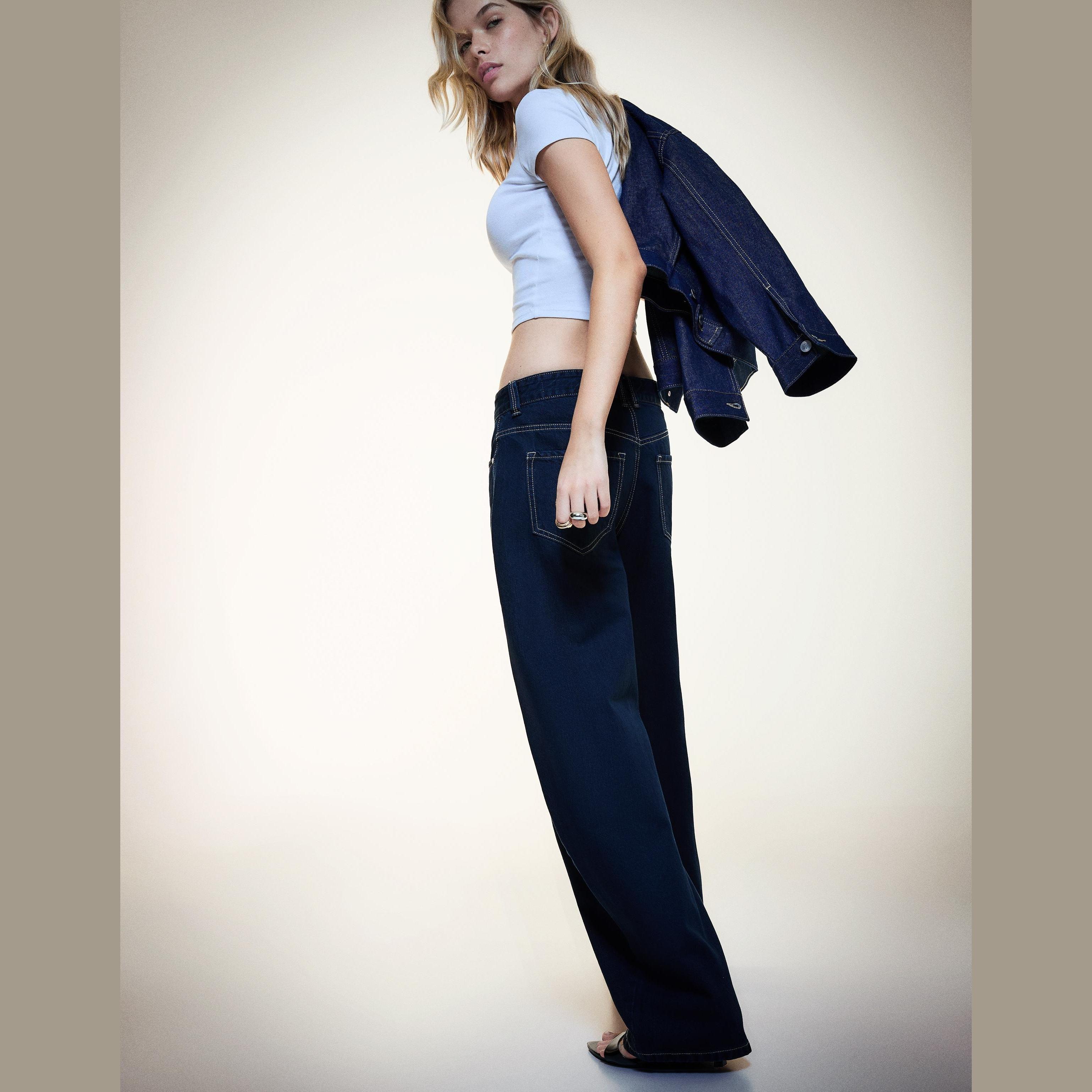Bershka – جينز Baggy Barrel للفتيات بلون كحلي