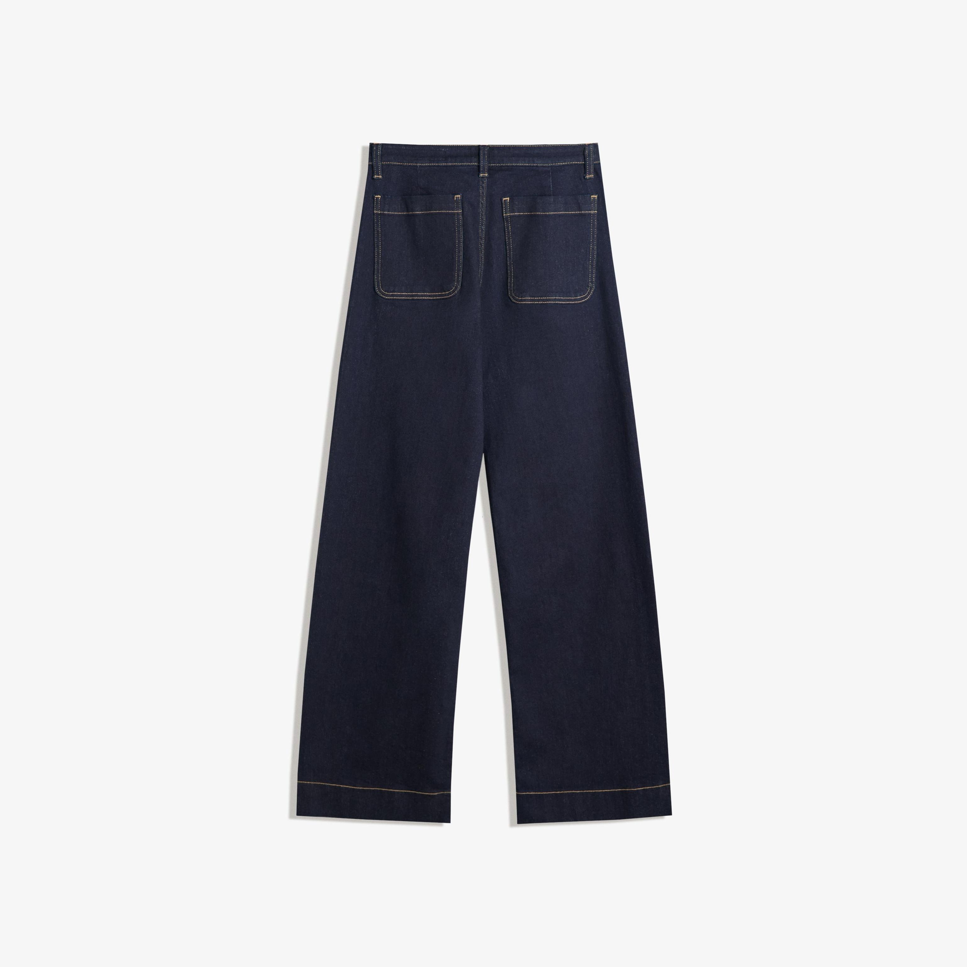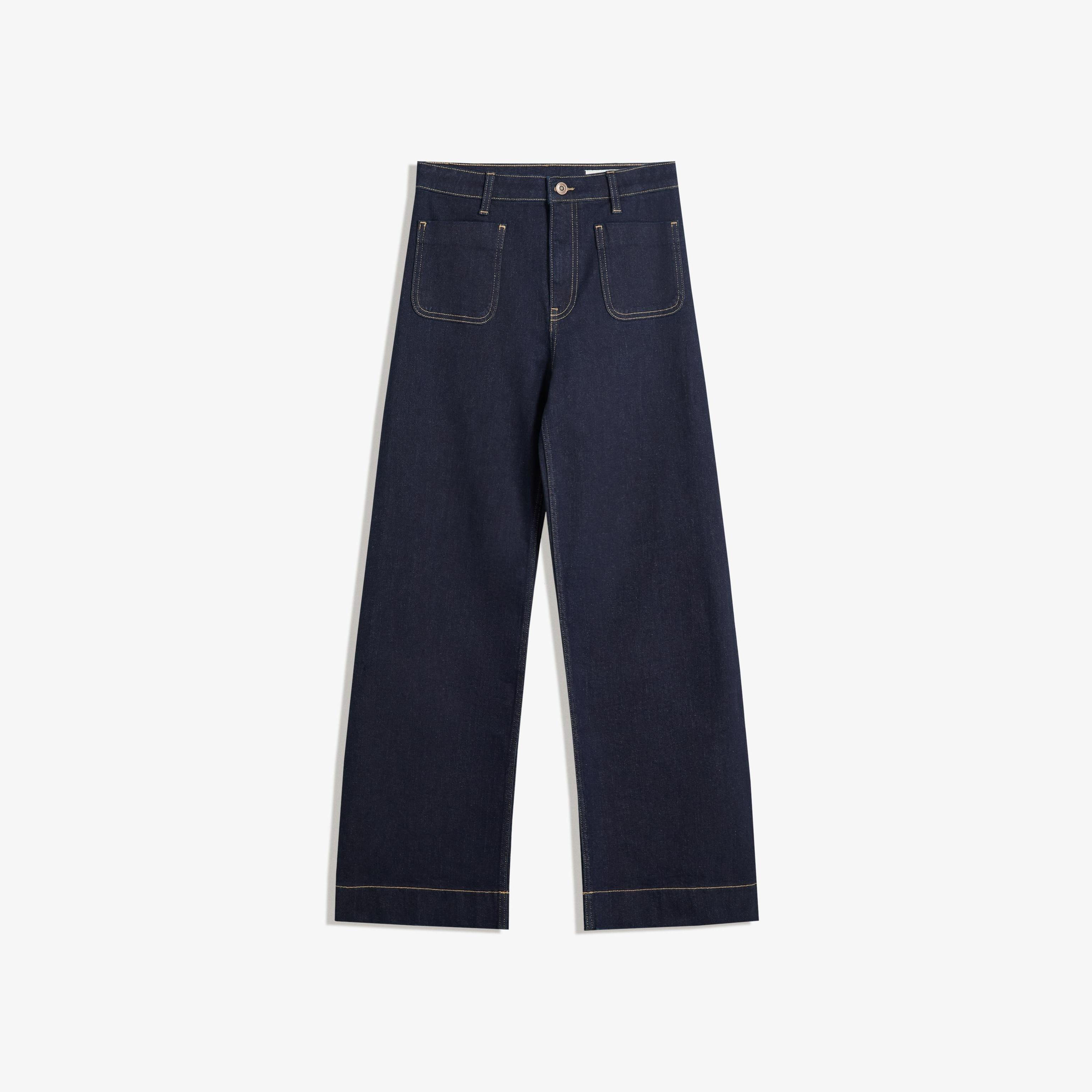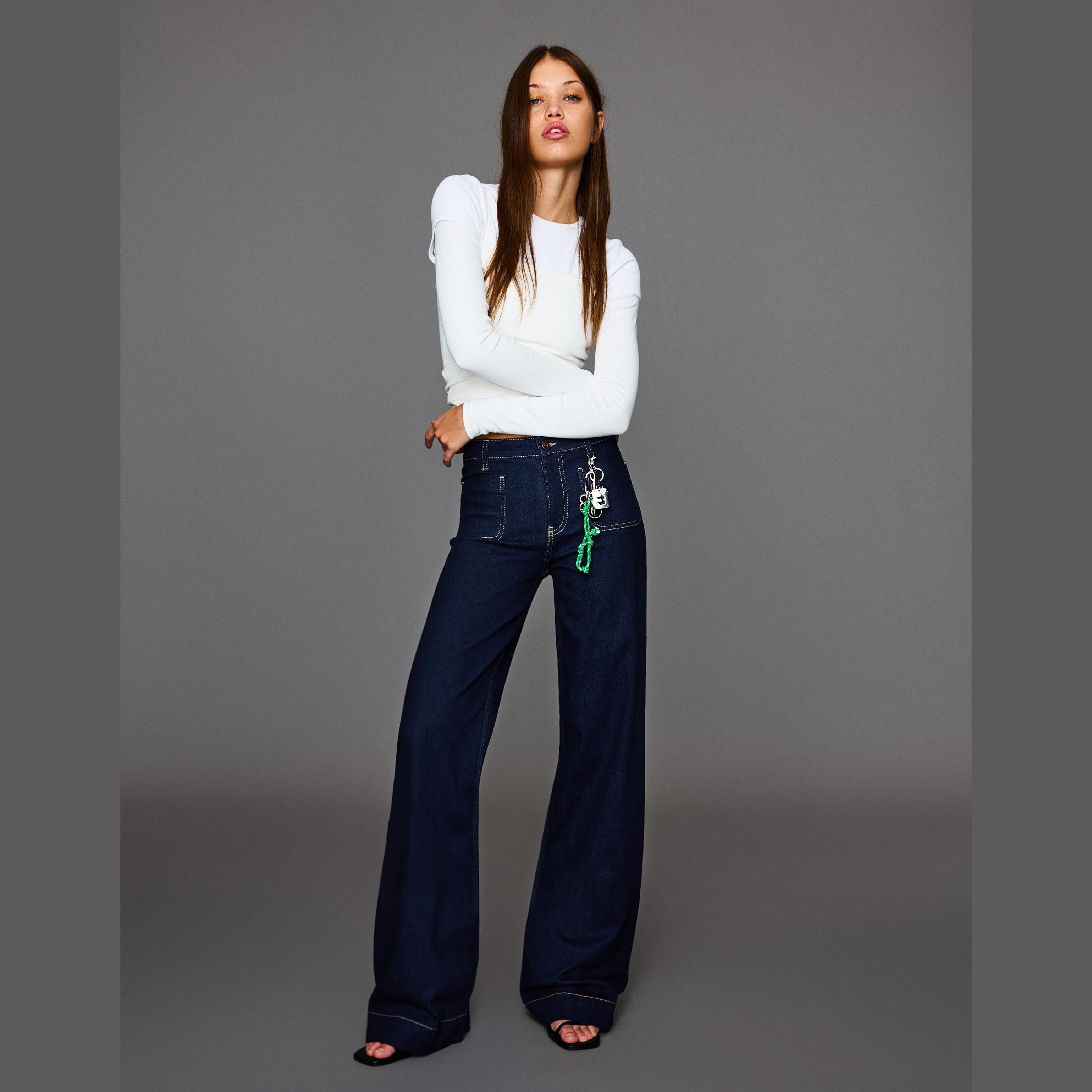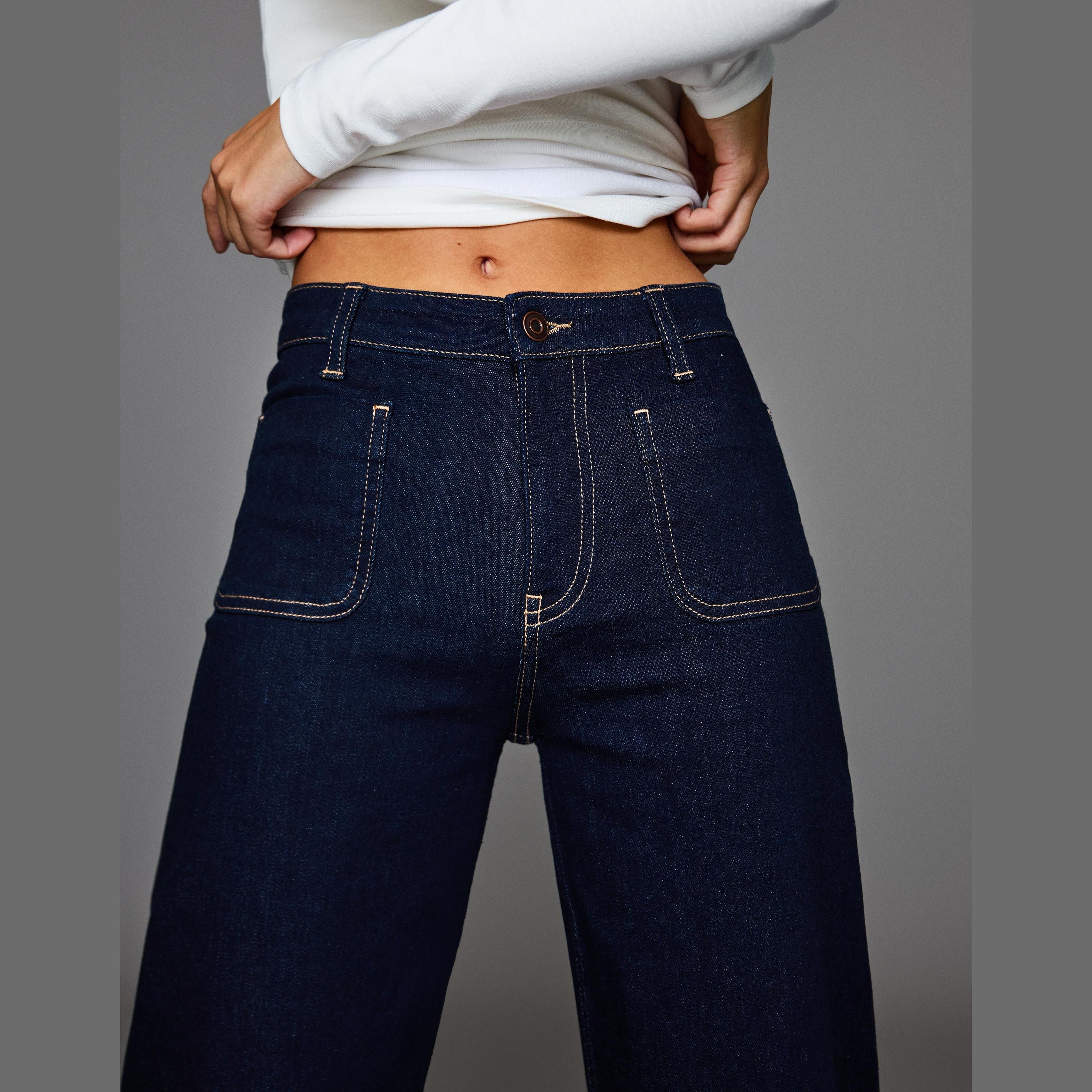 Bershka – جينز واسع الساق بدون خياطة بجيوب للفتيات بلون كحلي
