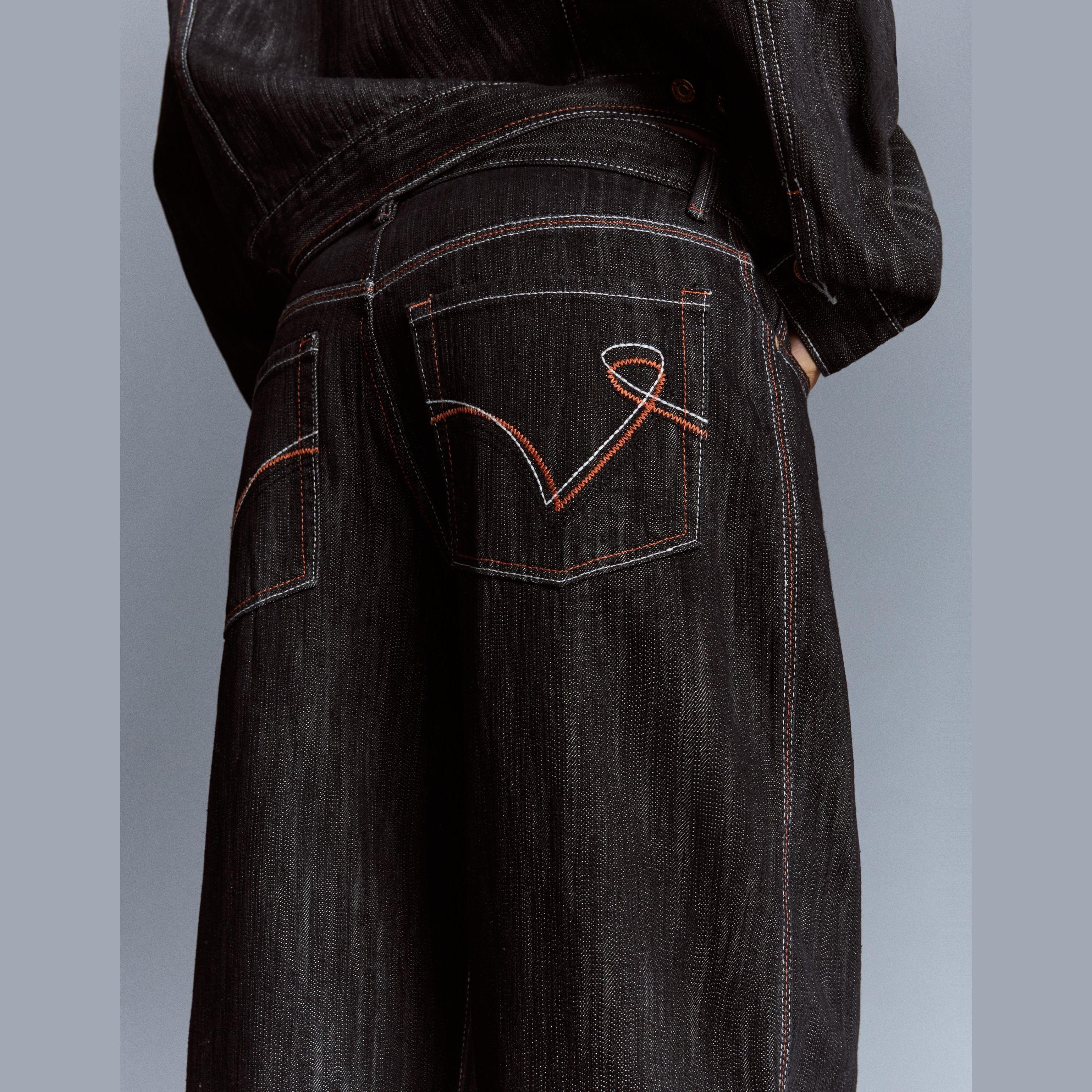 تميّزي بإطلالة فريدة تجمع بين الراحة والستايل مع جينز Jacquard Boyfriend من مجموعة Bershka. تصميمه الفضفاض المستوحى من الملابس الرجالية يمنحك مظهرًا كاجوالًا أنيقًا، بينما تضيف نقشة الجاكار المميزة لمسة فنية تلفت الأنظار. اللون الأسود يجعله قطعة متعددة الاستخدامات في خزانة ملابسك.