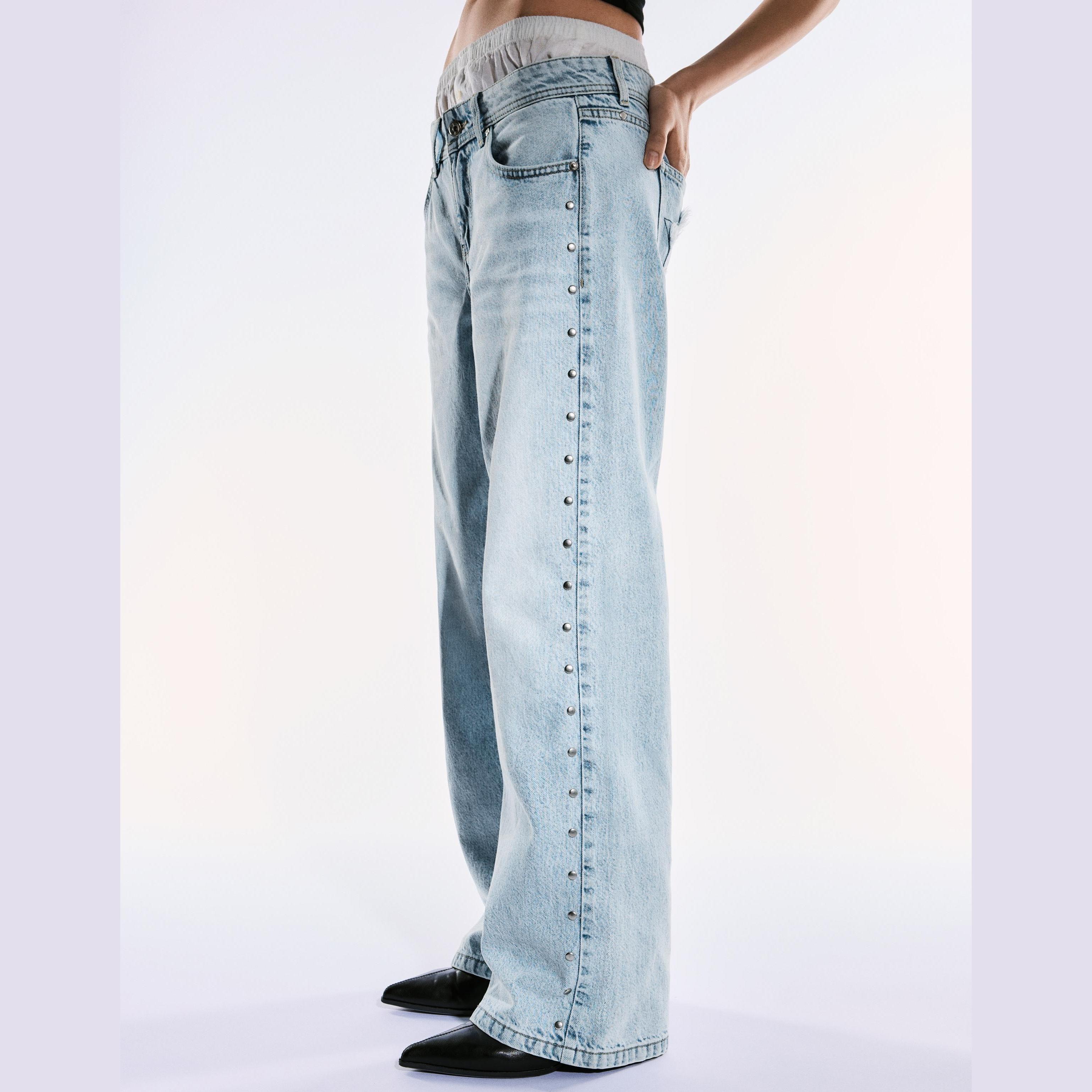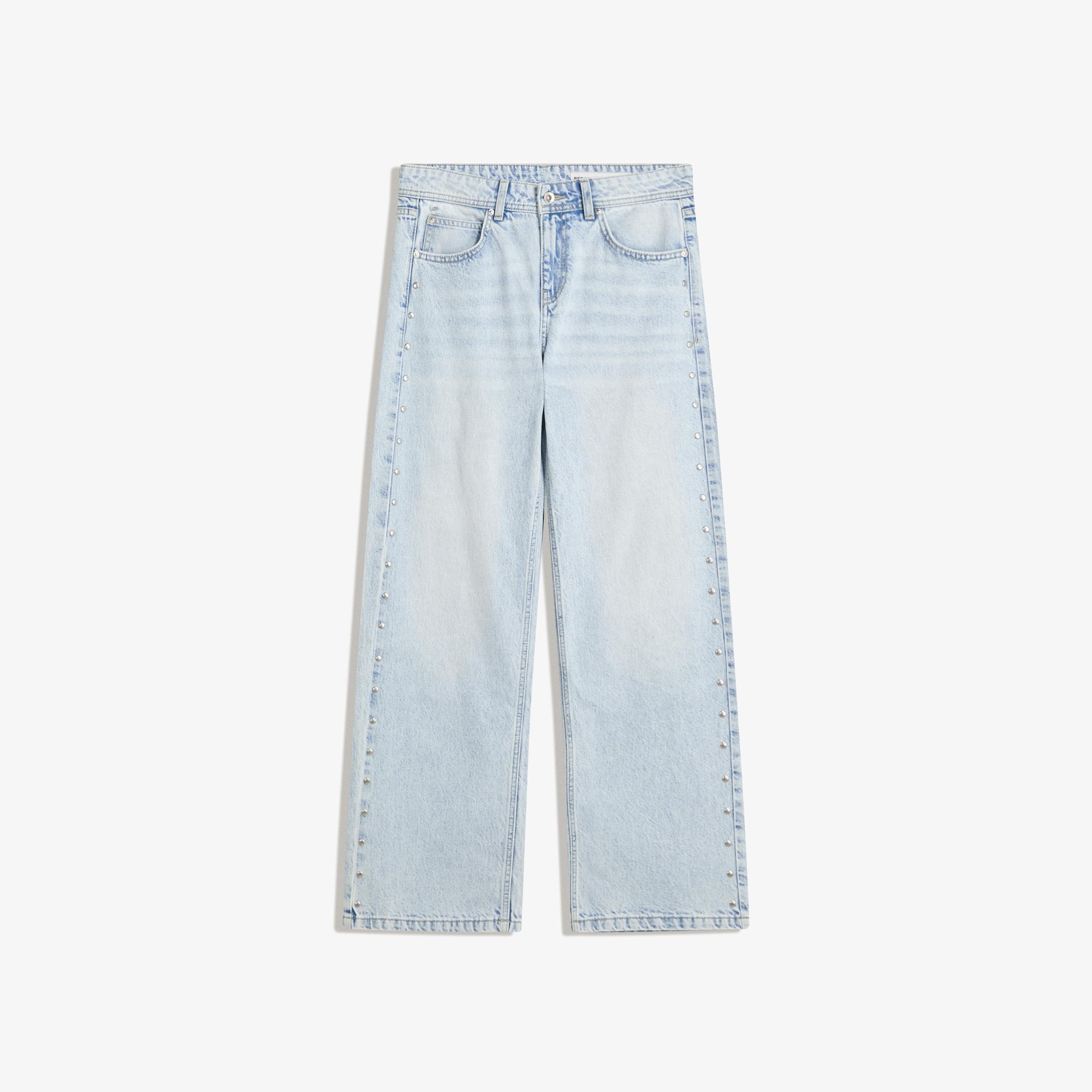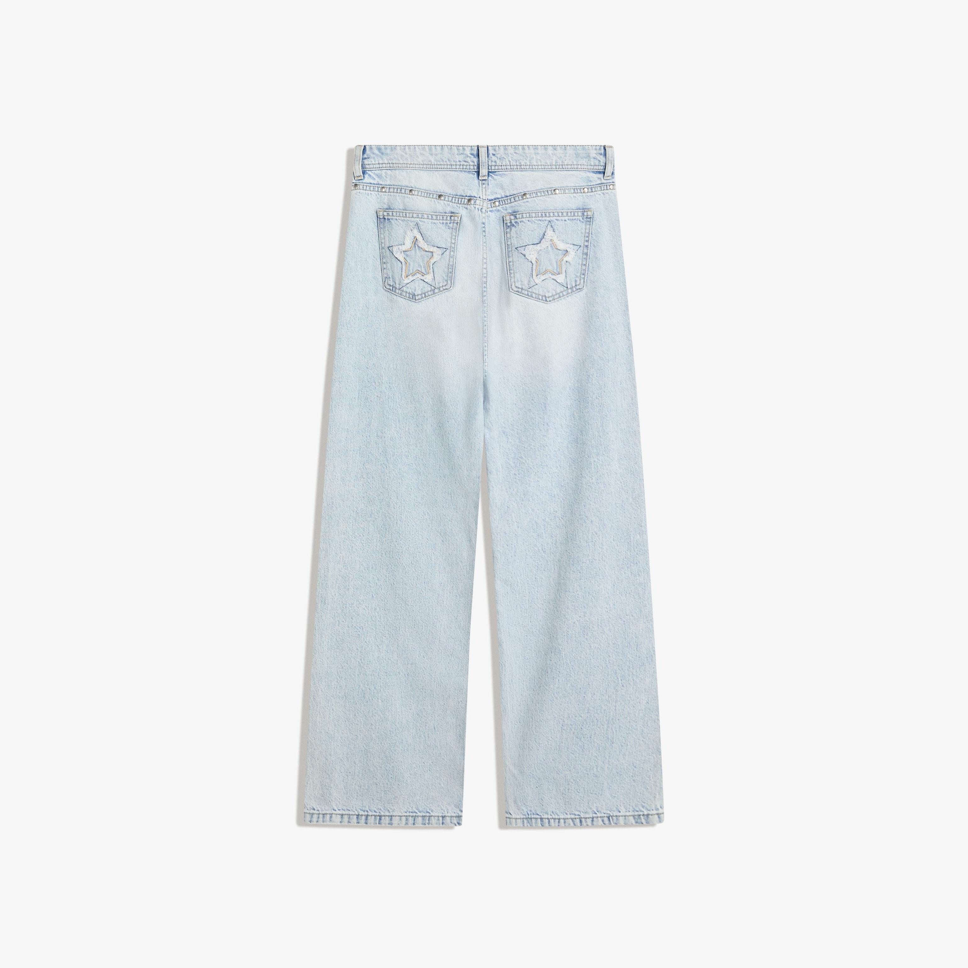 Bershka – جينز Baggy بتفاصيل نجمات ومسامير للفتيات بلون أزرق فاتح