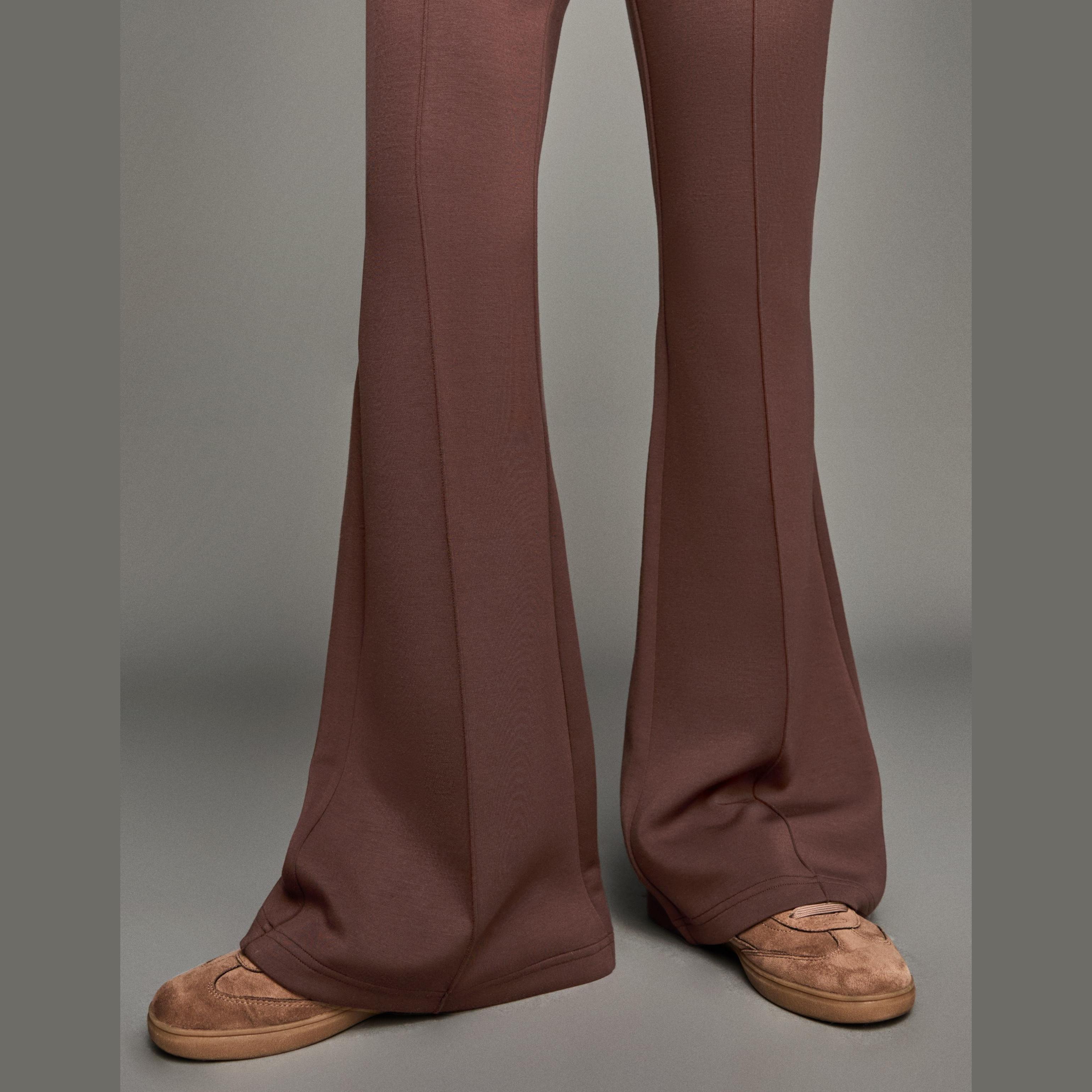 Bershka – بنطلون واسع بقصة Flared بخامة مودال بلون بني