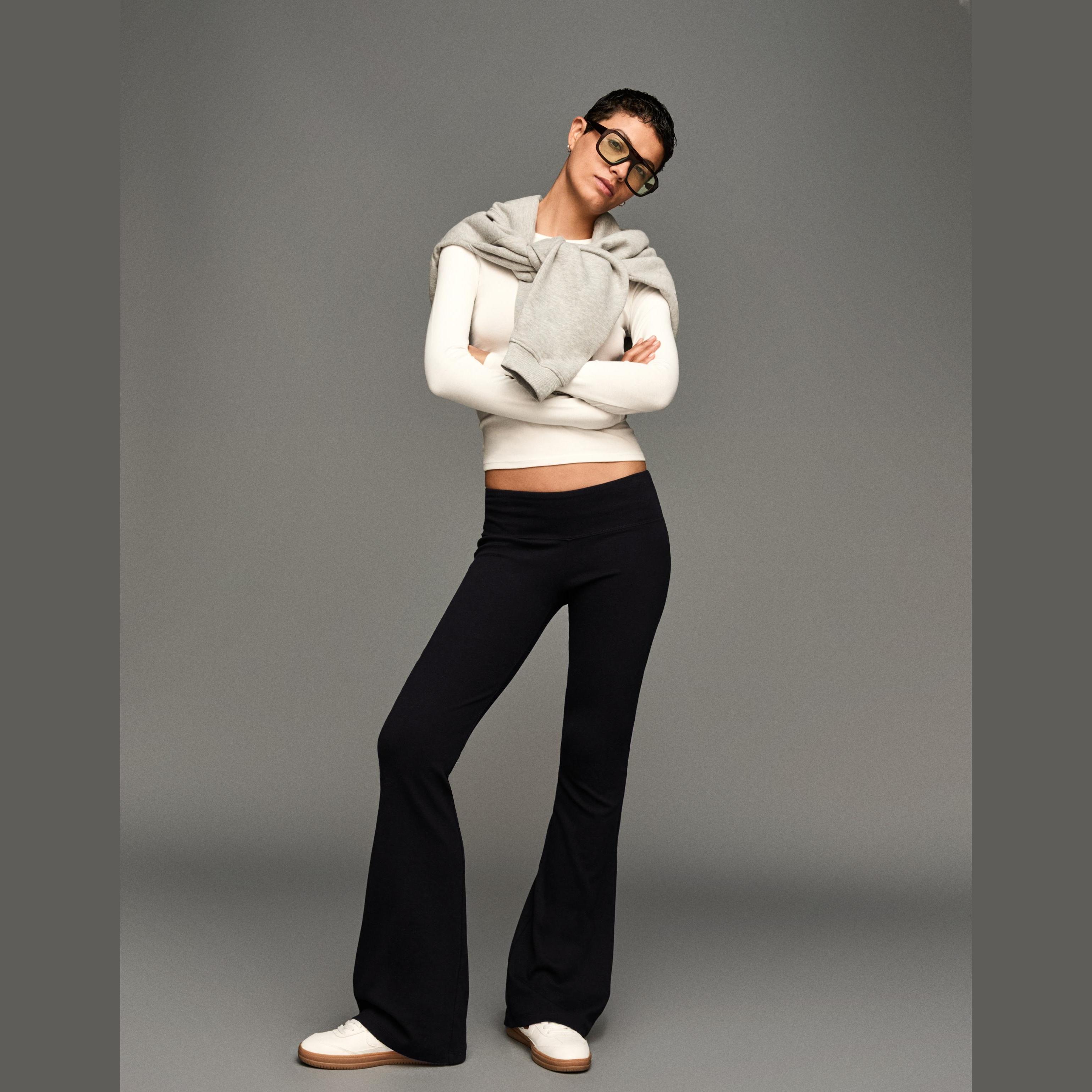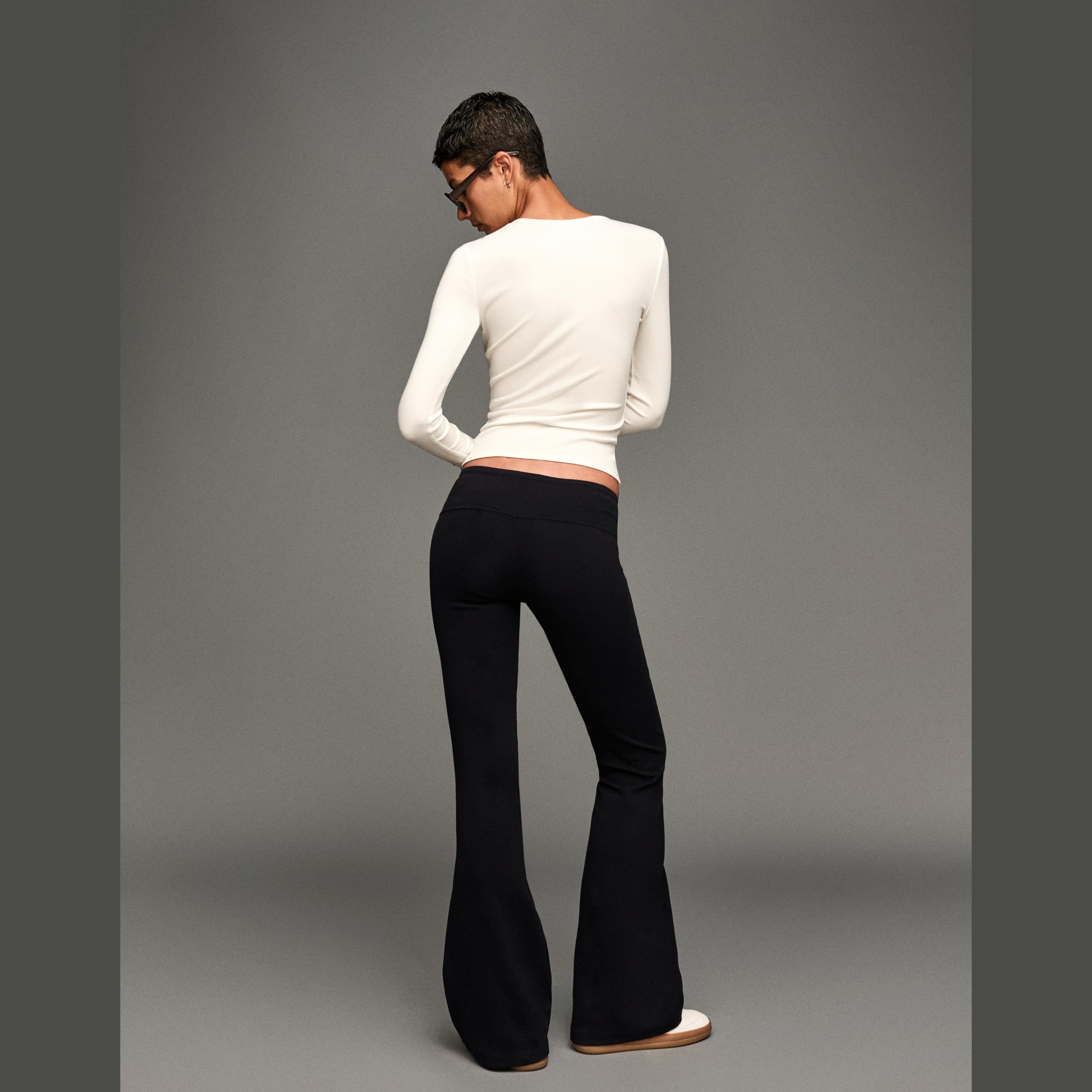 Bershka – بنطلون واسع بقصة Flared للفتيات بلون أسود