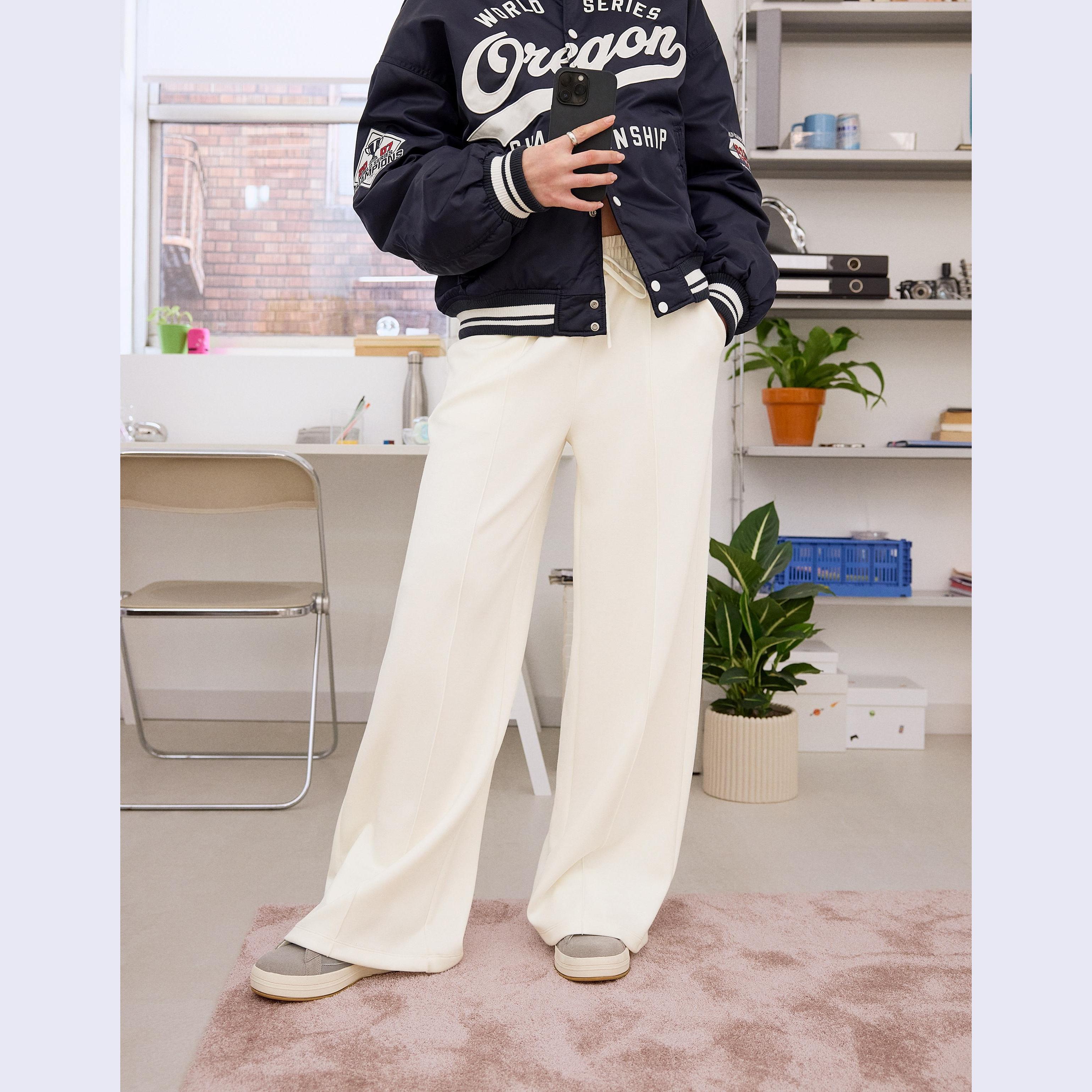 Bershka – بنطلون واسع بخامة ناعمة للفتيات بلون كريمي
