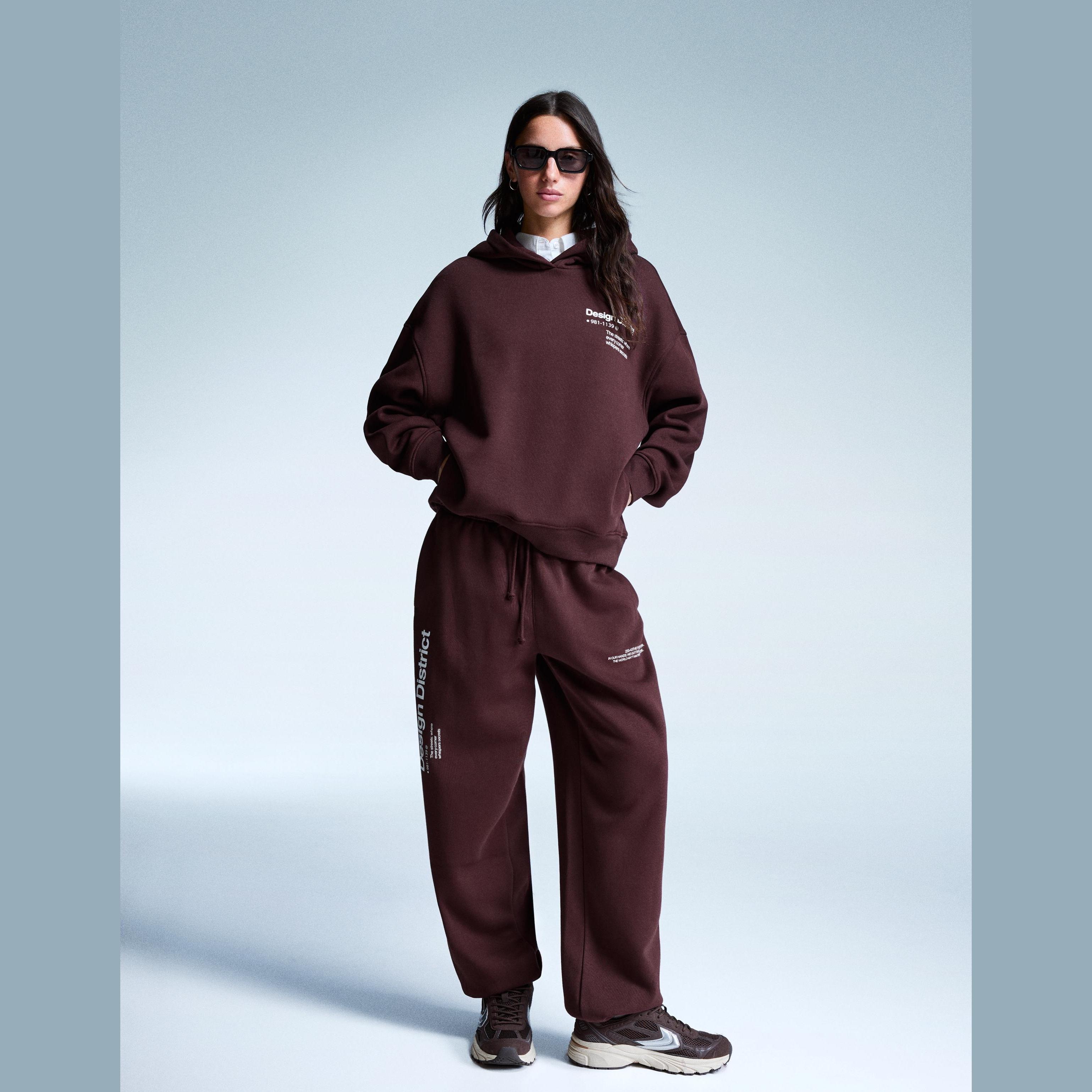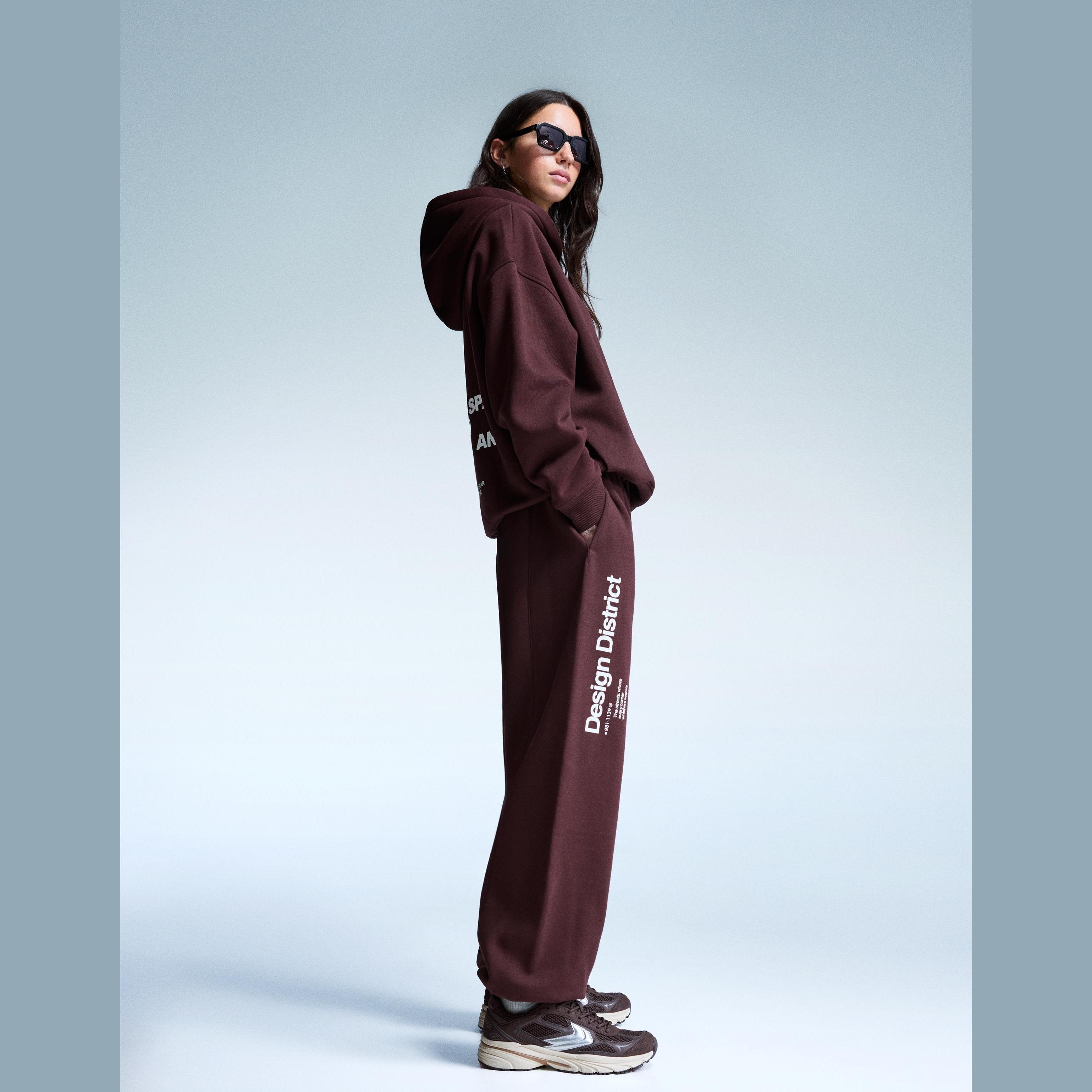 Bershka – بنطلون جوجرز بطبعة للفتيات بلون خمري