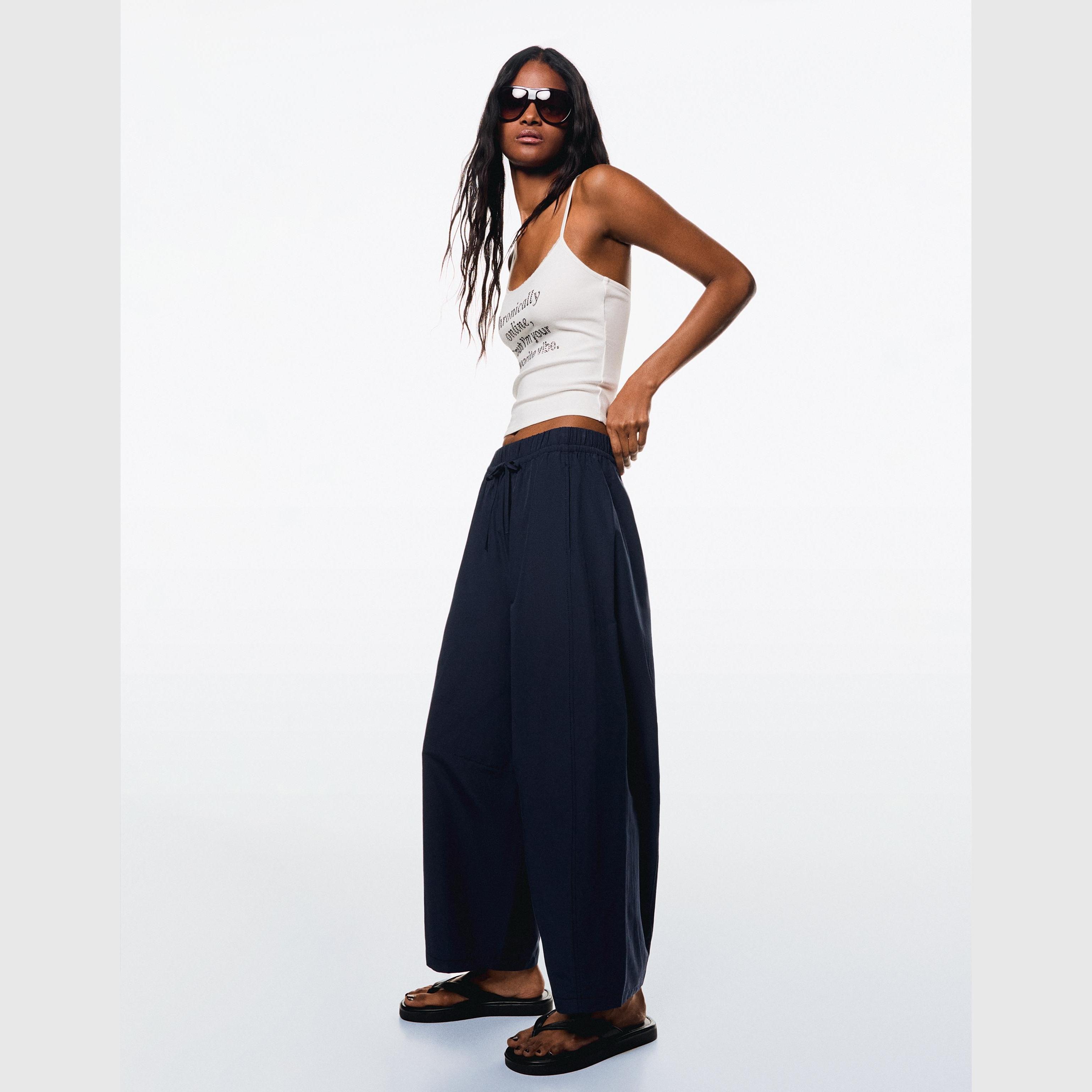 تميّزي بإطلالة عصرية ومريحة مع بنطلون Cropped Barrel الأزرق الداكن من مجموعة Bershka النسائية. تصميمه الواسع من الأعلى والمضيق عند الحافة يمنحك مظهرًا فريدًا يجمع بين الأسلوب العملي والستايل الشبابي. مثالي للإطلالات اليومية أو تنسيقات الشارع الكاجوال.