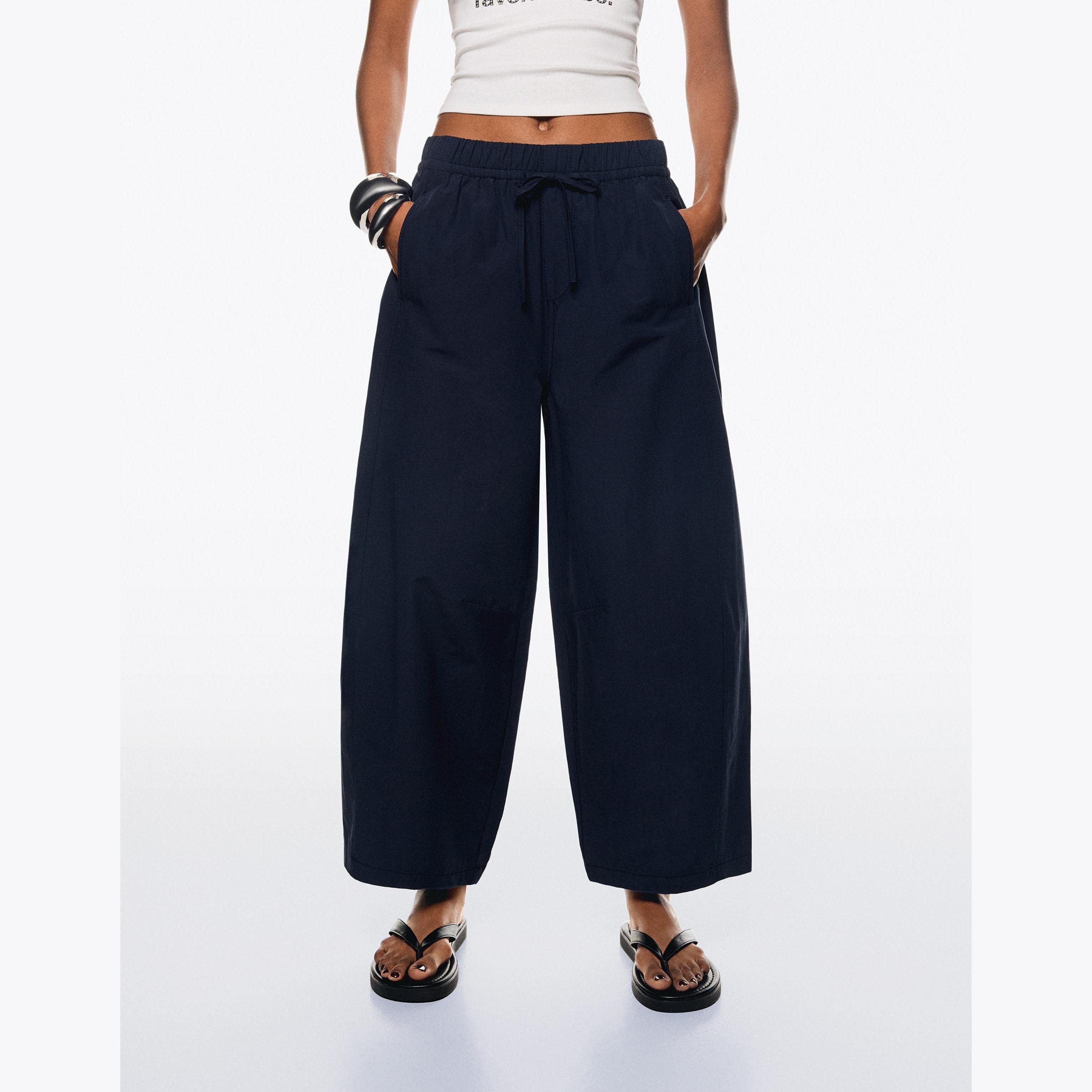 Bershka – بنطلون باريَل قصير للسيدات بلون أزرق داكن