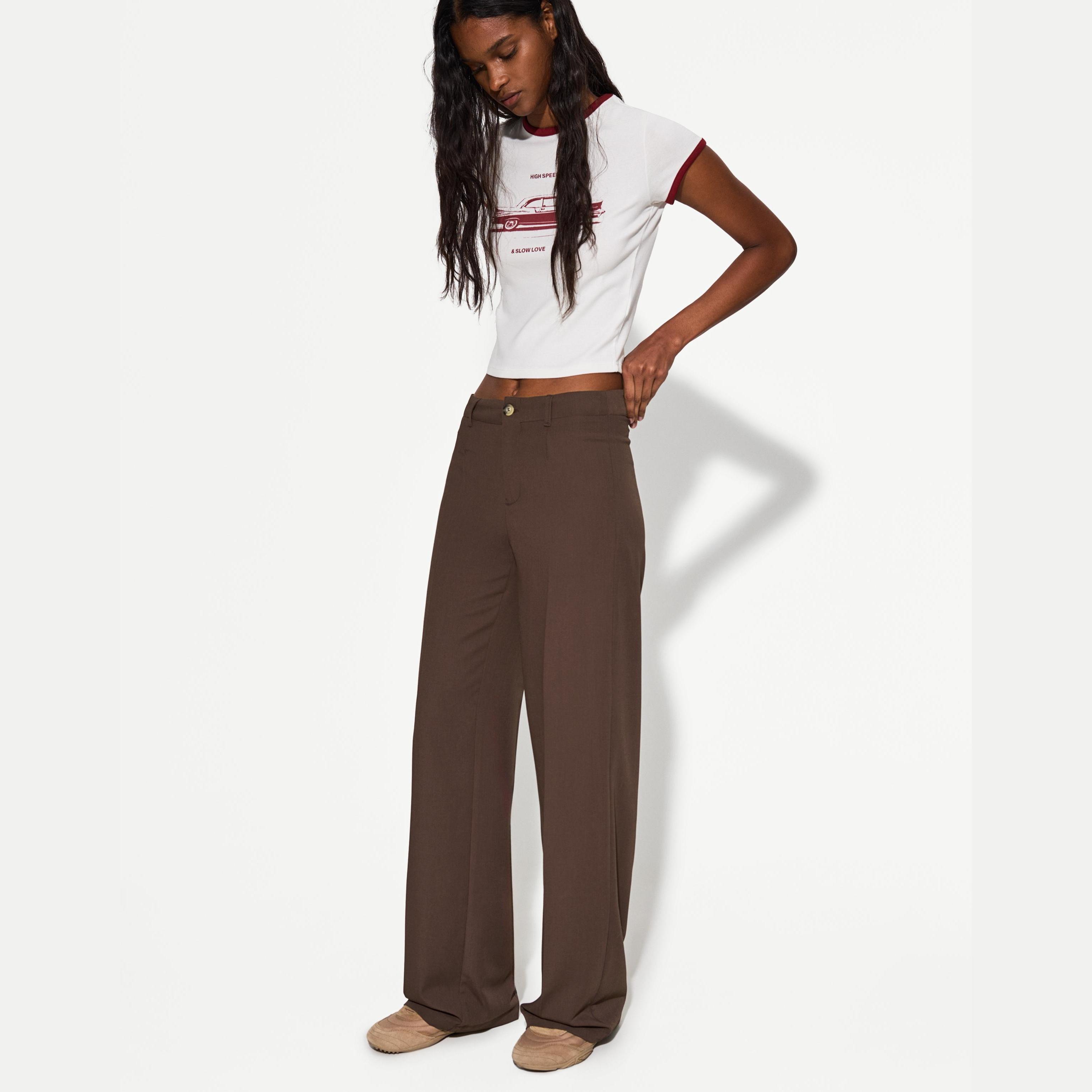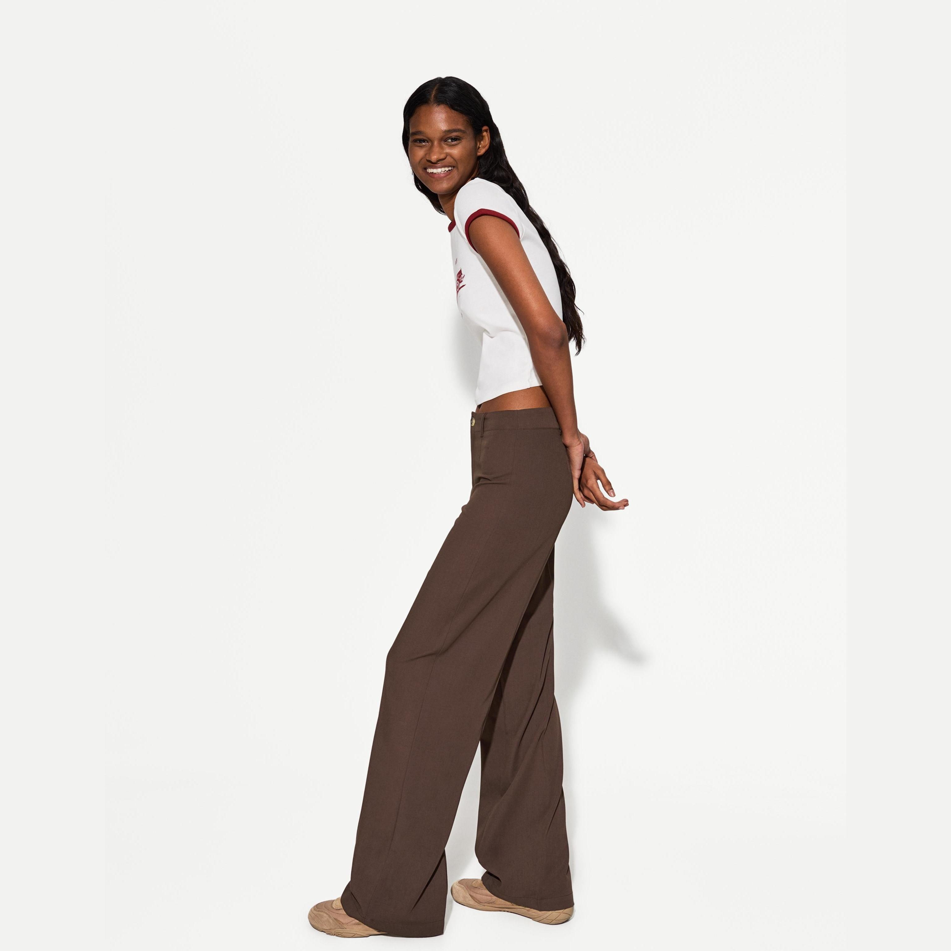 Bershka – بنطلون واسع للسيدات بلون بني