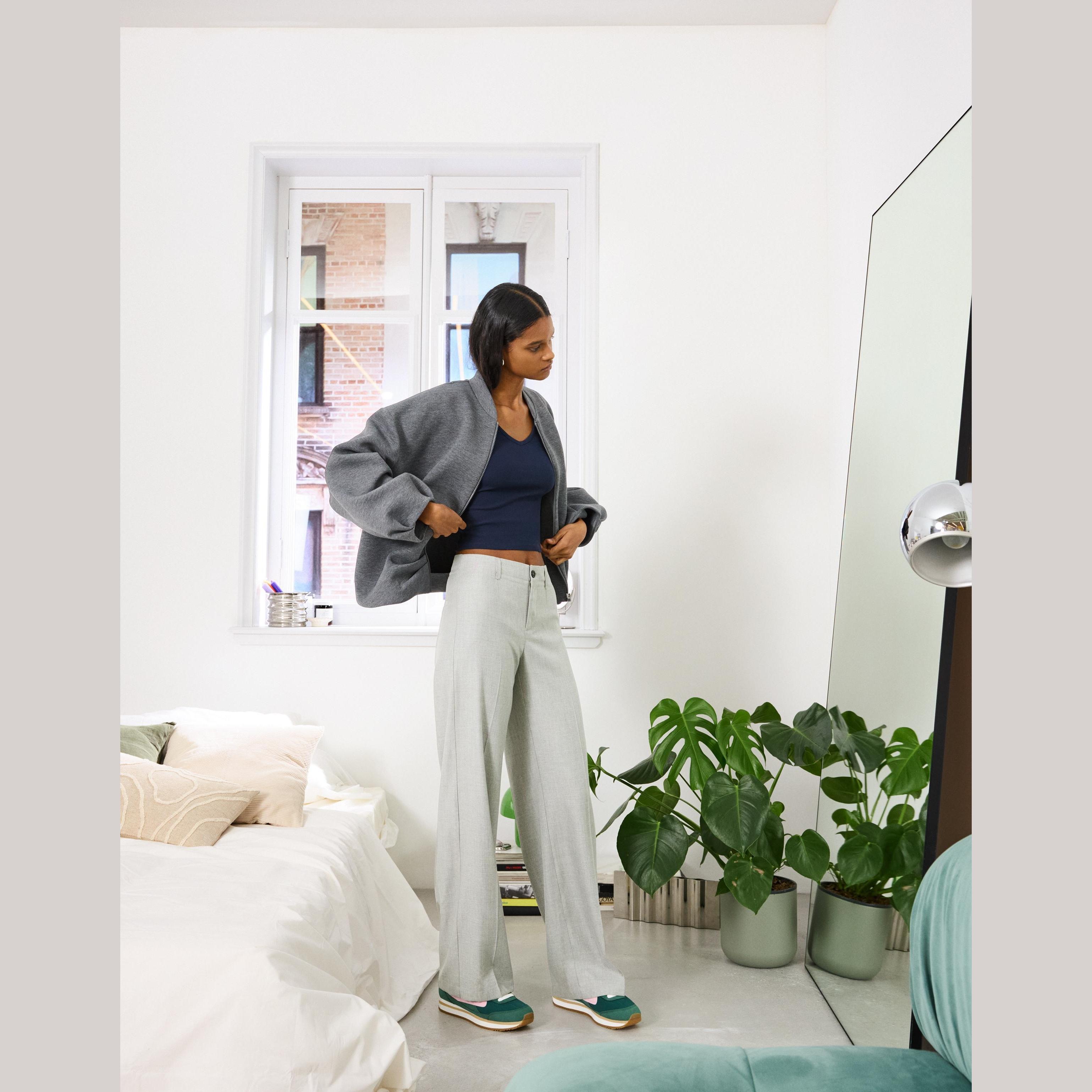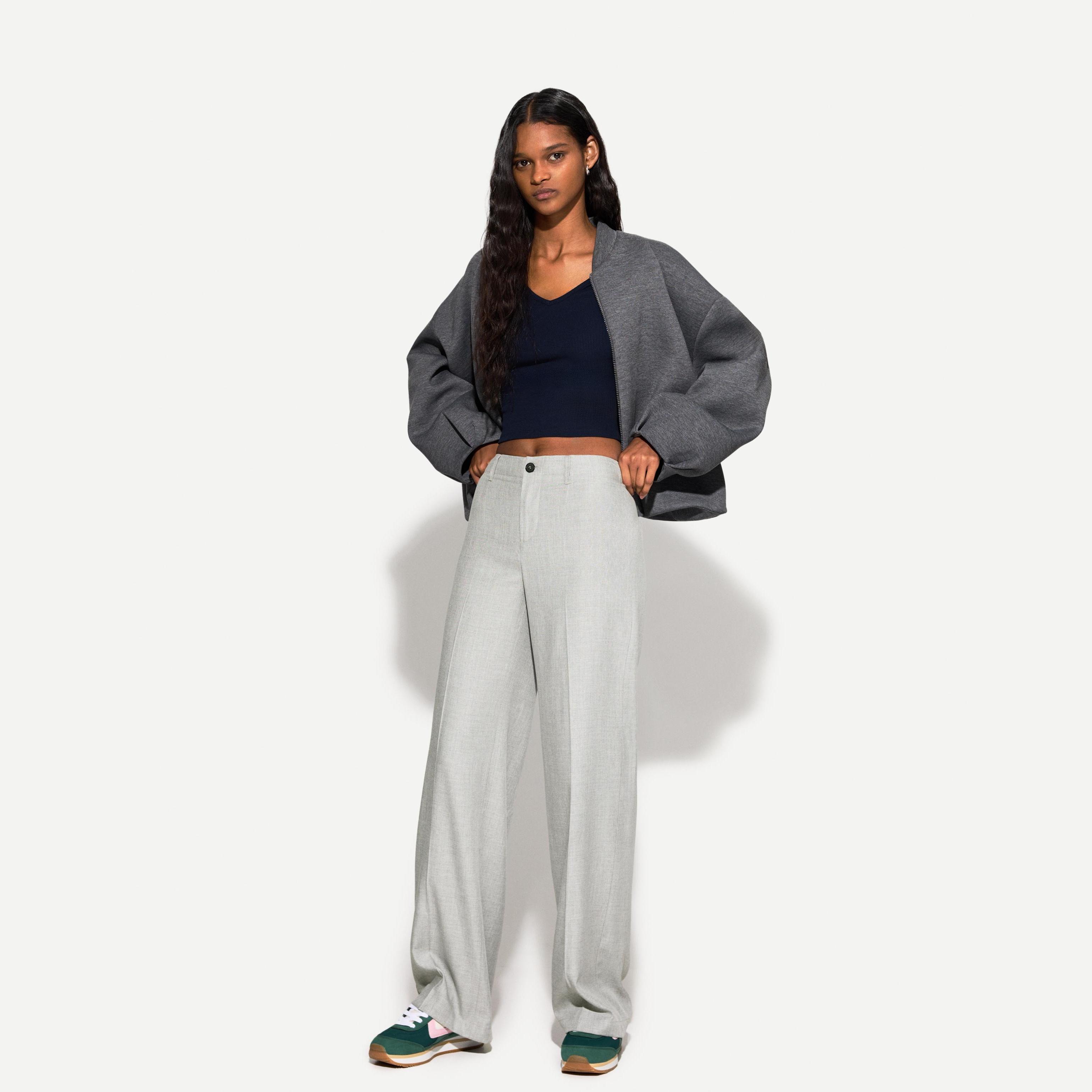 Bershka – بنطلون واسع للفتيات بلون رمادي