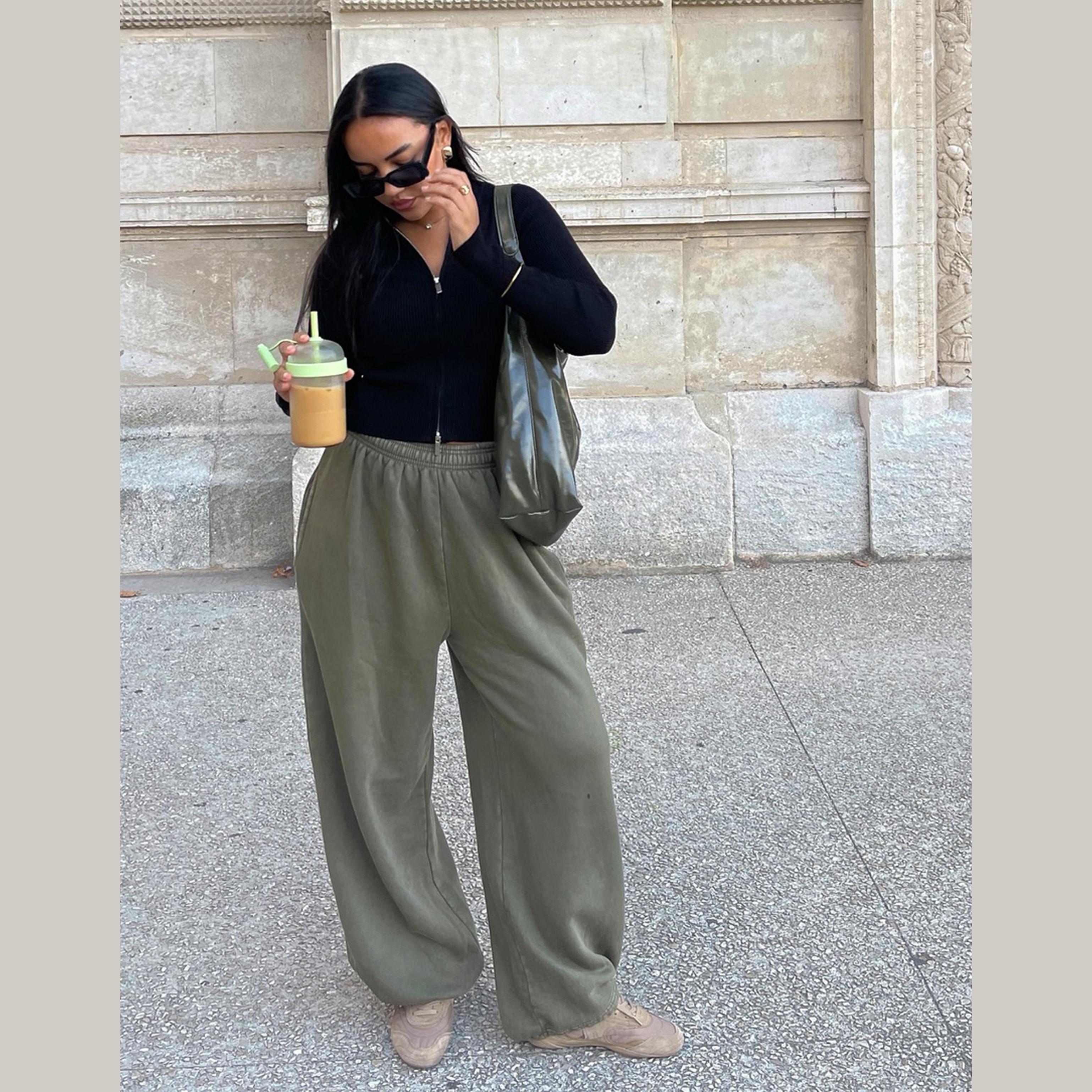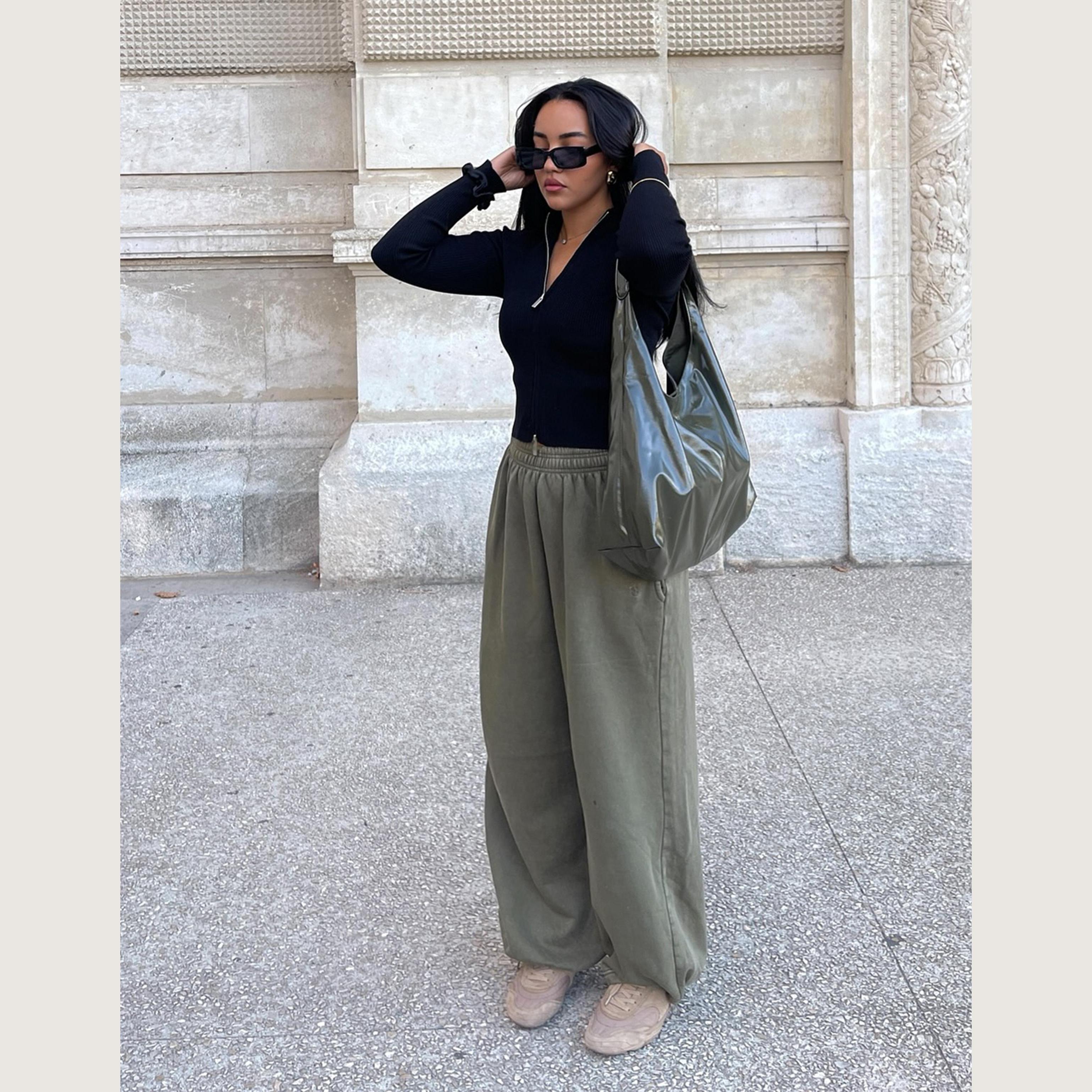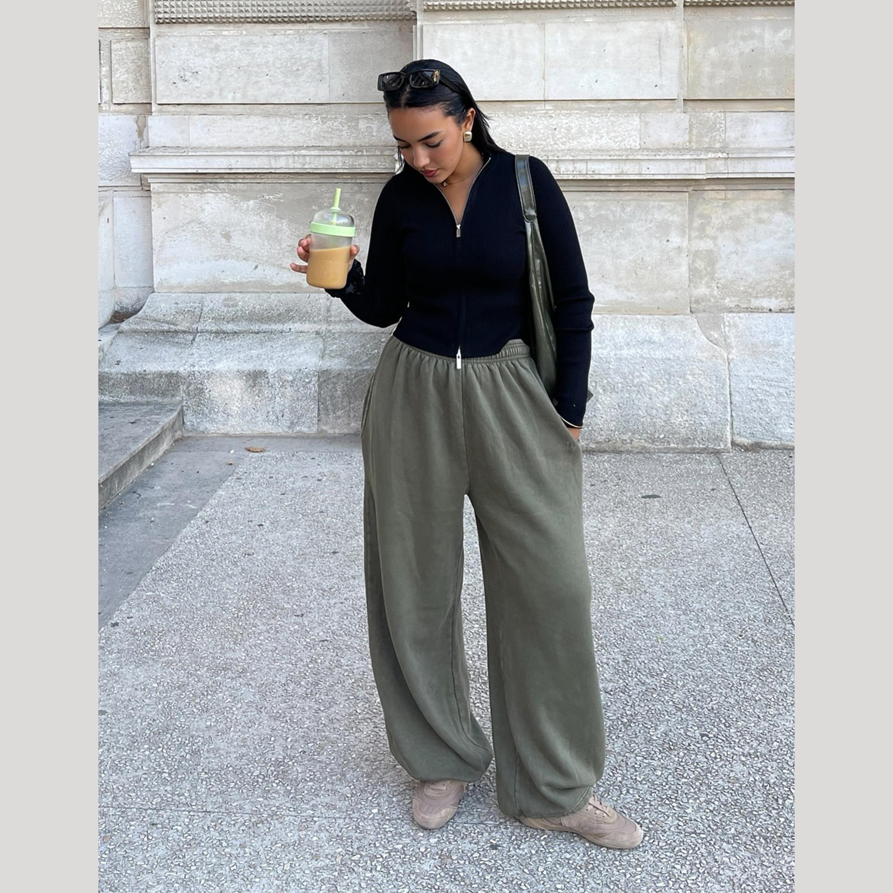 Bershka – بنطلون باريَل مبطن للفتيات بلون كاكي