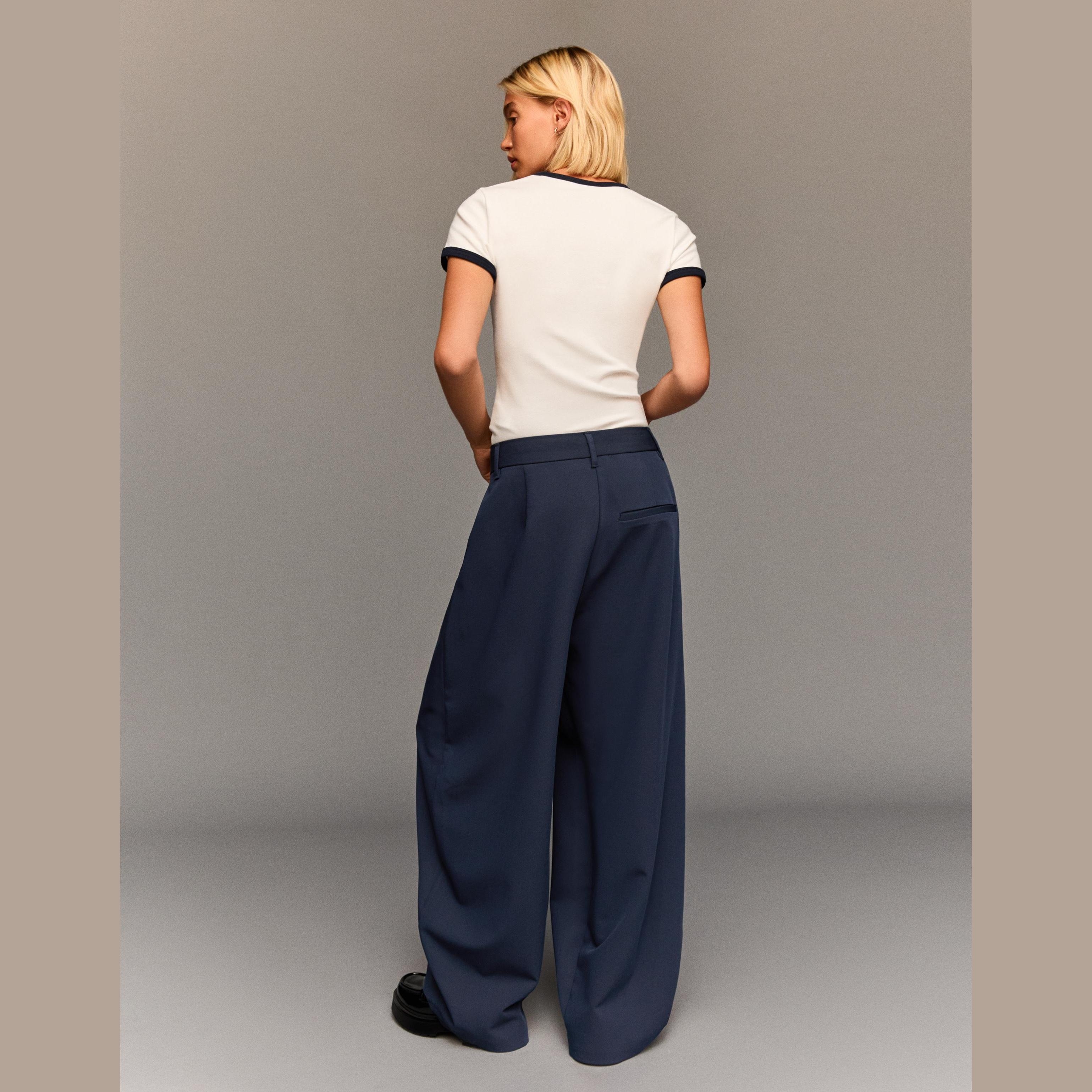 أضيفي لمسة أنيقة وعصرية إلى إطلالتك مع بنطلون Tailored Fit الكحلي من Bershka. يتميز بقصّة ضيقة ومحددة مع خصر متقاطع يمنحك مظهرًا فريدًا ومميزًا، مثالي للتنسيقات الرسمية أو الكاجوال الأنيقة.