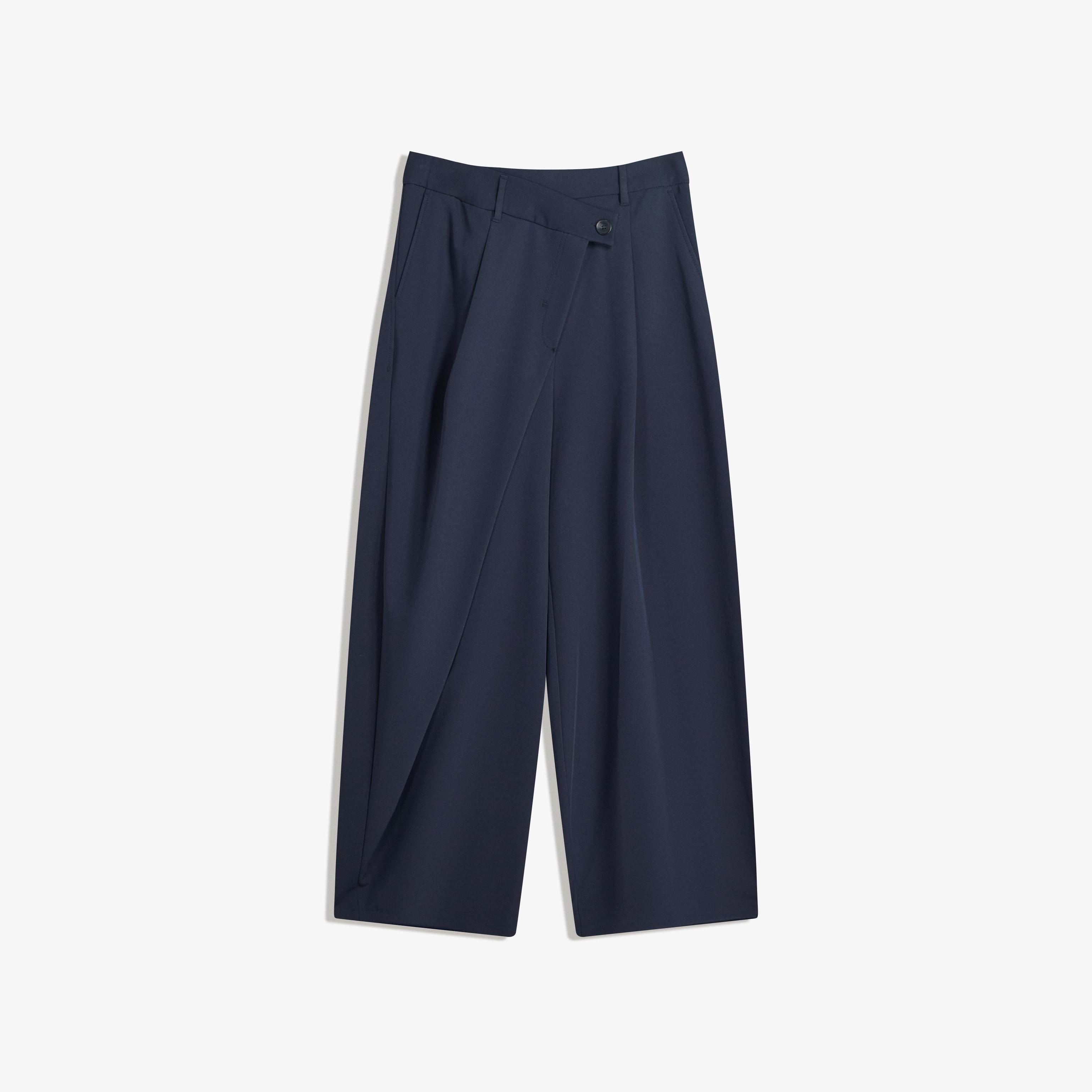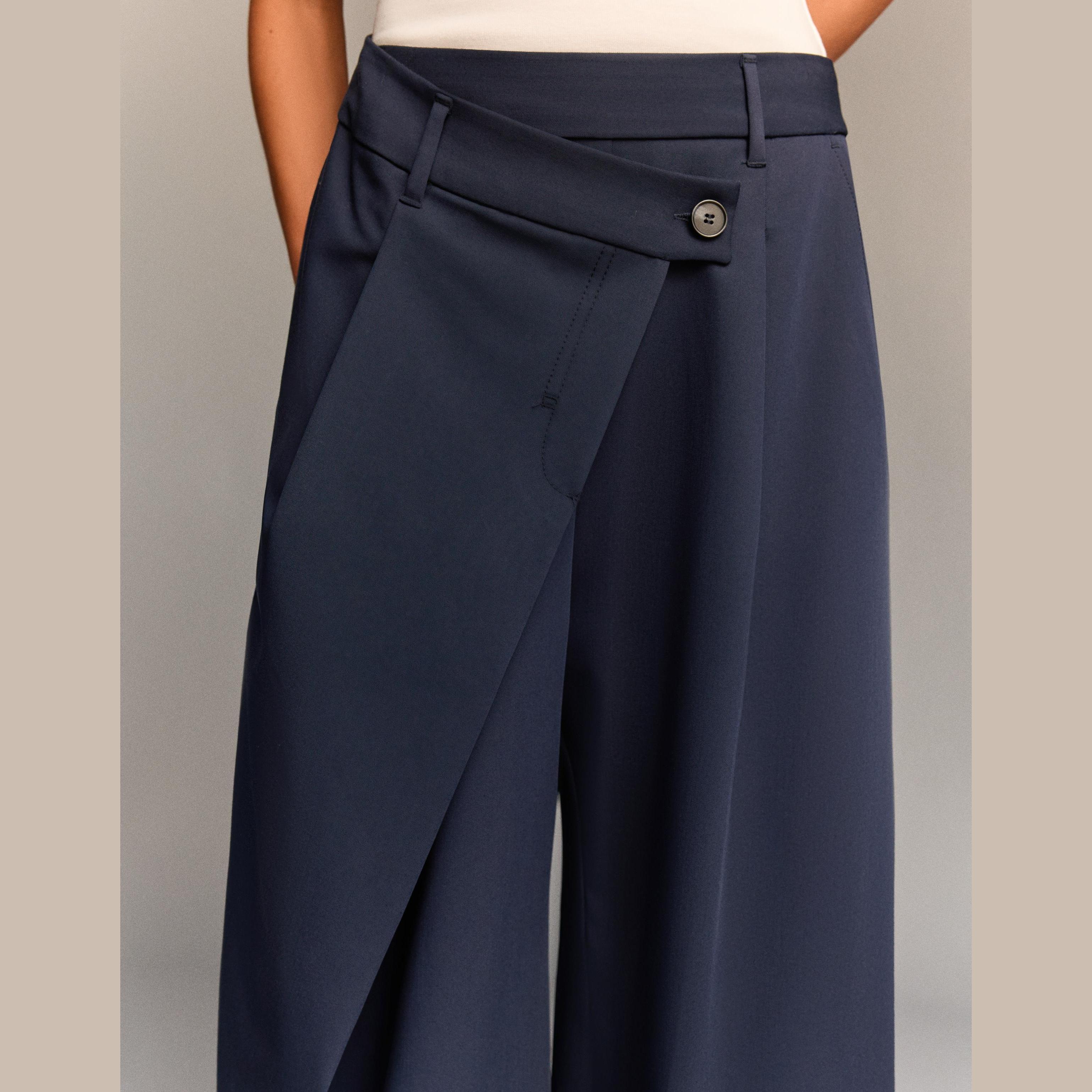 Bershka – بنطلون بتصميم Tailored Fit مع خصر متقاطع بلون كحلي