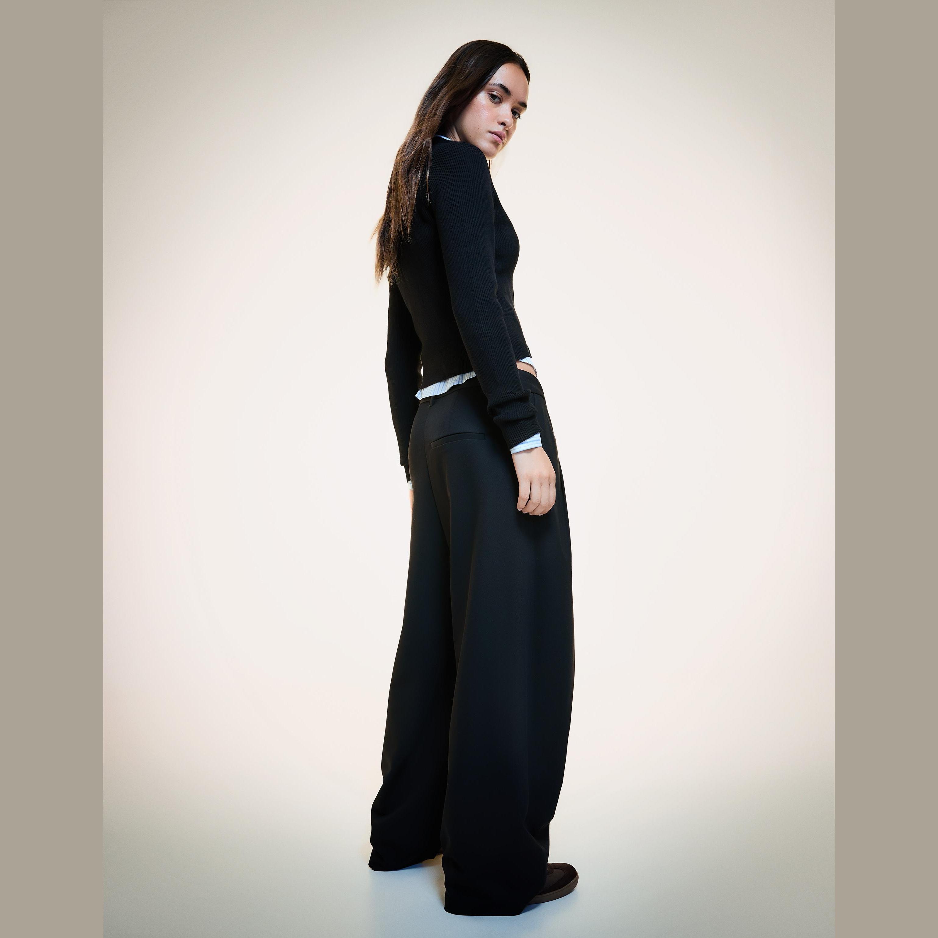 أضيفي لمسة أنيقة وعصرية إلى إطلالتك مع بنطلون Tailored Fit الأسود من Bershka. يتميز بقصّة محددة وخصر متقاطع يمنحك مظهرًا فريدًا ومميزًا، مثالي للتنسيقات الرسمية أو الكاجوال الأنيقة.
