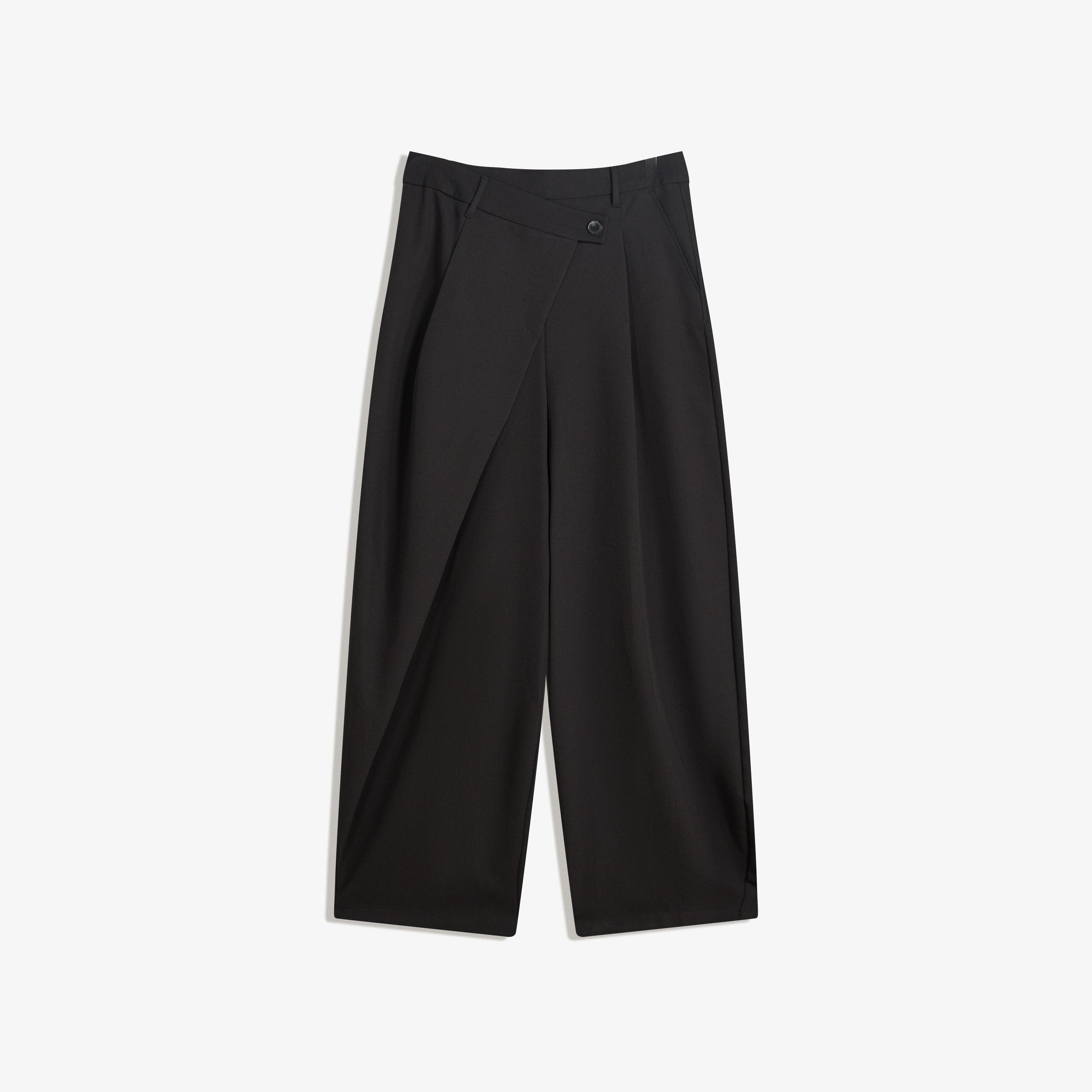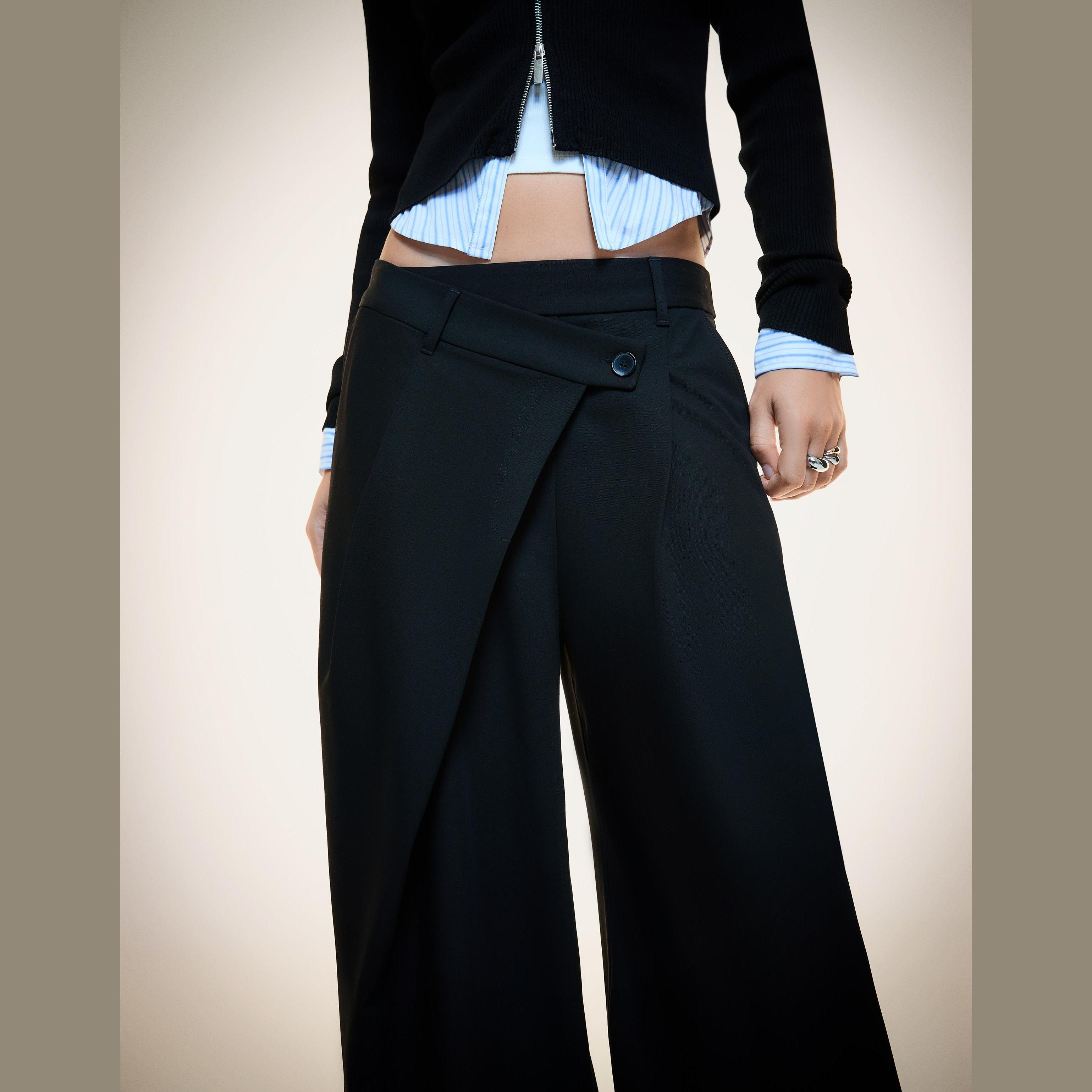 Bershka – بنطلون بتصميم Tailored Fit مع خصر متقاطع بلون أسود