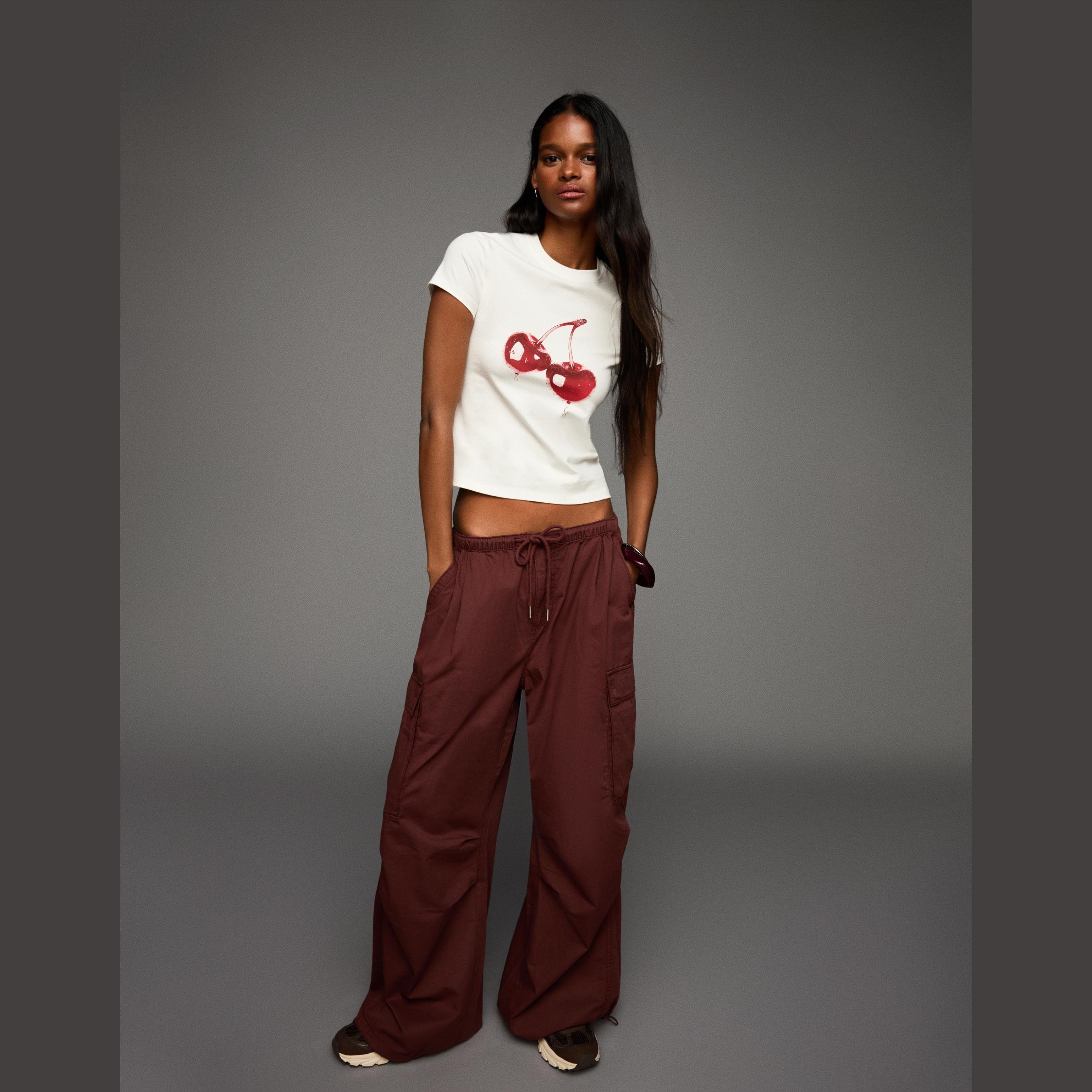 Bershka – بنطلون باراشوت كارجو للسيدات بلون برغندي