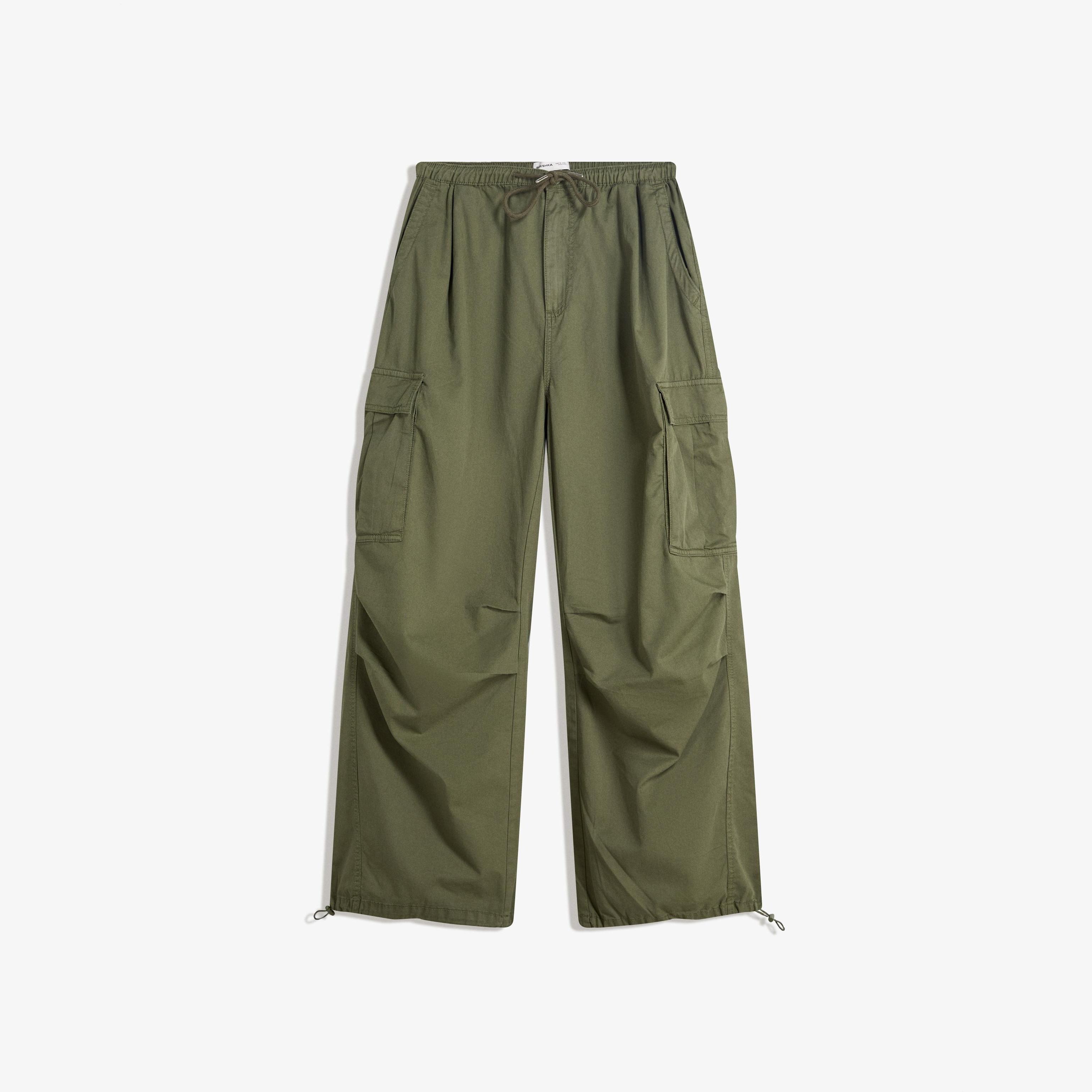 Bershka – بنطلون باراشوت كارجو للسيدات بلون كاكي