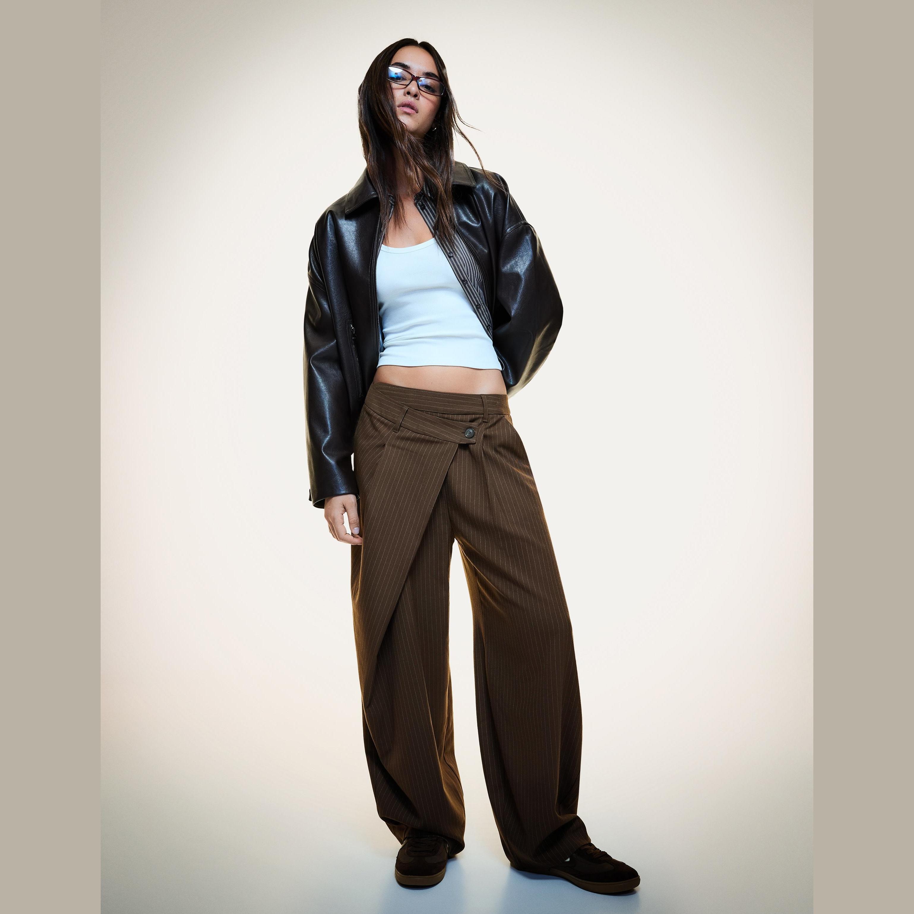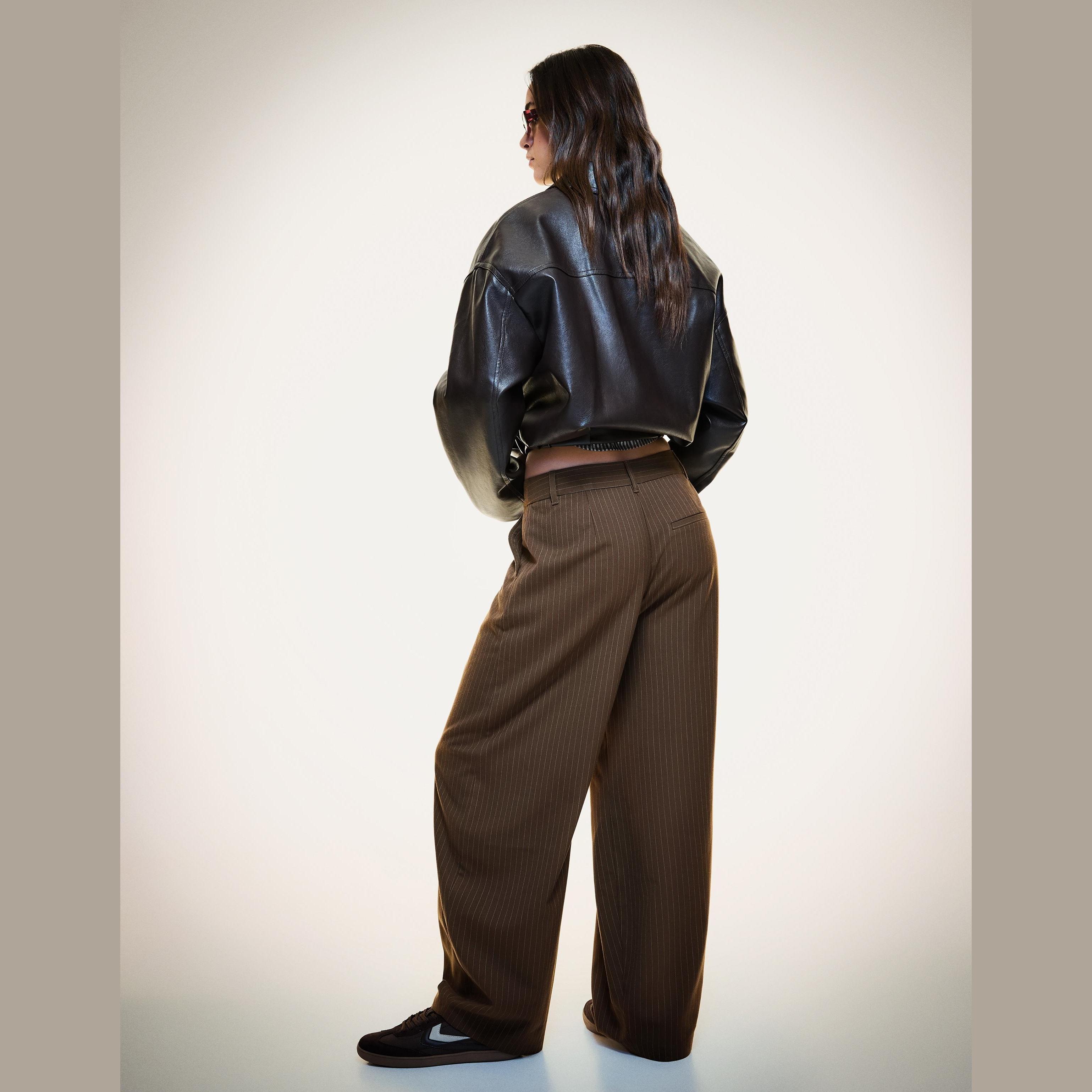 أضيفي لمسة أنيقة وعصرية إلى إطلالتك مع بنطلون Tailored البني من Bershka. يتميز بقصّة محددة ومصممة بعناية، مثالي للتنسيقات الرسمية أو الكاجوال الأنيقة.