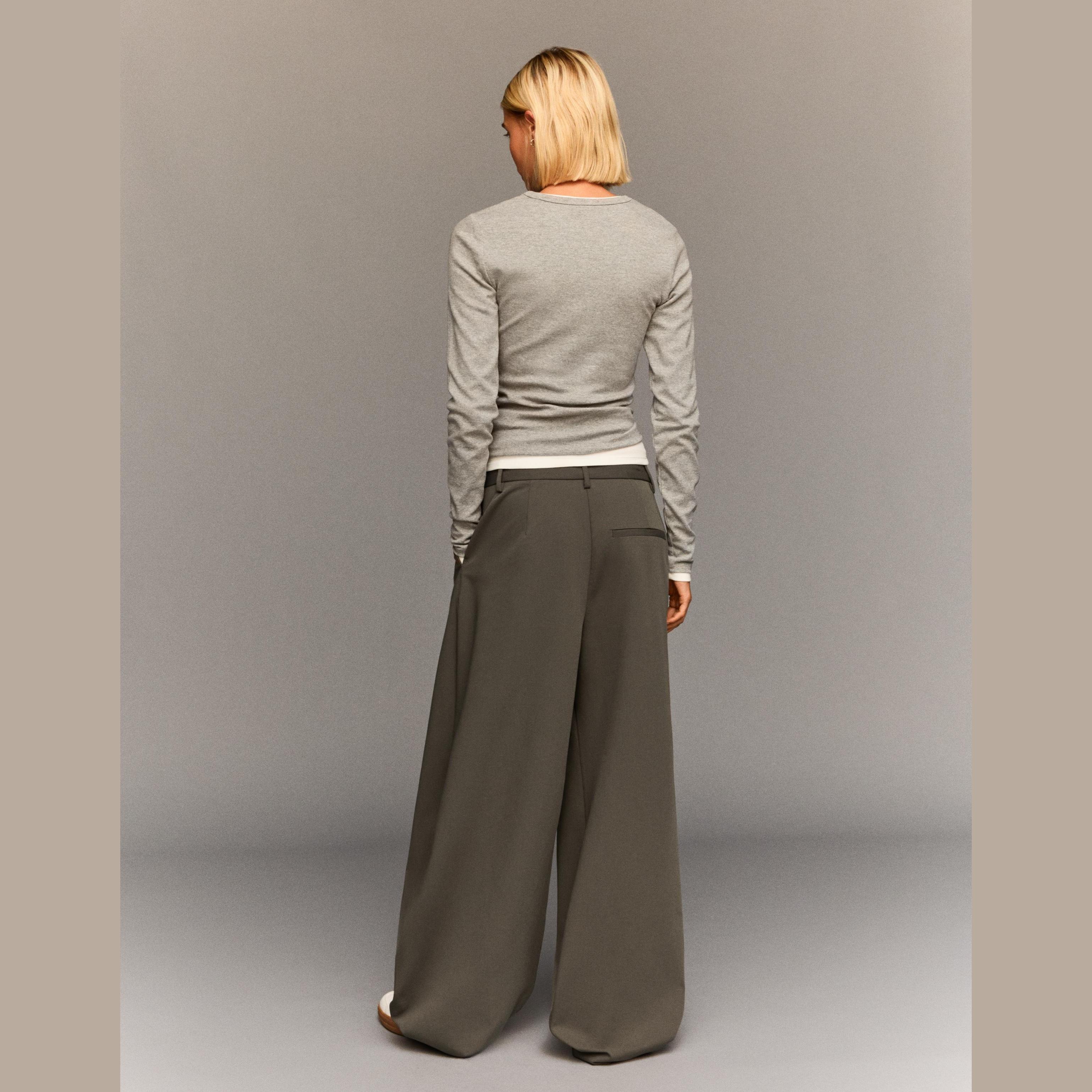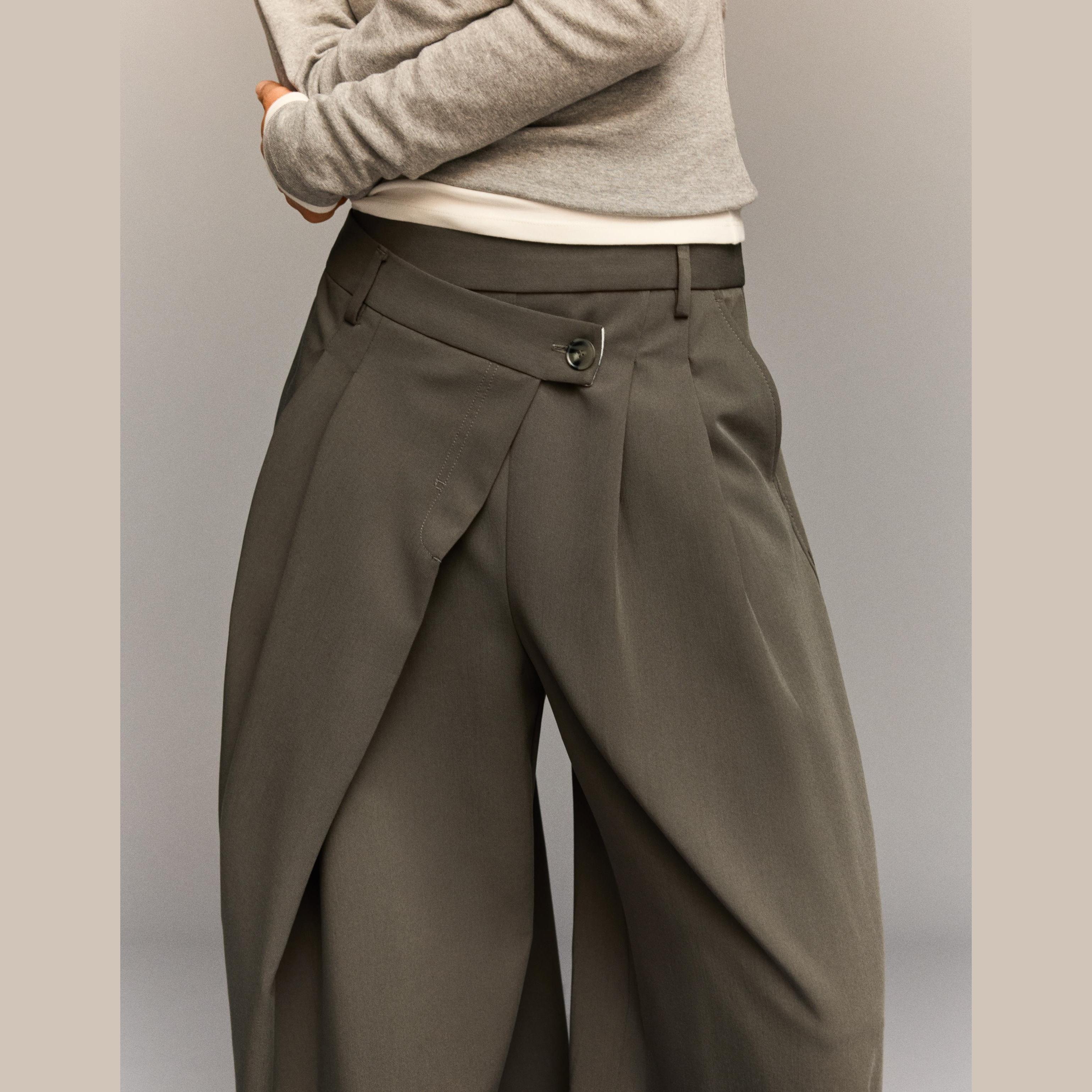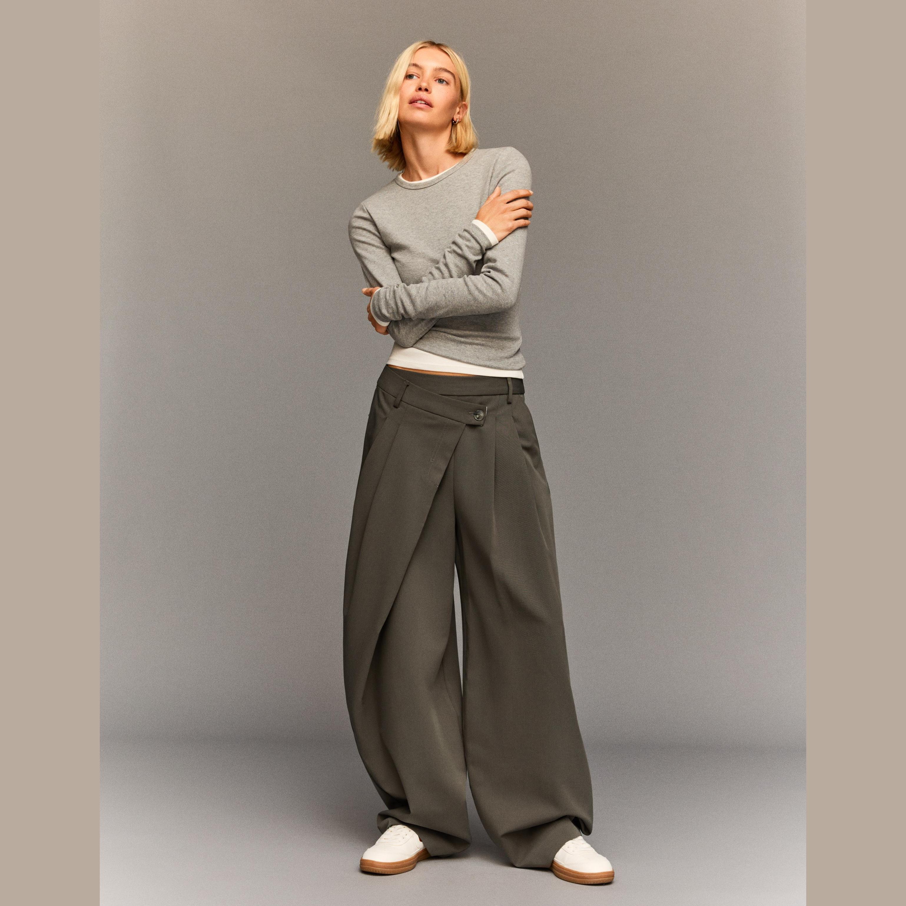 أضيفي لمسة أنيقة وعصرية إلى إطلالتك مع بنطلون Tailored Fit الرملي من Bershka. يتميز بقصّة محددة وخصر متقاطع يمنحك مظهرًا فريدًا ومميزًا، مثالي للتنسيقات الرسمية أو الكاجوال الأنيقة.