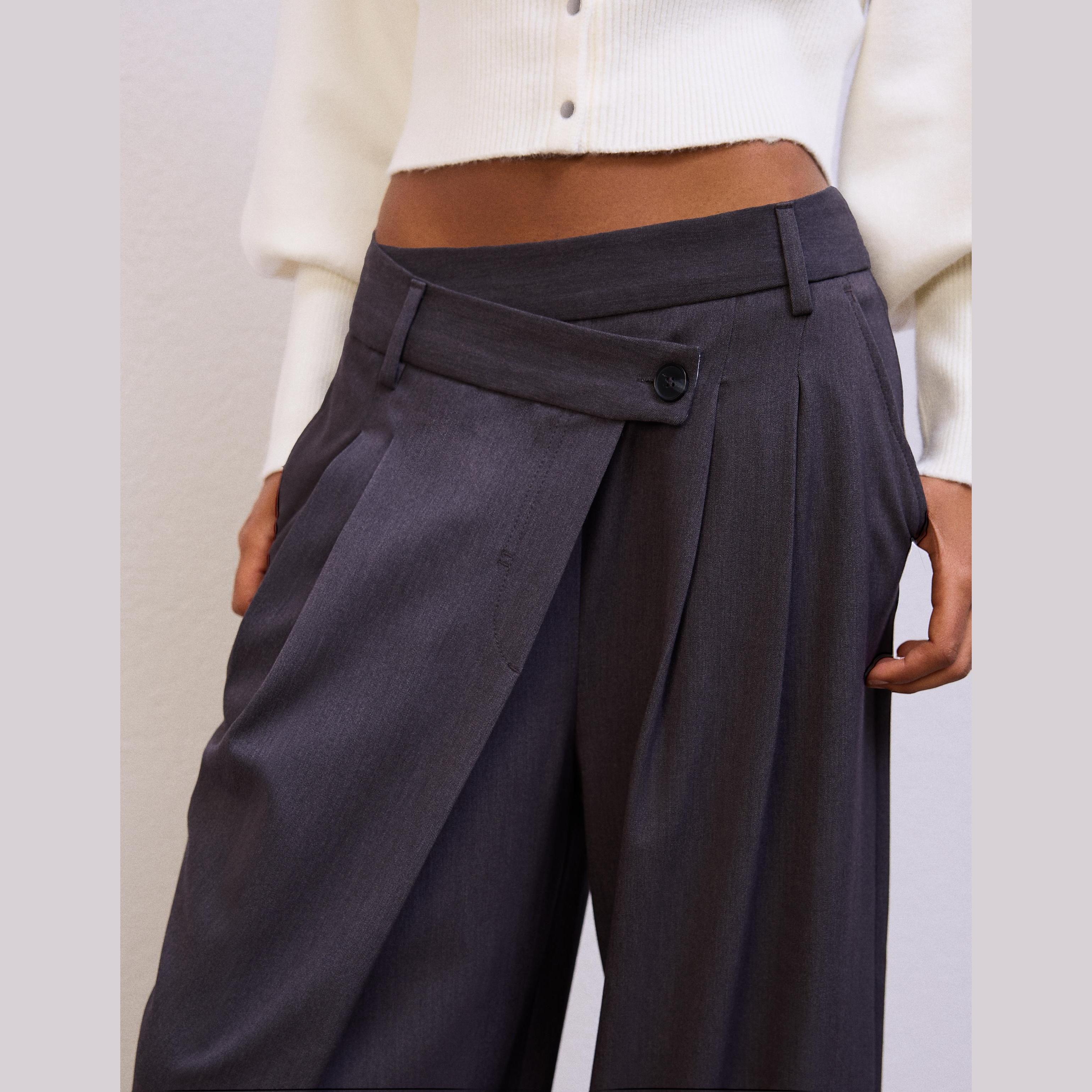 Bershka – بنطلون Tailored Fit مع خصر متقاطع للسيدات بلون رمادي داكن