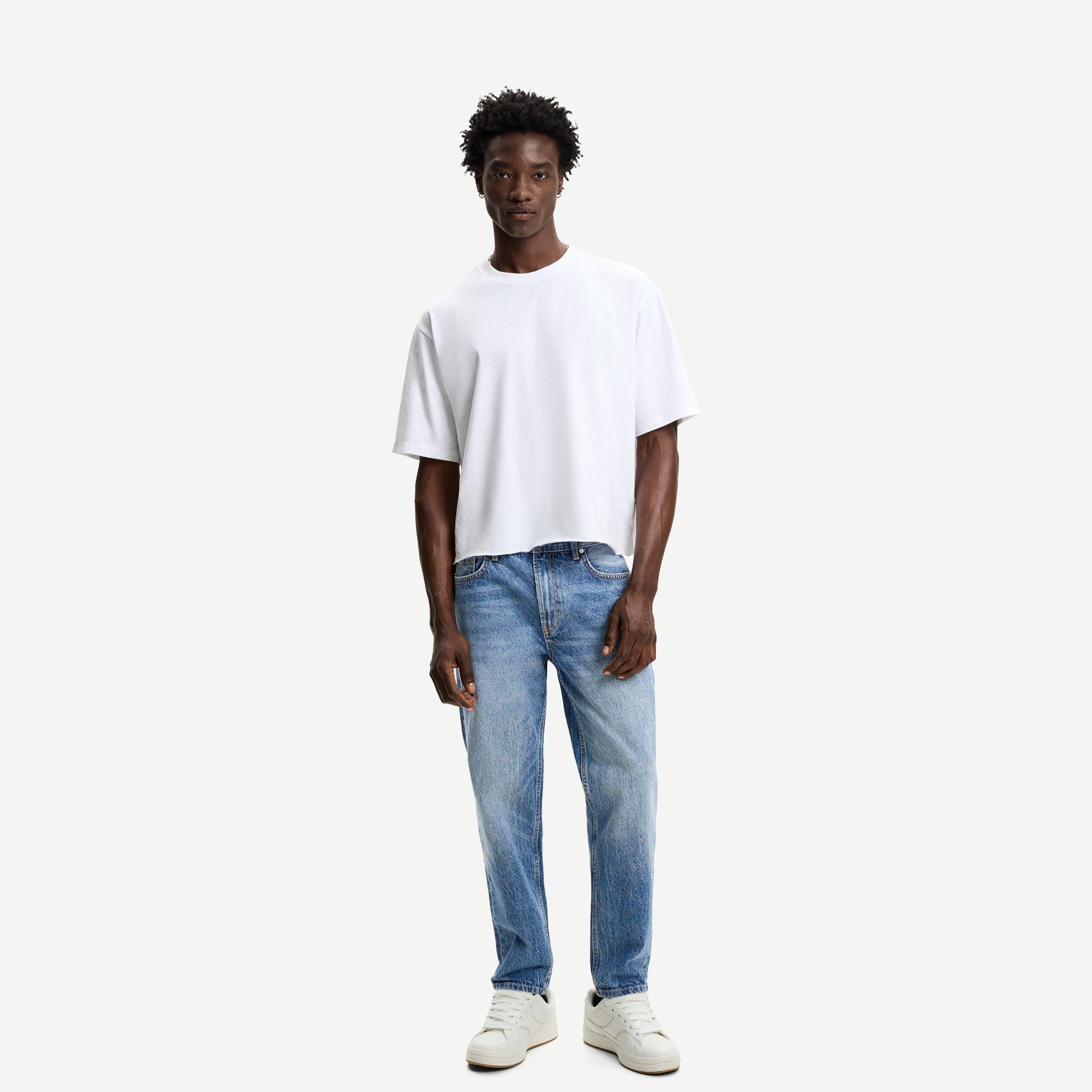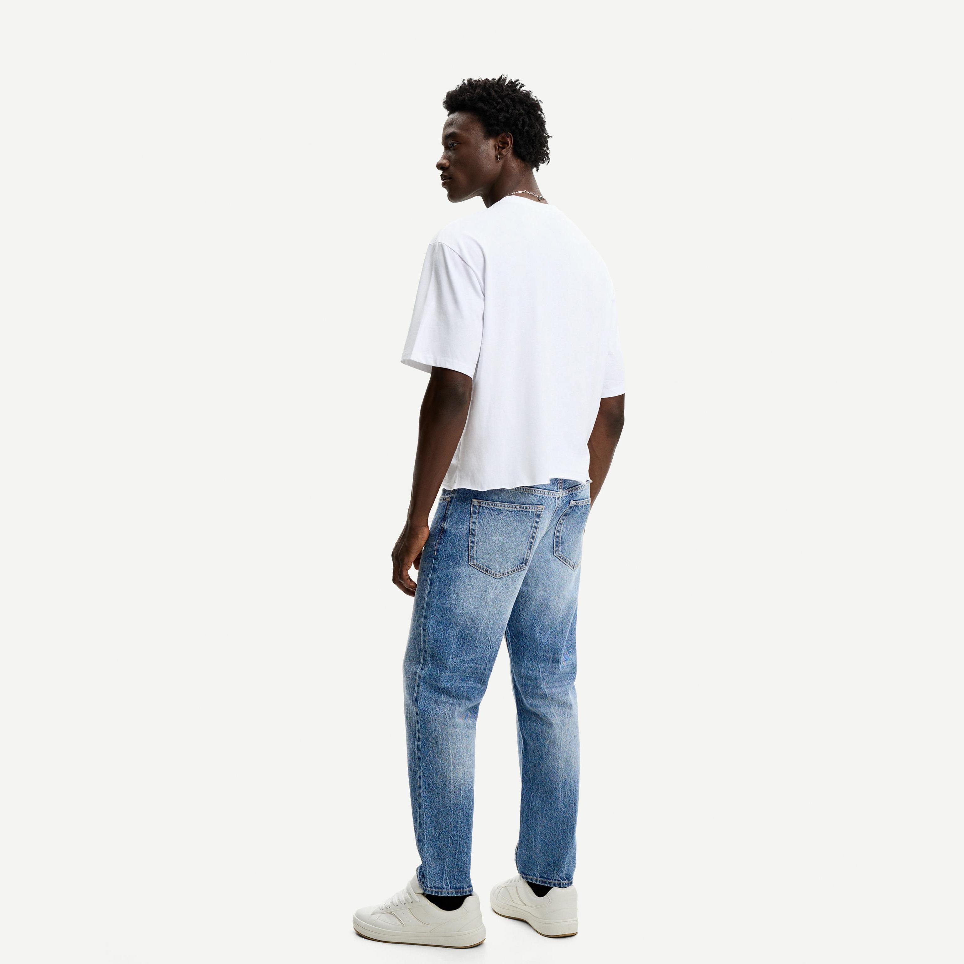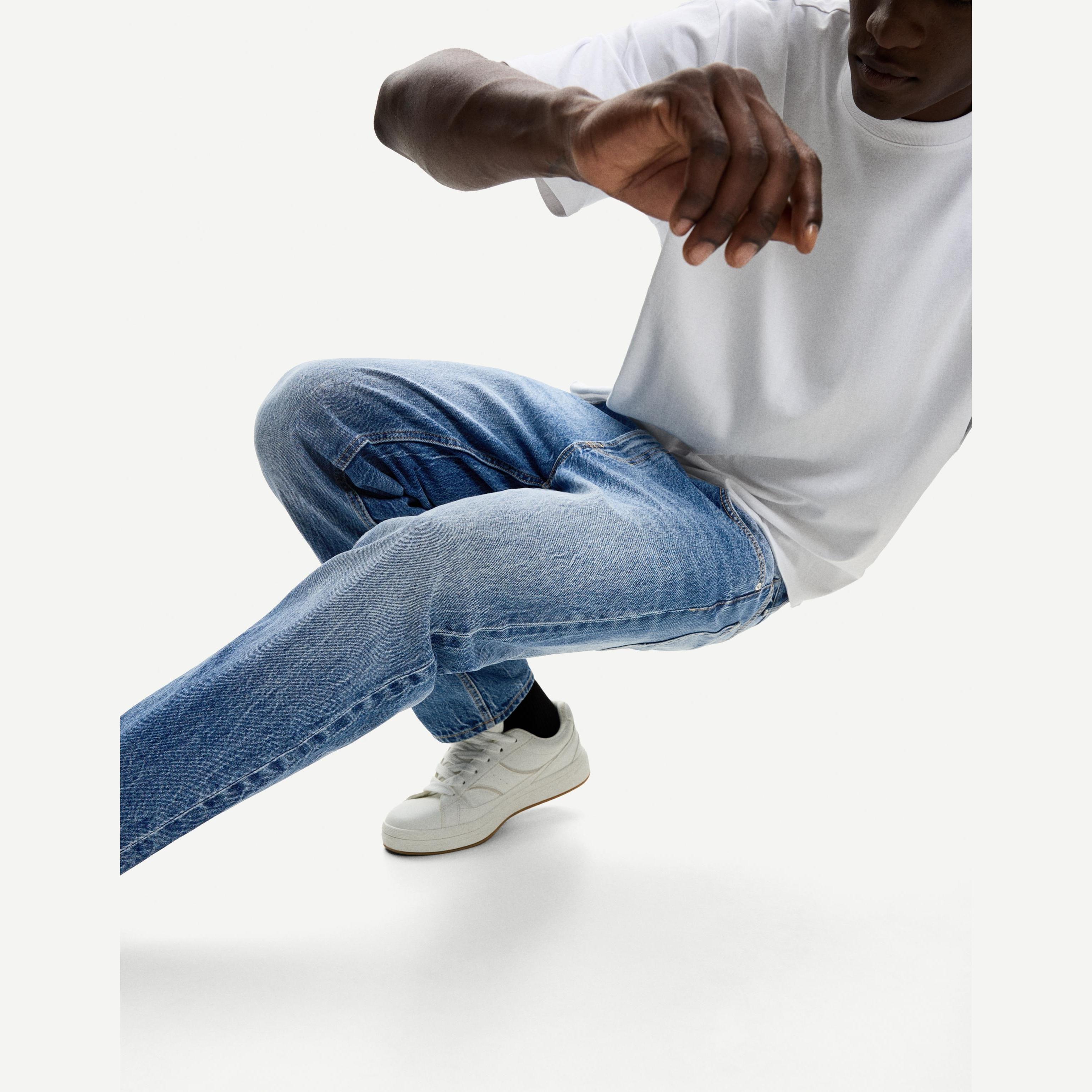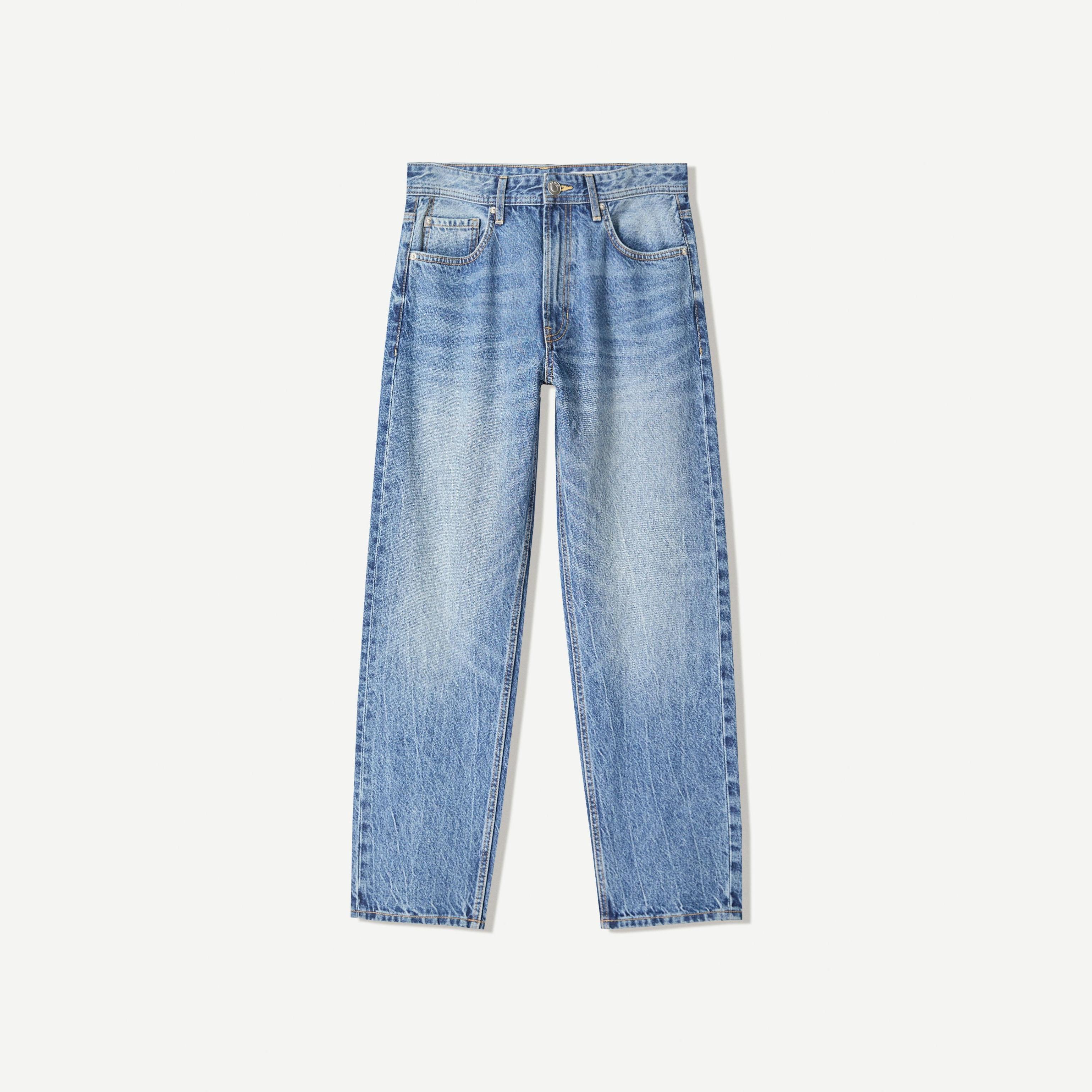 بنطال جينز بقصة مستقيمة بلون أزرق داكن من Bershka