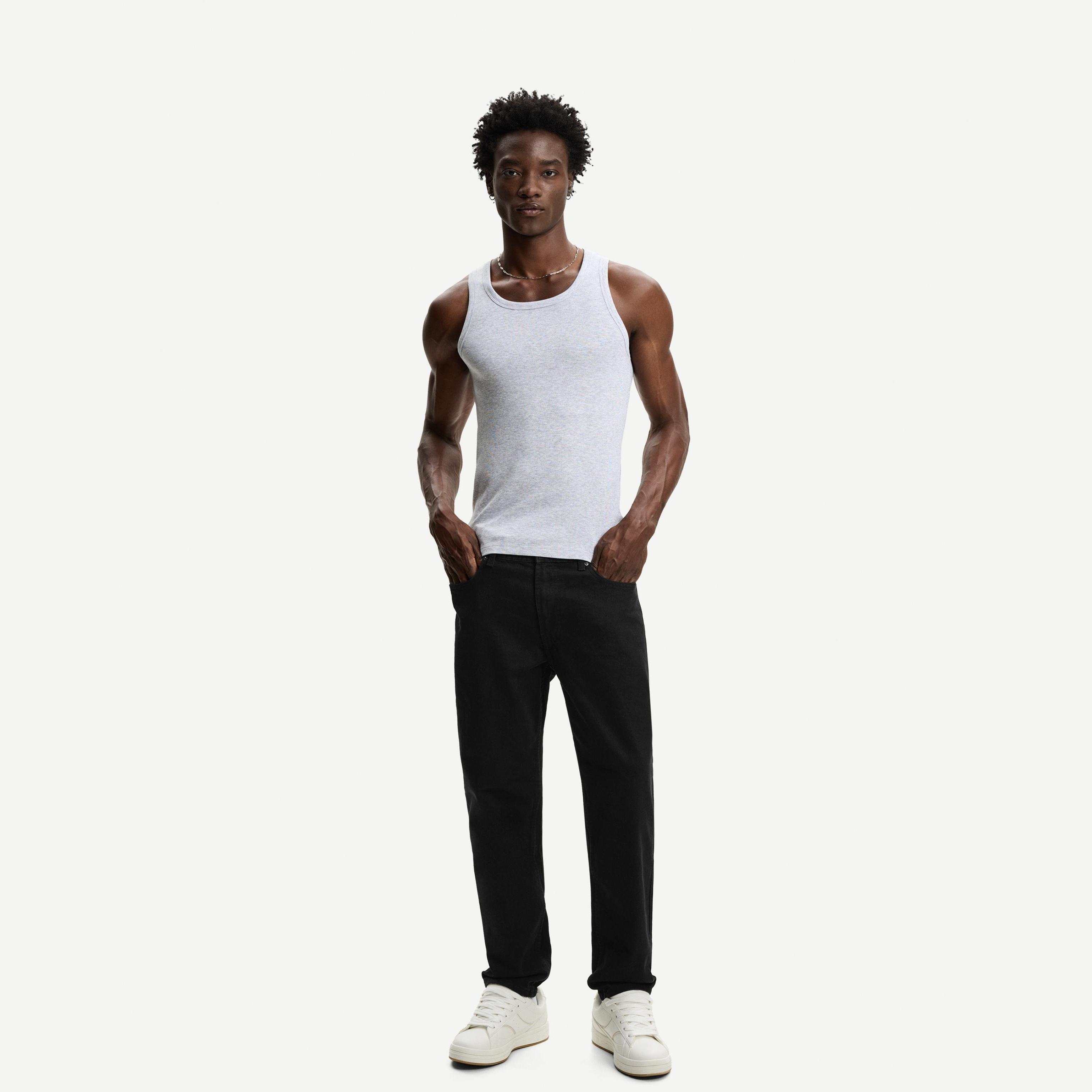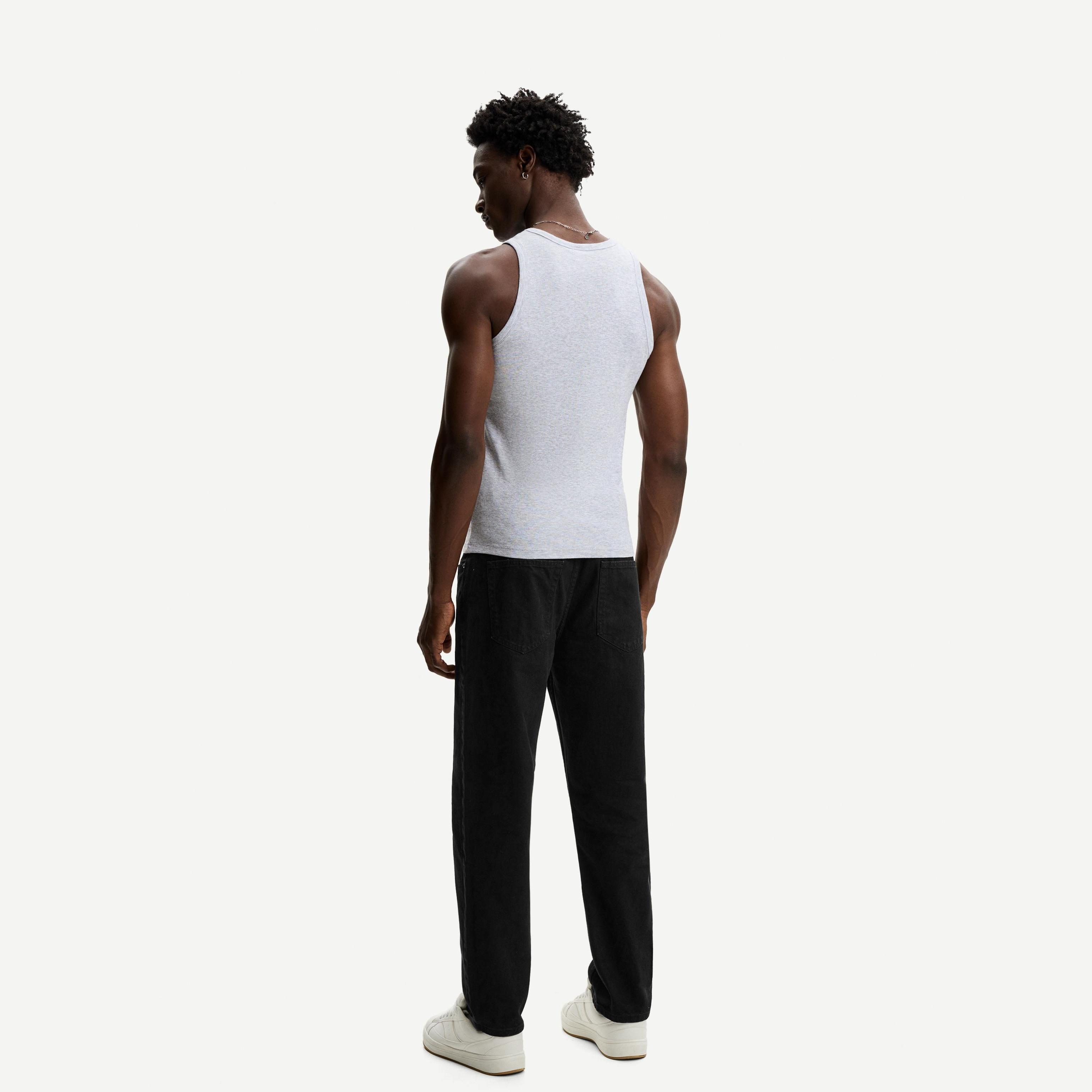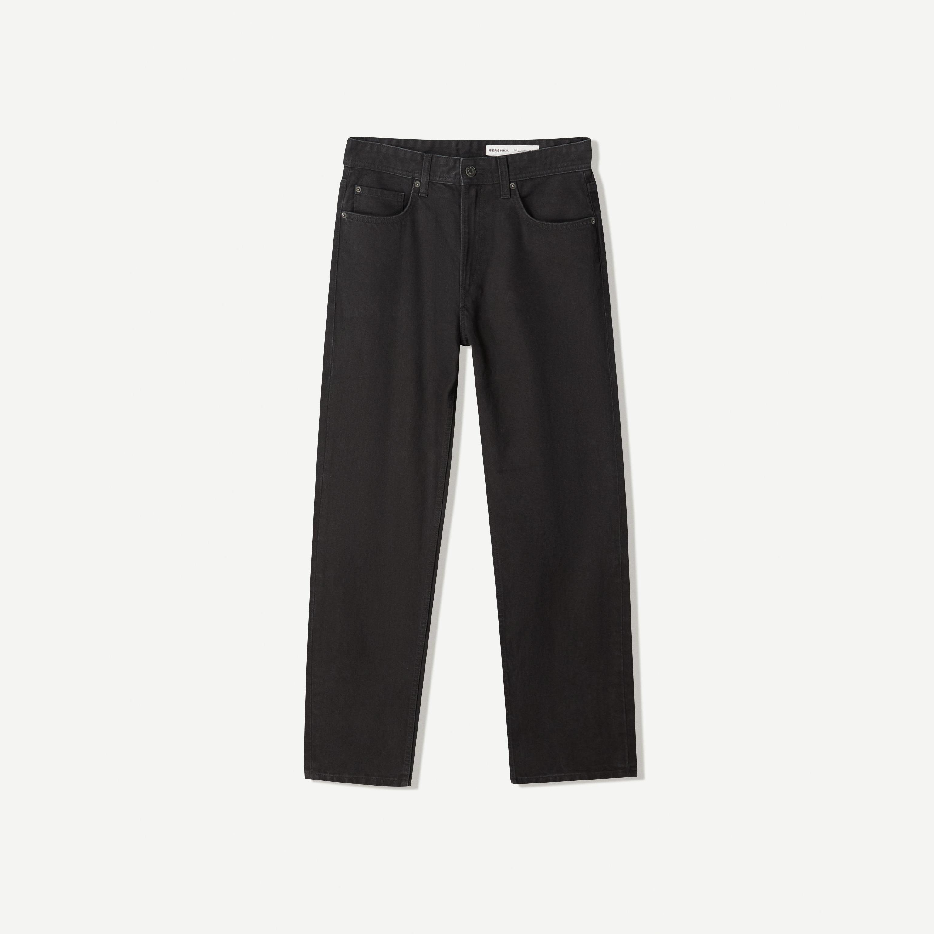 بنطال جينز بقصة مستقيمة بلون أسود من Bershka