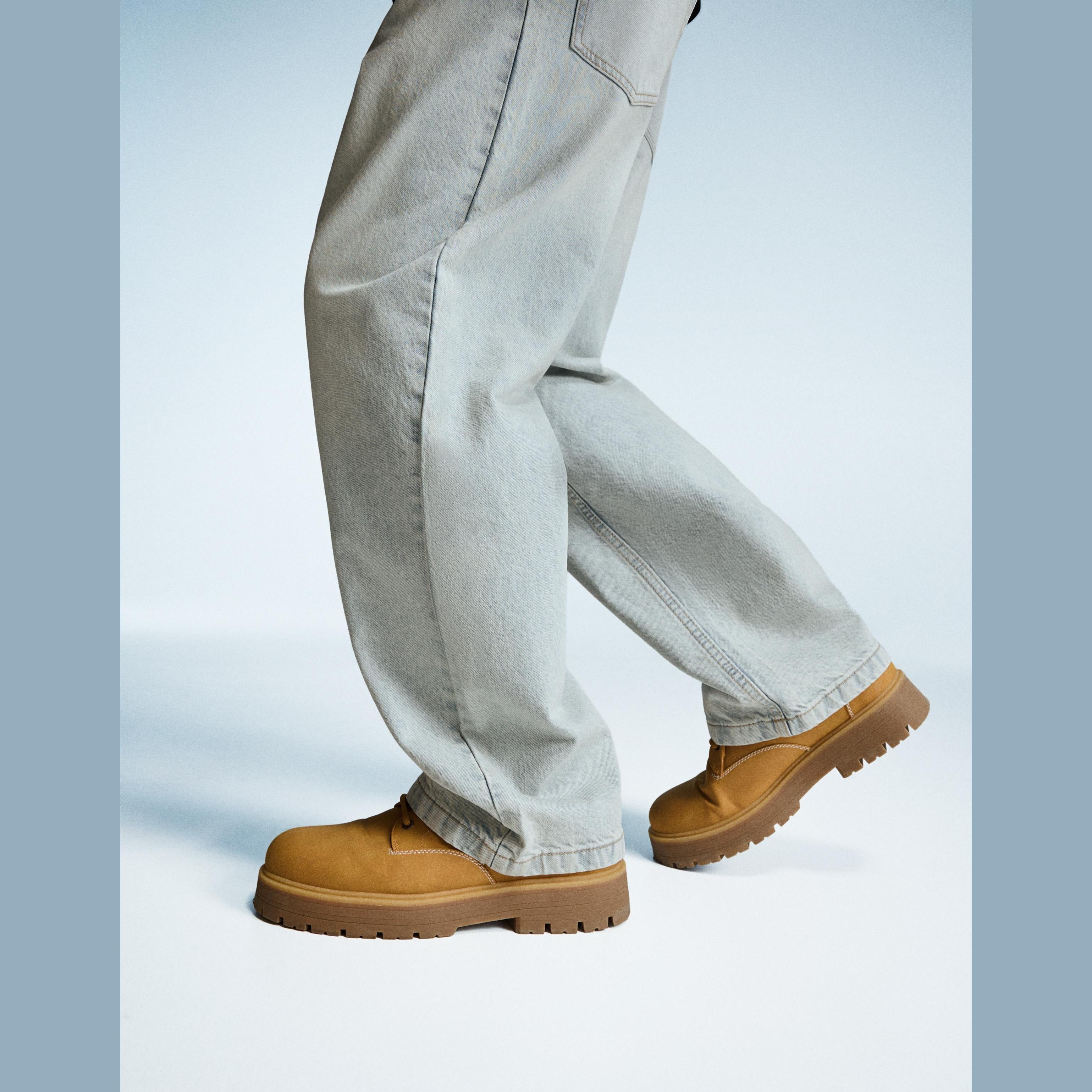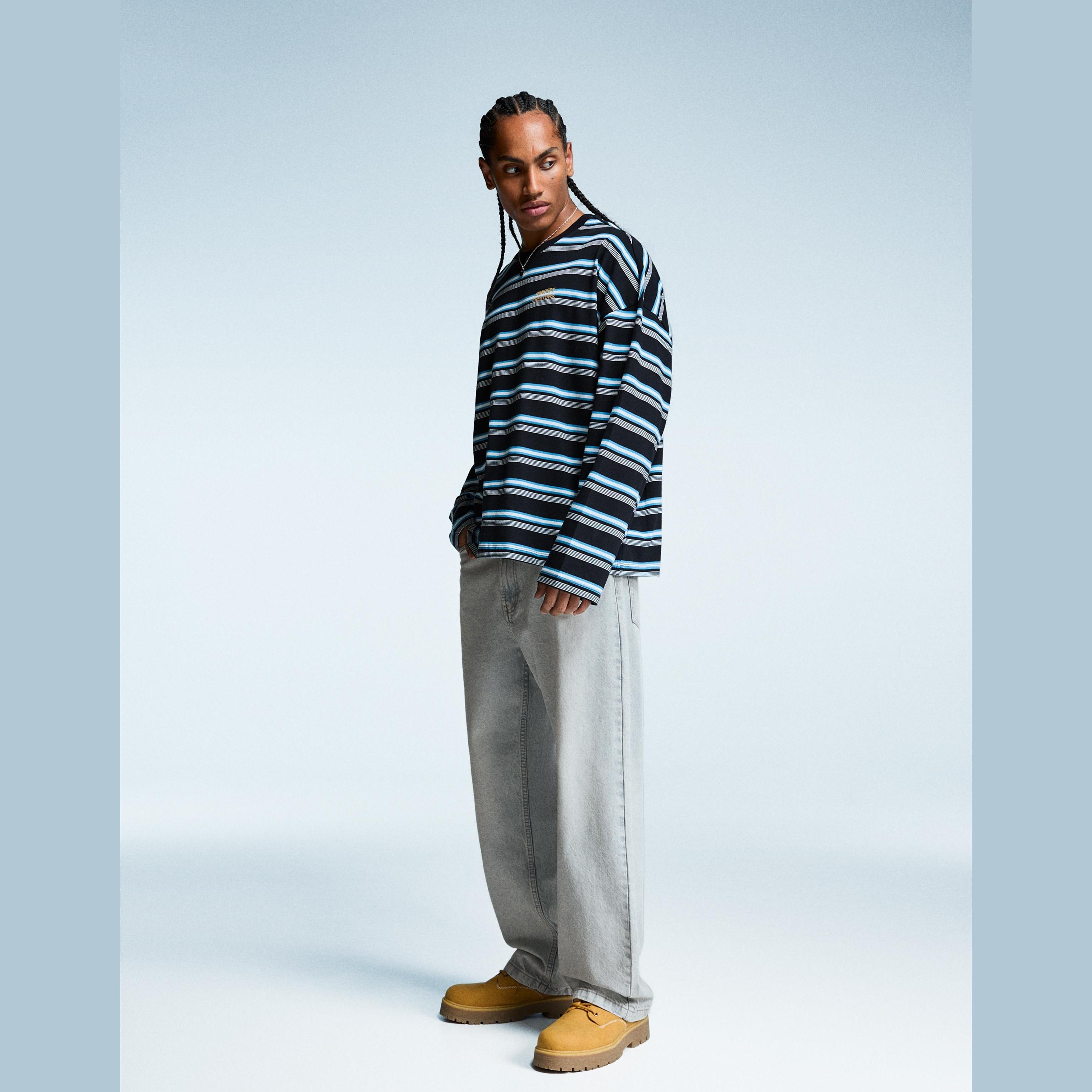 ارتقِ بإطلالتك اليومية مع هذا البنطال الجينز من Bershka المصمم بقصة واسعة تمنحك راحة مثالية ومظهرًا شبابيًا عصريًا. اللون الأزرق الفاتح يضفي لمسة منعشة، مما يجعله خيارًا مثاليًا للإطلالات الكاجوال أو شبه الرسمية.