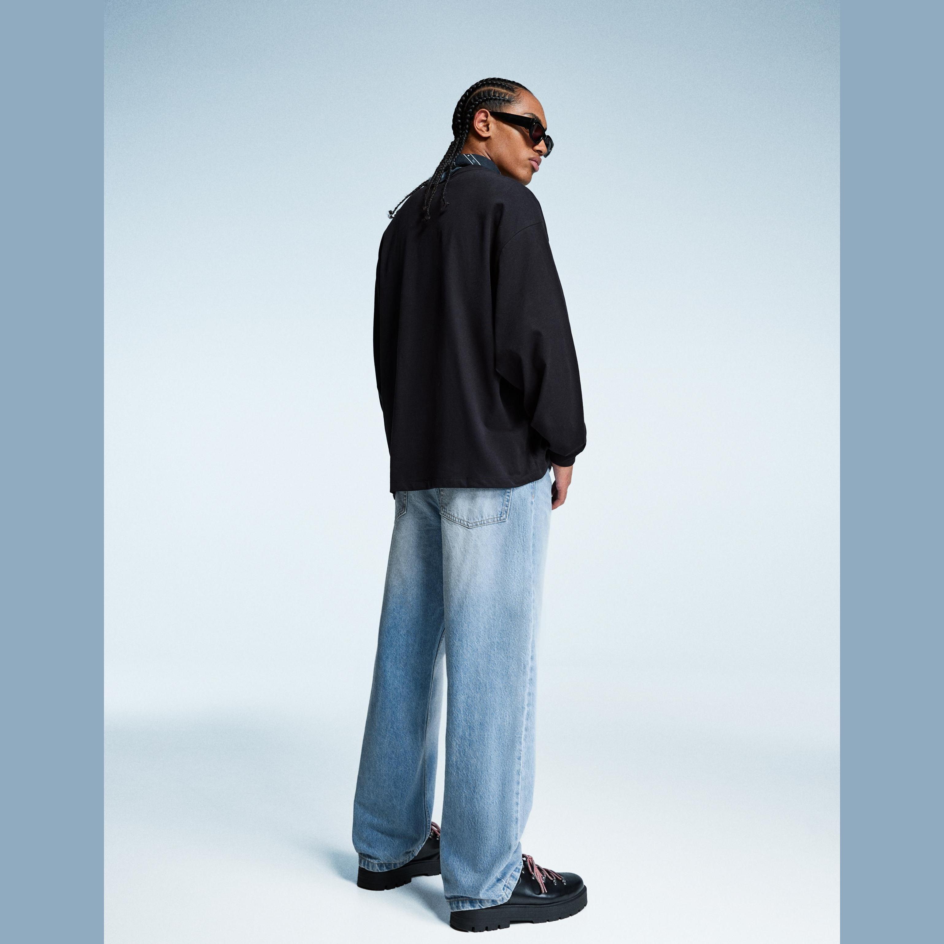 ارتقِ بإطلالتك اليومية مع هذا البنطال الجينز من Bershka المصمم بقصة واسعة تمنحك راحة مثالية ومظهرًا شبابيًا عصريًا. اللون الأزرق المتوسط يضفي لمسة حيادية منعشة، مما يجعله خيارًا مثاليًا للإطلالات الكاجوال أو شبه الرسمية.