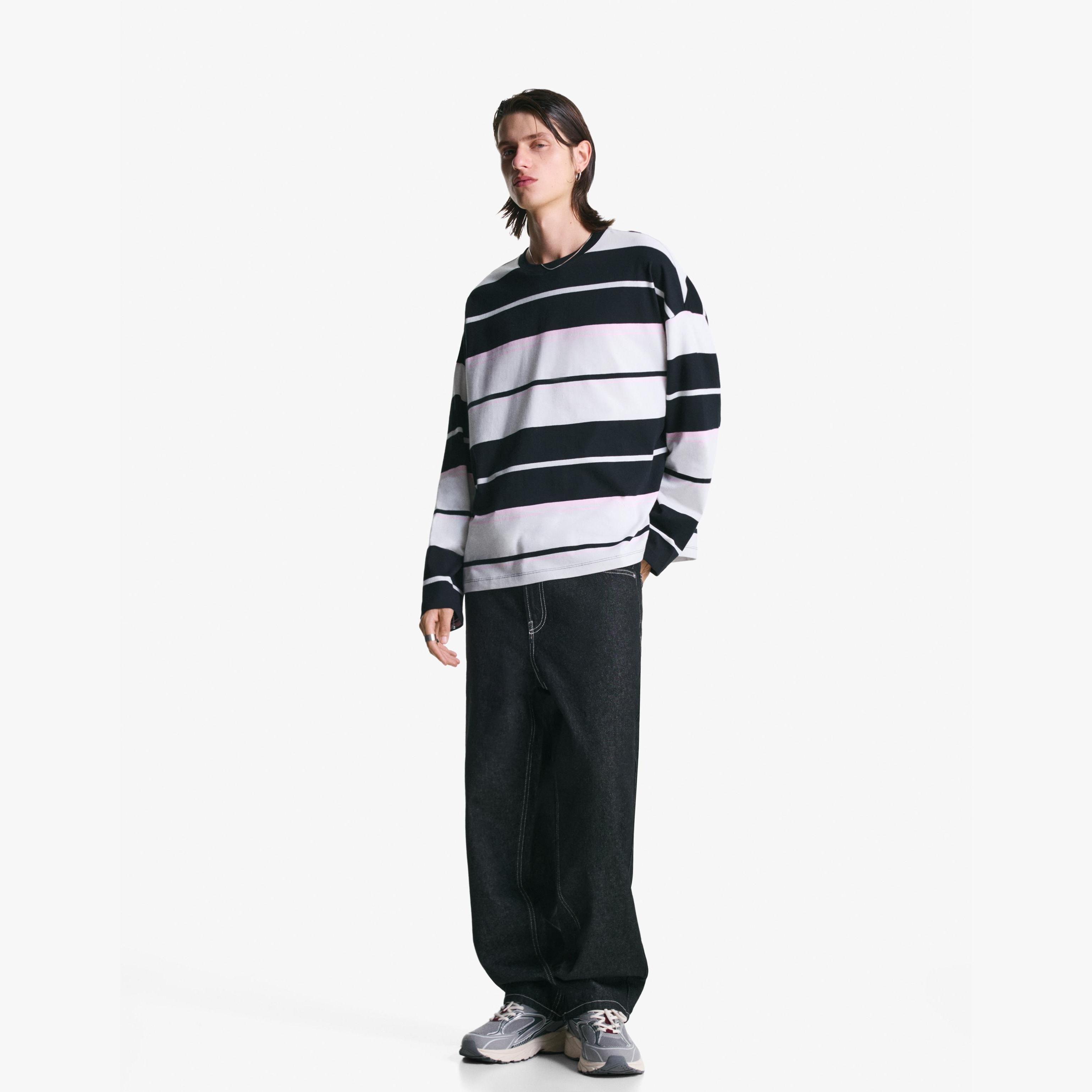 ارتقِ بإطلالتك اليومية مع هذا البنطال الجينز من Bershka المصمم بقصة تجمع بين الاتساع والراحة، ليمنحك مظهرًا شبابيًا عصريًا. اللون الأسود يضفي لمسة أنيقة حيادية، مما يجعله خيارًا مثاليًا للإطلالات الكاجوال أو شبه الرسمية.