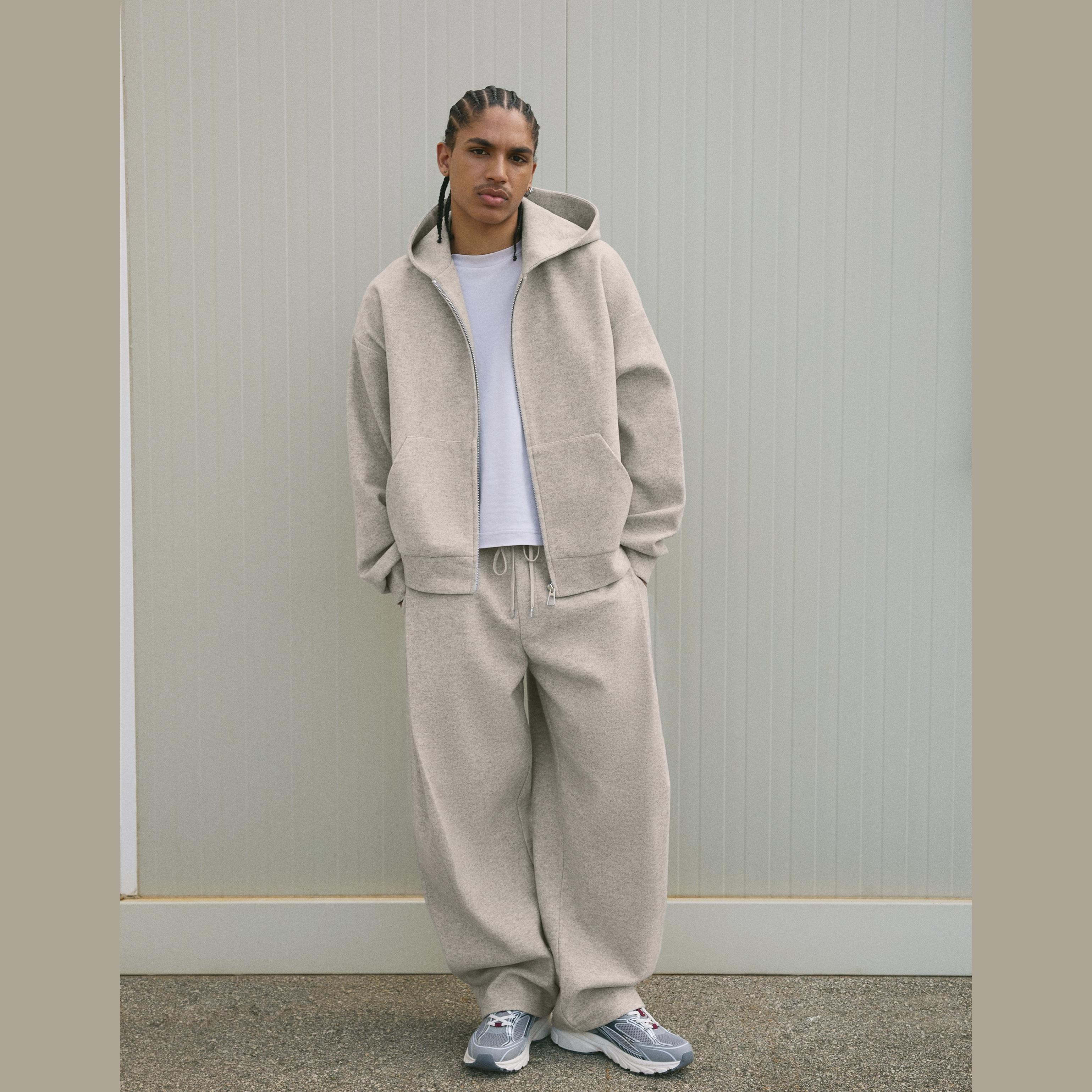 تميّز بإطلالة دافئة وعصرية مع هذا البنطال من Bershka المصمم بقصة Balloon Fit الواسعة عند الفخذ، وخامة فيلت تضيف ملمسًا فاخرًا. الطيات الأمامية تمنحك لمسة كلاسيكية، واللون الرمادي يضفي دفئًا وأناقة حيادية.