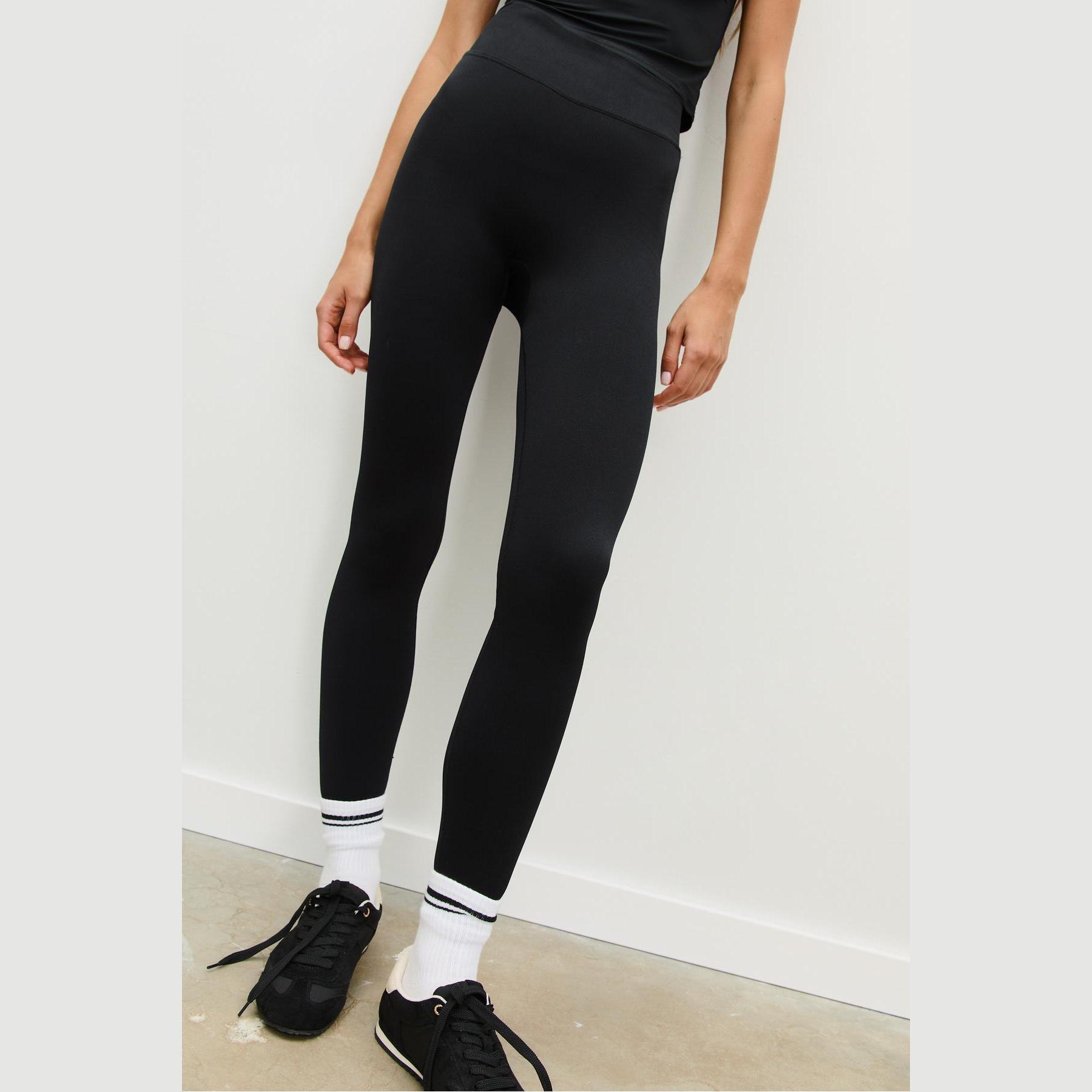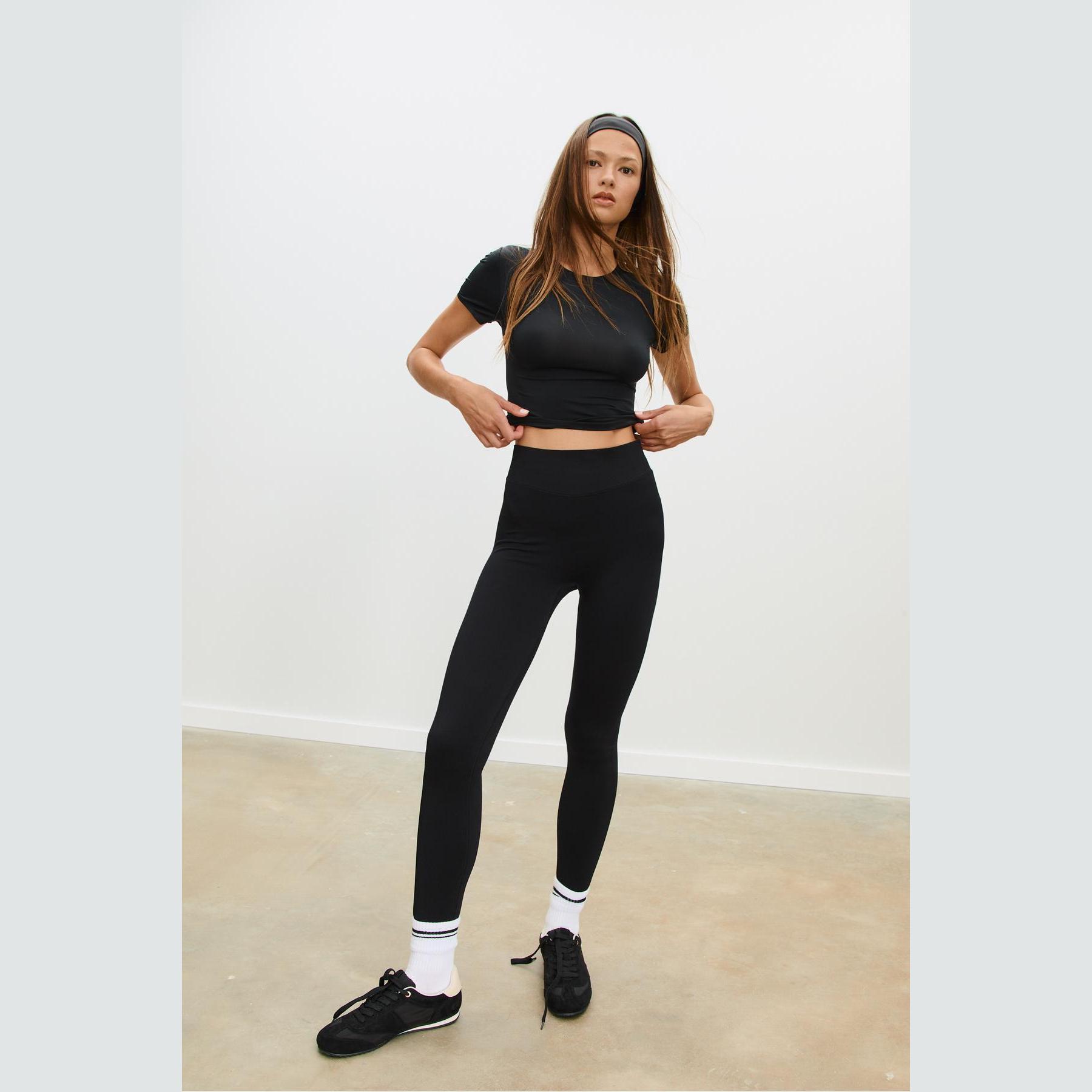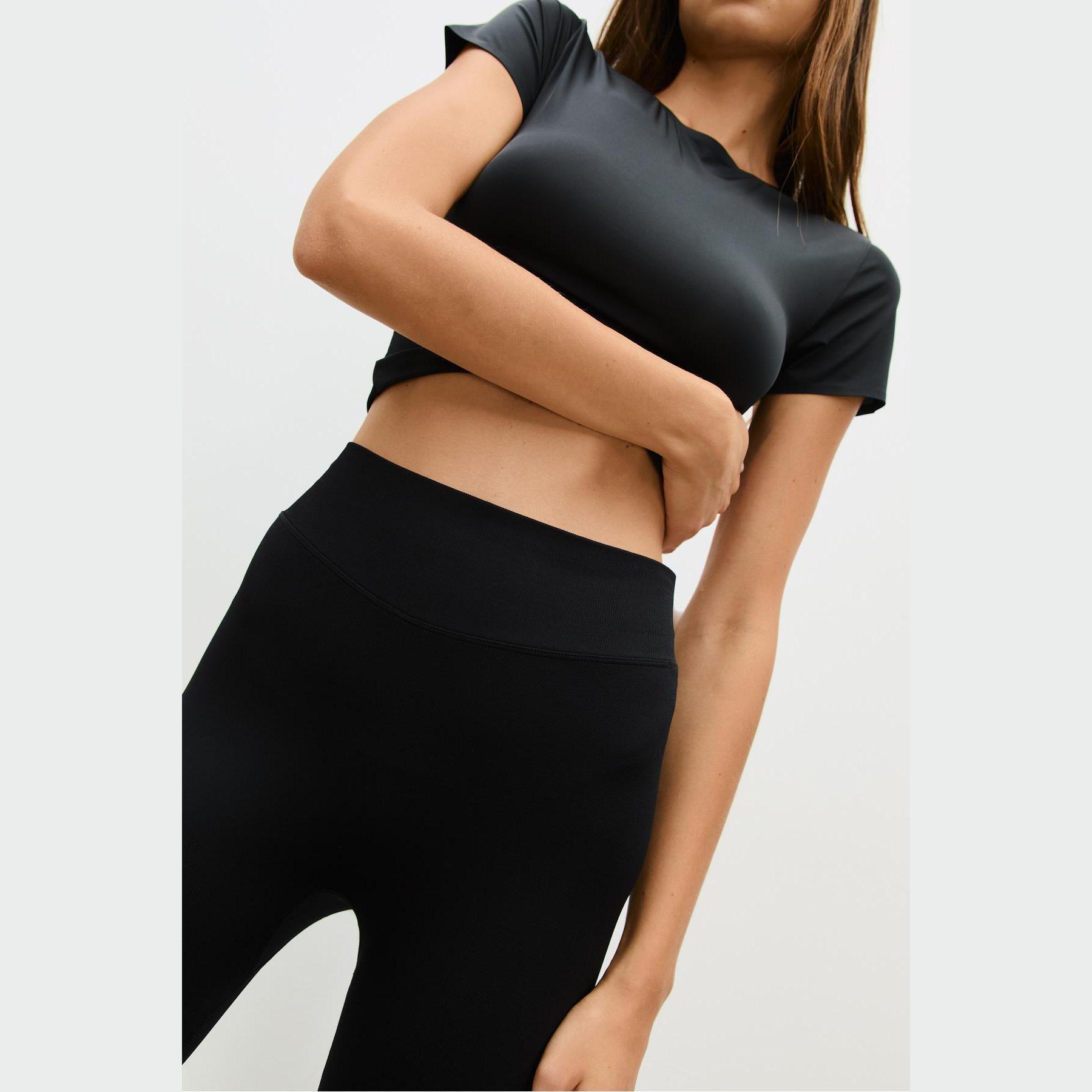 بنطال ليغينغ عالي الخصر بقماش ناعم وشكل محدد – أسود من Stradivarius
