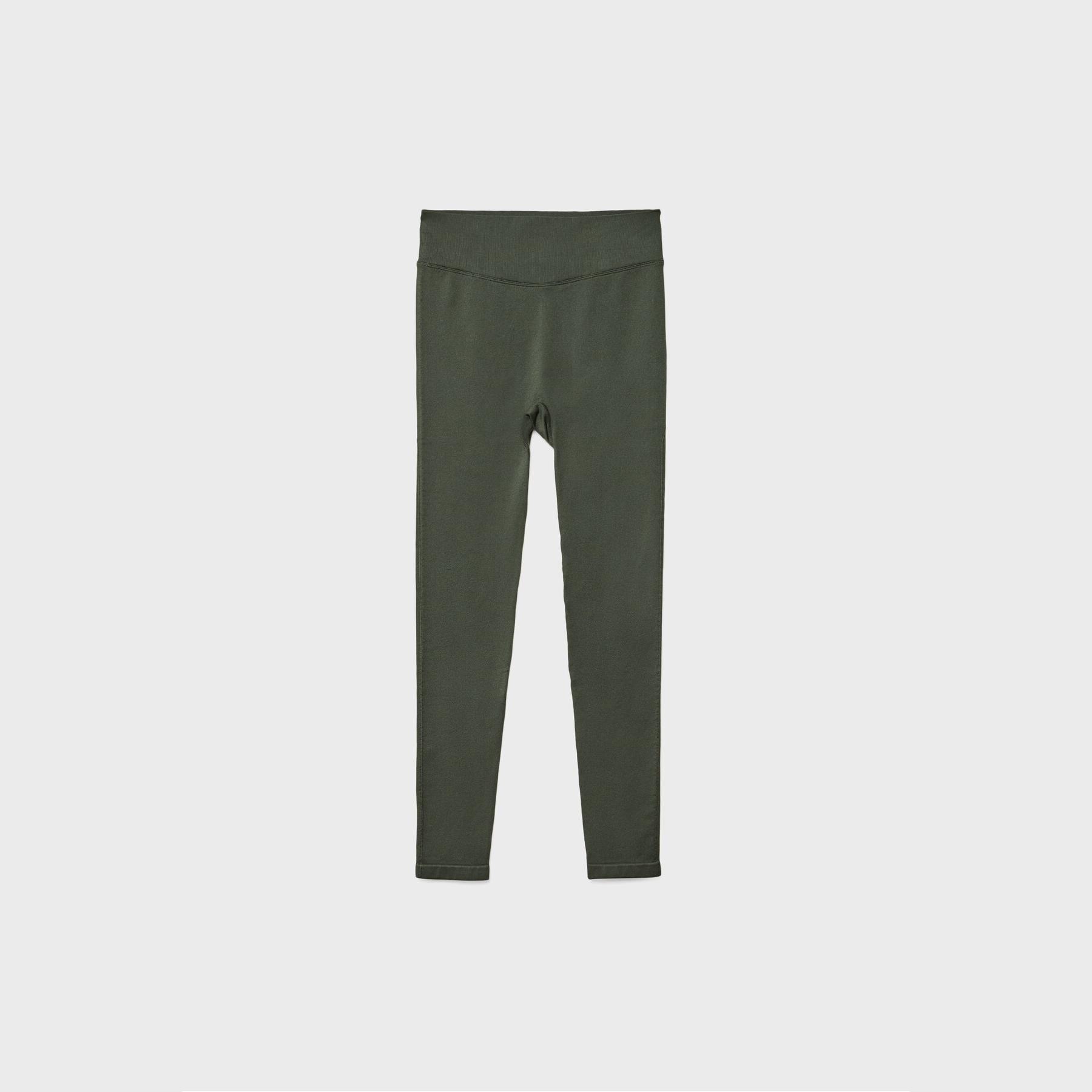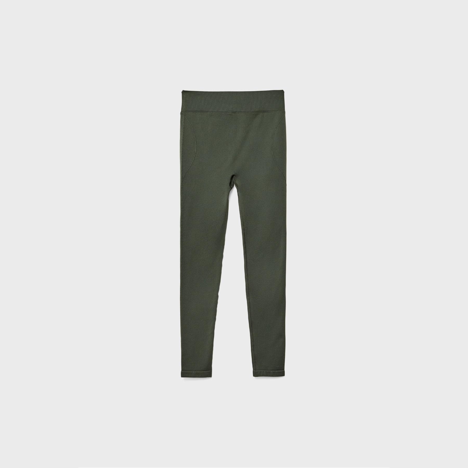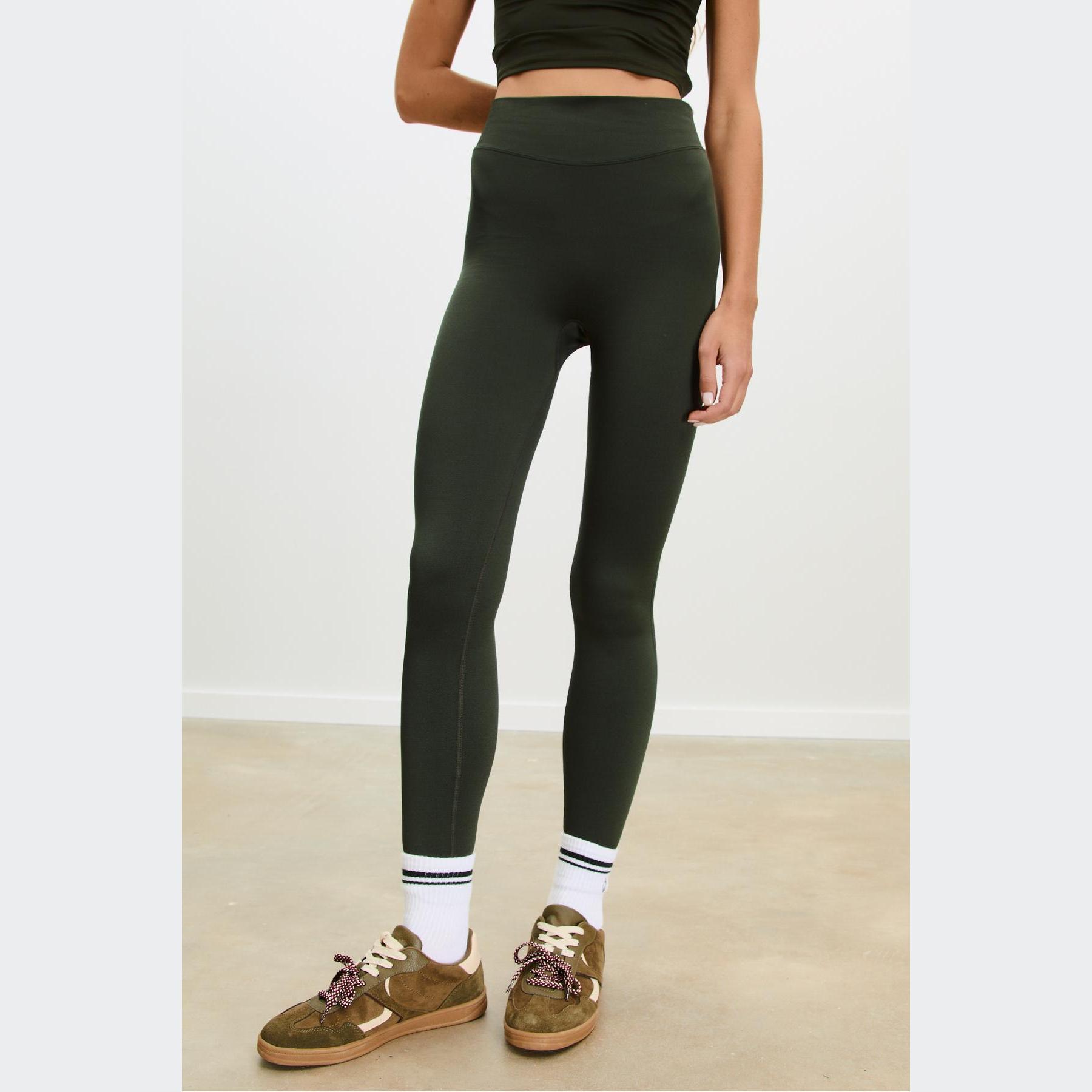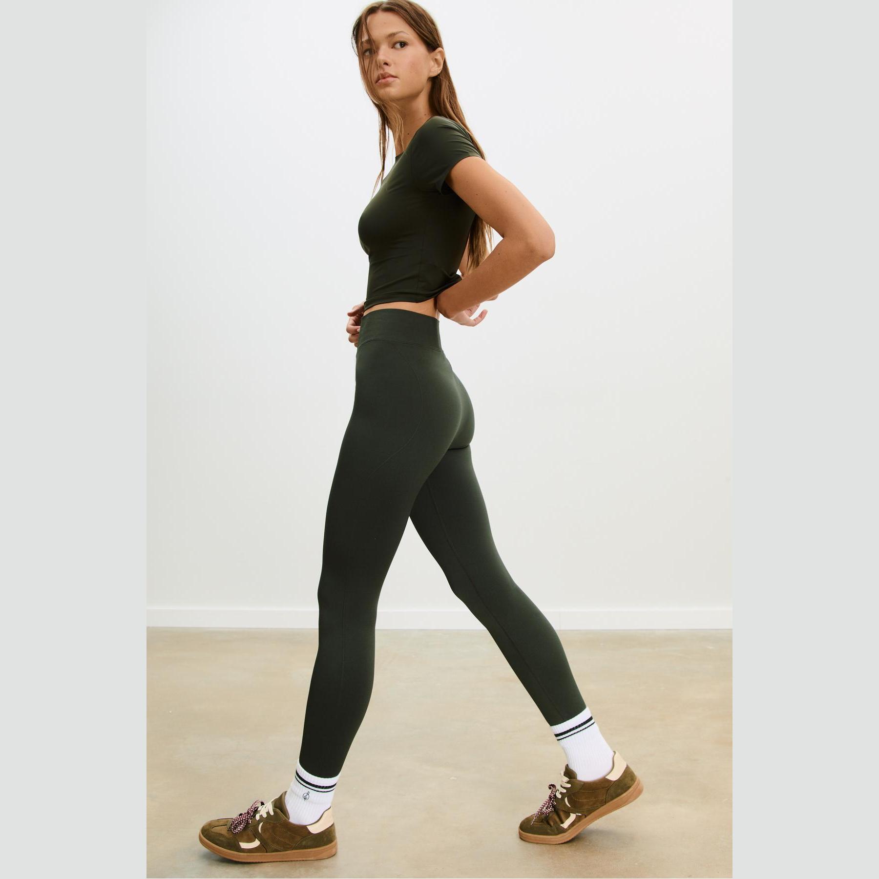 بنطال ليغينغ عالي الخصر بقماش ناعم وشكل محدد – أخضر داكن من Stradivarius
