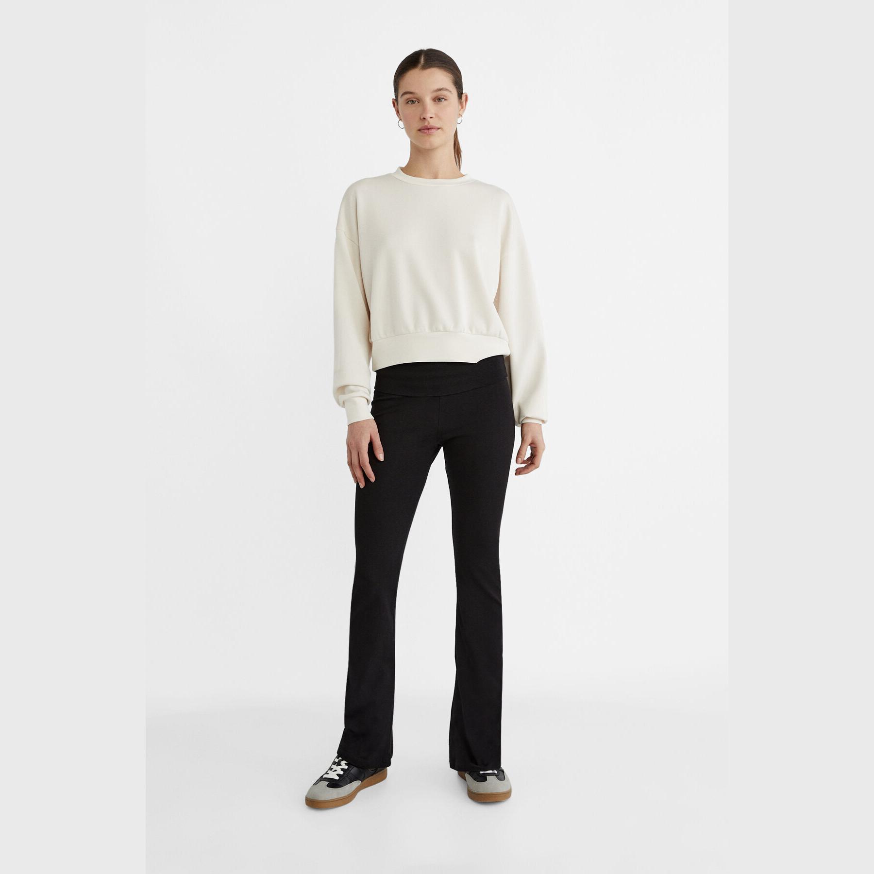 بنطال ليغينغ من Stradivarius مصنوع من خامة قطنية مطاطية، بتصميم عالي الخصر وقصة أرجل واسعة تضيف لمسة أنثوية وانسيابية، مثالي للإطلالات اليومية أو الكاجوال.