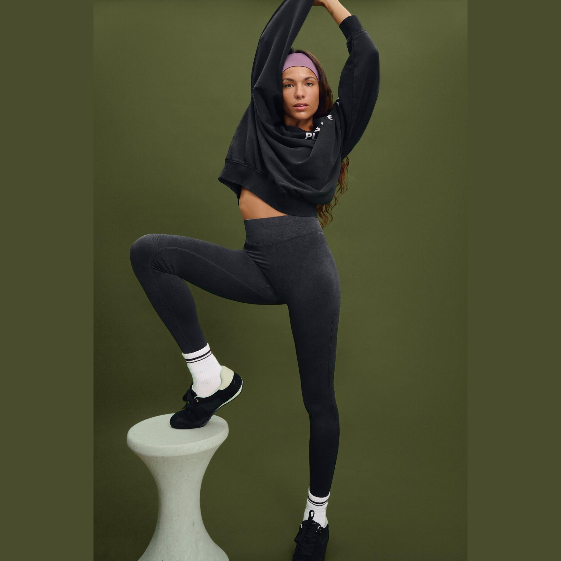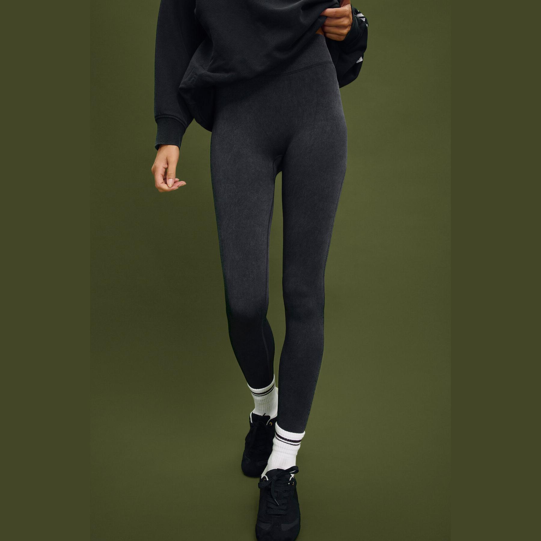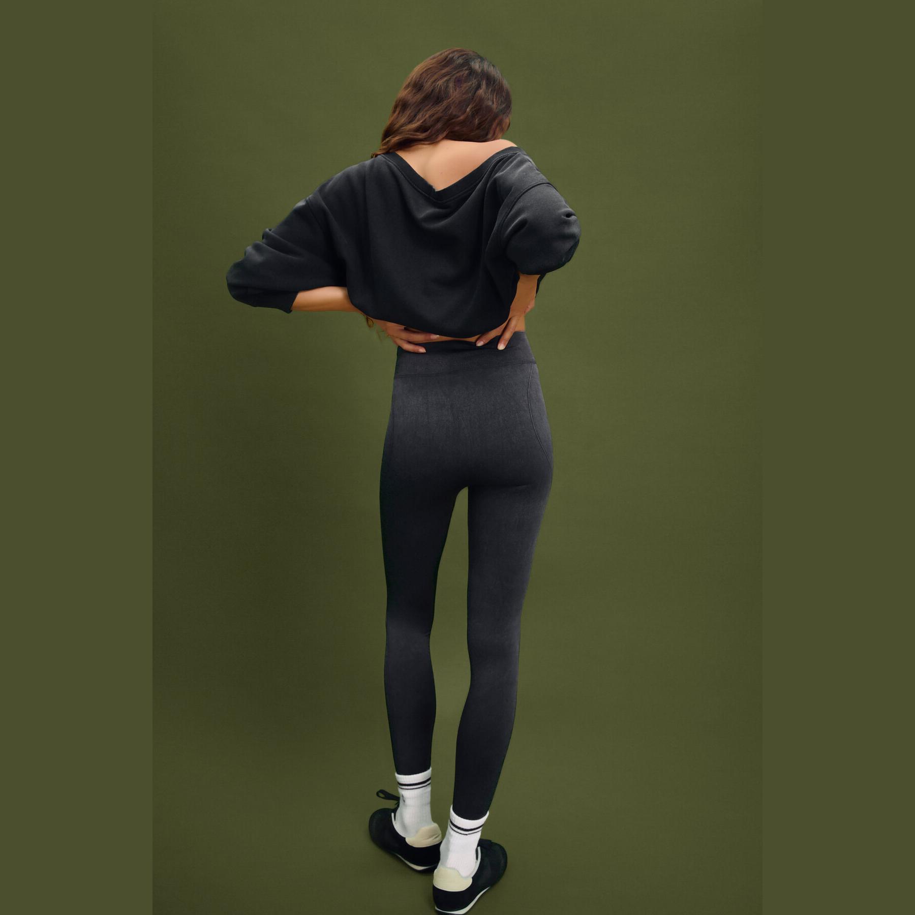 بنطال ليغينغ عالي الخصر بقماش ناعم وشكل محدد – رمادي غامق من Stradivarius