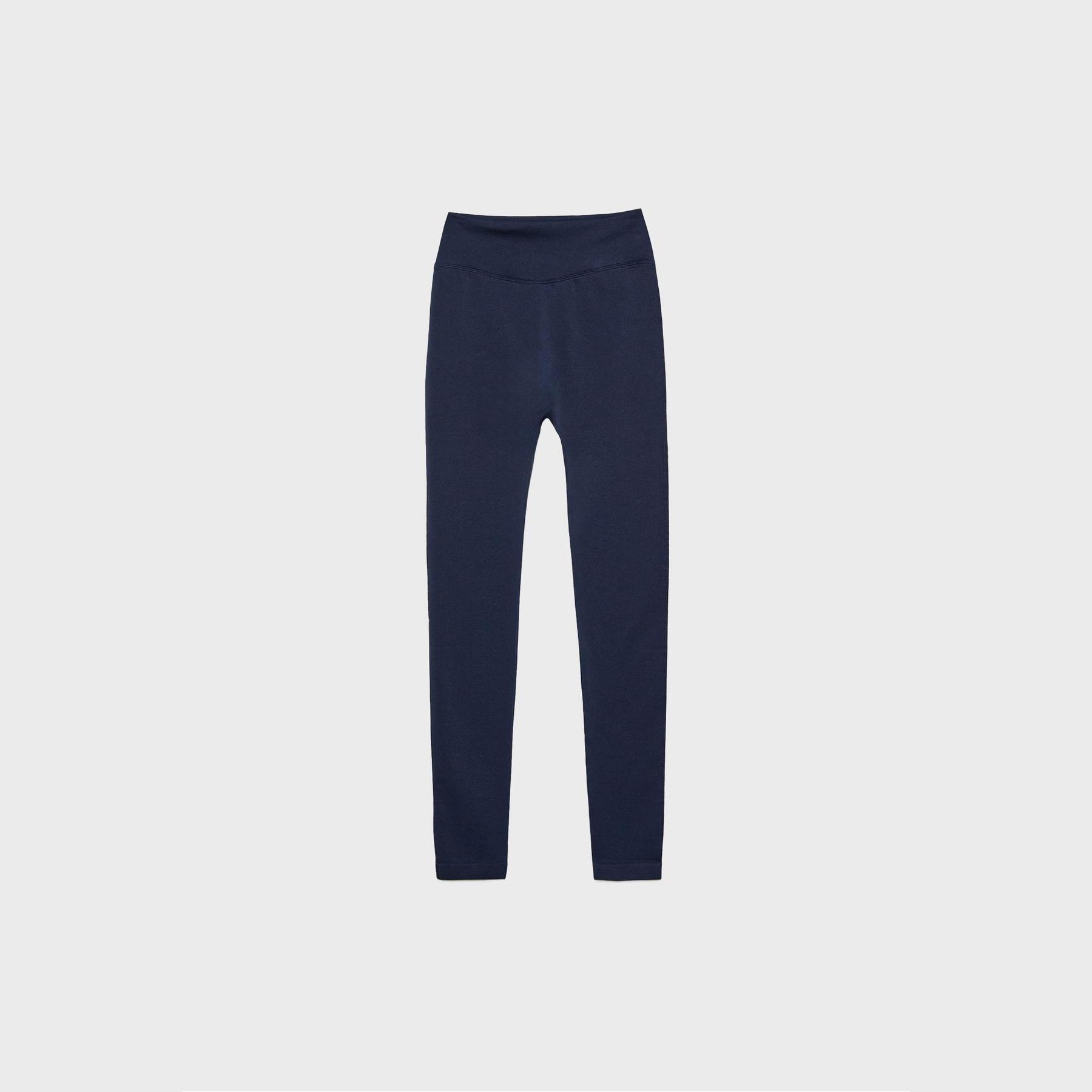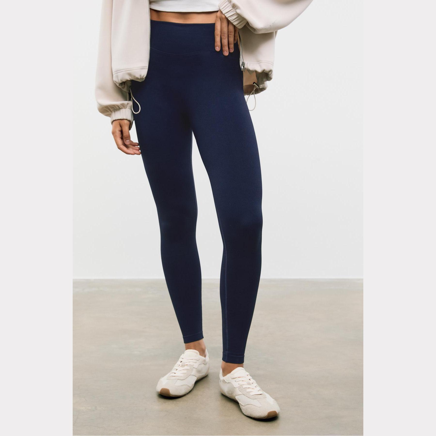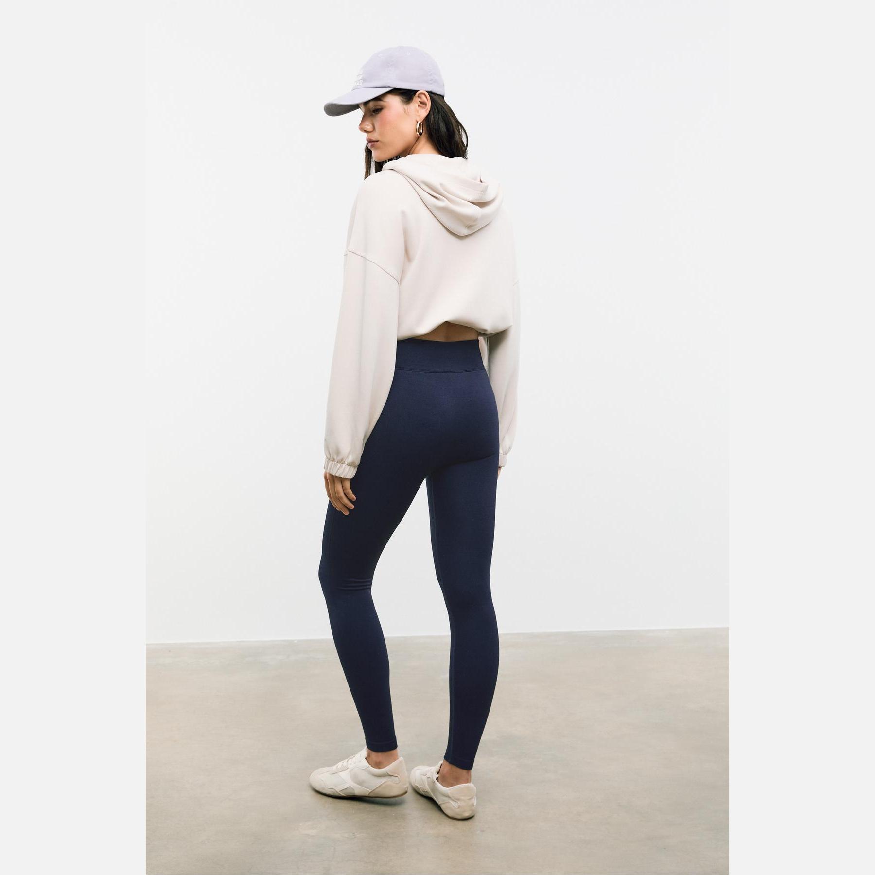 بنطال ليغينغ عالي الخصر بقماش ناعم وشكل محدد – كحلي من Stradivarius