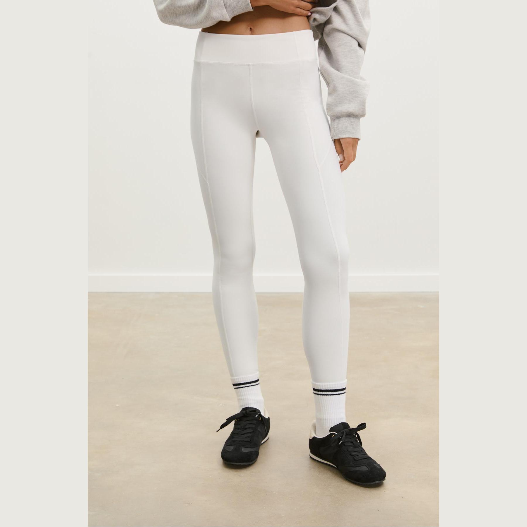 بنطال ليغينغ رياضي من Stradivarius مصنوع من خامة ناعمة بلمسة باردة، بتصميم عالي الخصر وقصة مقصوصة عند الكاحل، يمنح مظهرًا عصريًا وانسيابيًا مع دعم مريح أثناء الحركة.