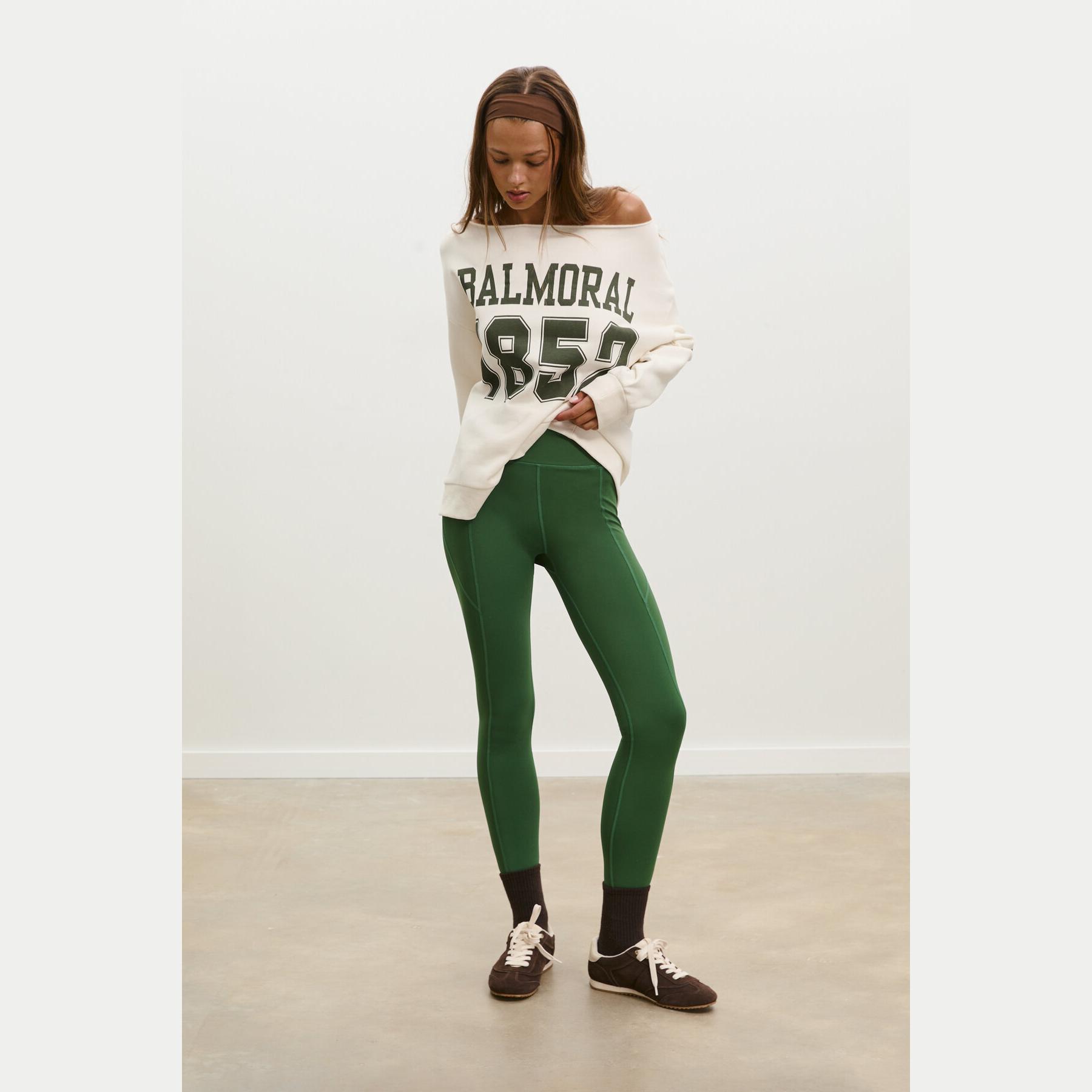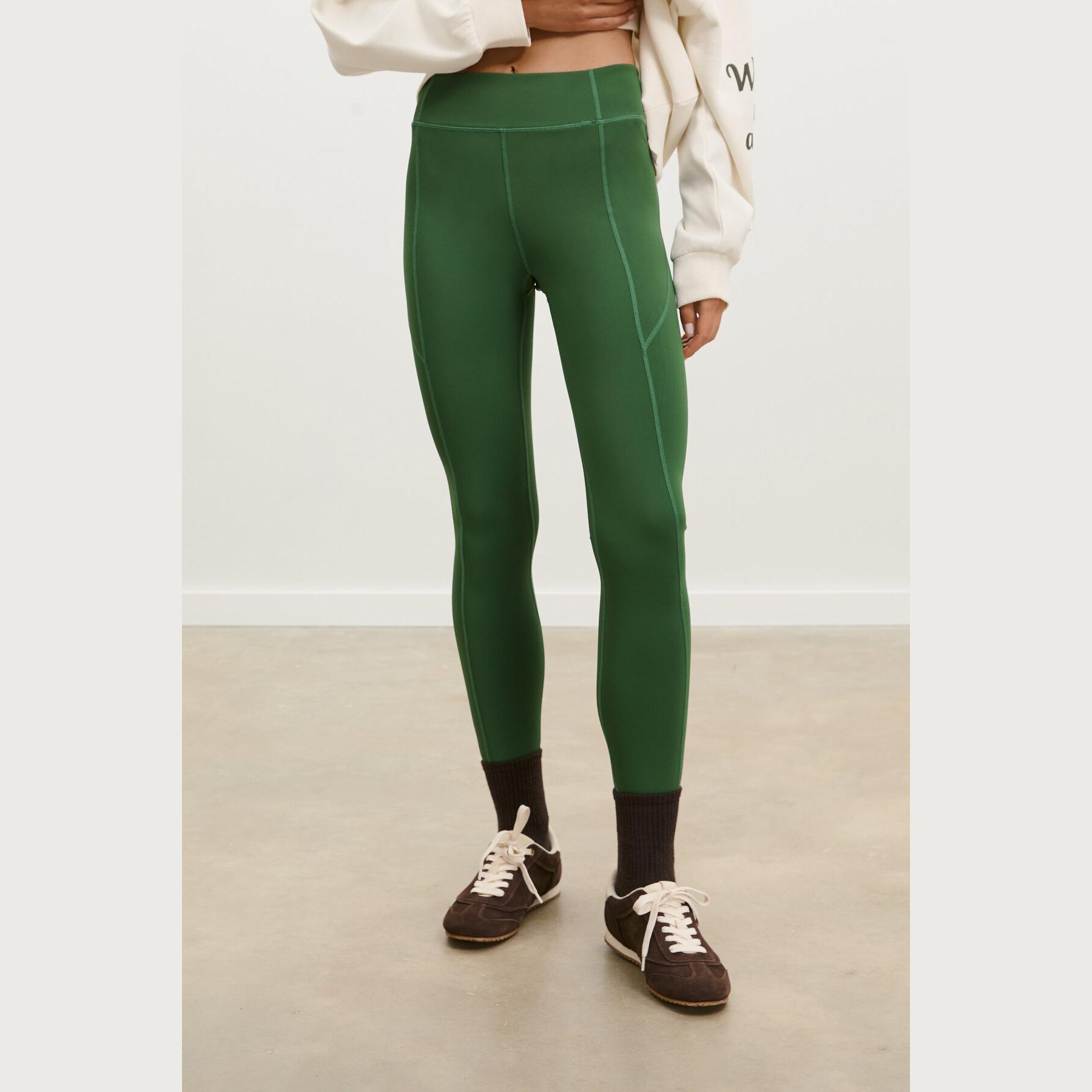 بنطال ليغينغ رياضي من Stradivarius مصنوع من خامة ناعمة بلمسة باردة، بتصميم عالي الخصر وقصة مقصوصة عند الكاحل، يمنح مظهرًا عصريًا وانسيابيًا مع دعم مريح أثناء الحركة.