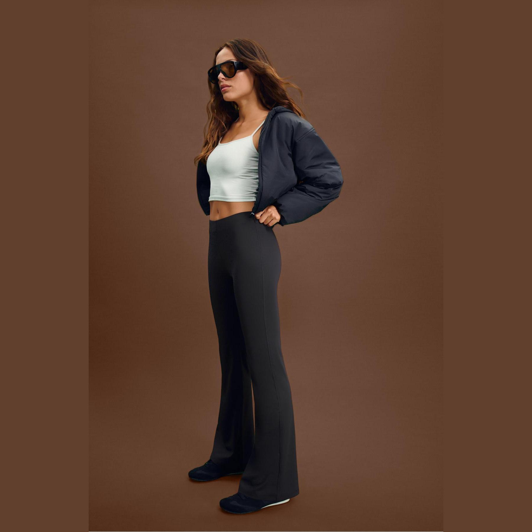 بنطال ليغينغ من Stradivarius مصنوع من خامة بولياميد ناعمة ومرنة، بتصميم متوسط الخصر وقصة أرجل واسعة تنتهي بقصة چان پاتشا، يمنح مظهرًا أنثويًا وانسيابيًا دون أن يقيّد الحركة، مثالي للإطلالات اليومية أو الكاجوال.