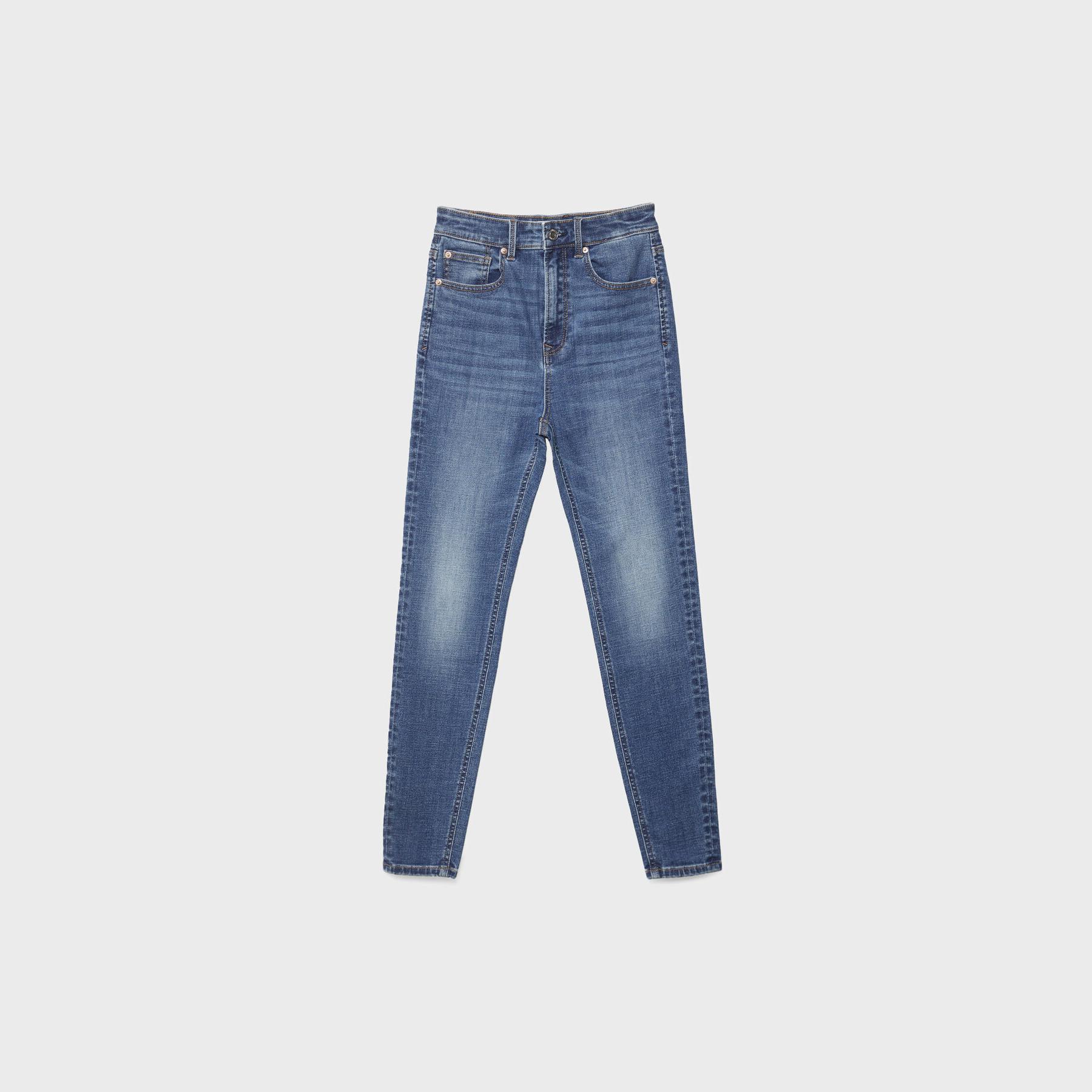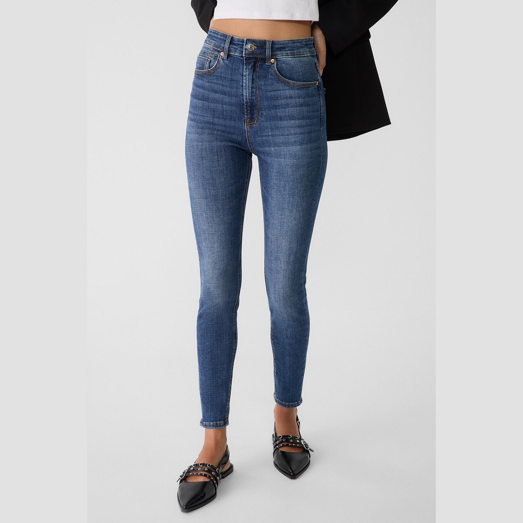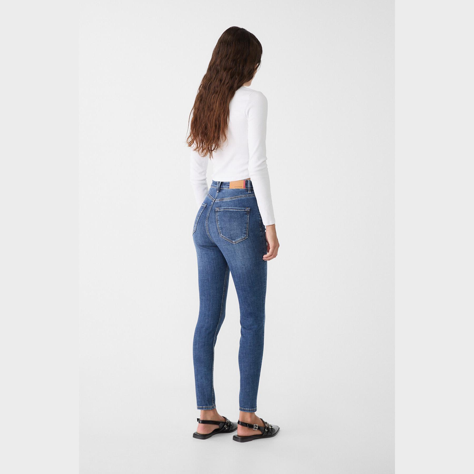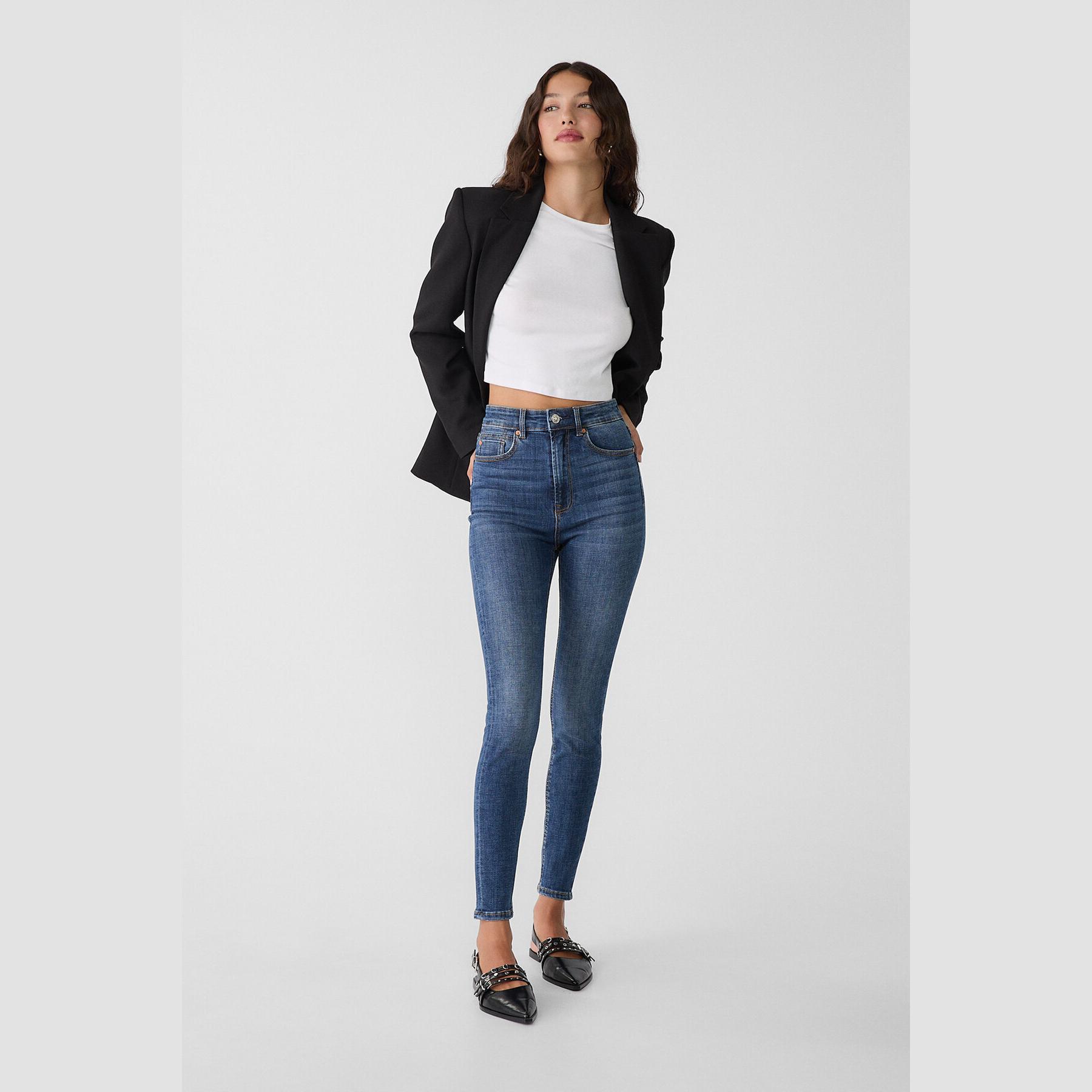بنطال جينز 1450 بقصة ضيقة وخصر فائق الارتفاع – كحلي من Stradivarius