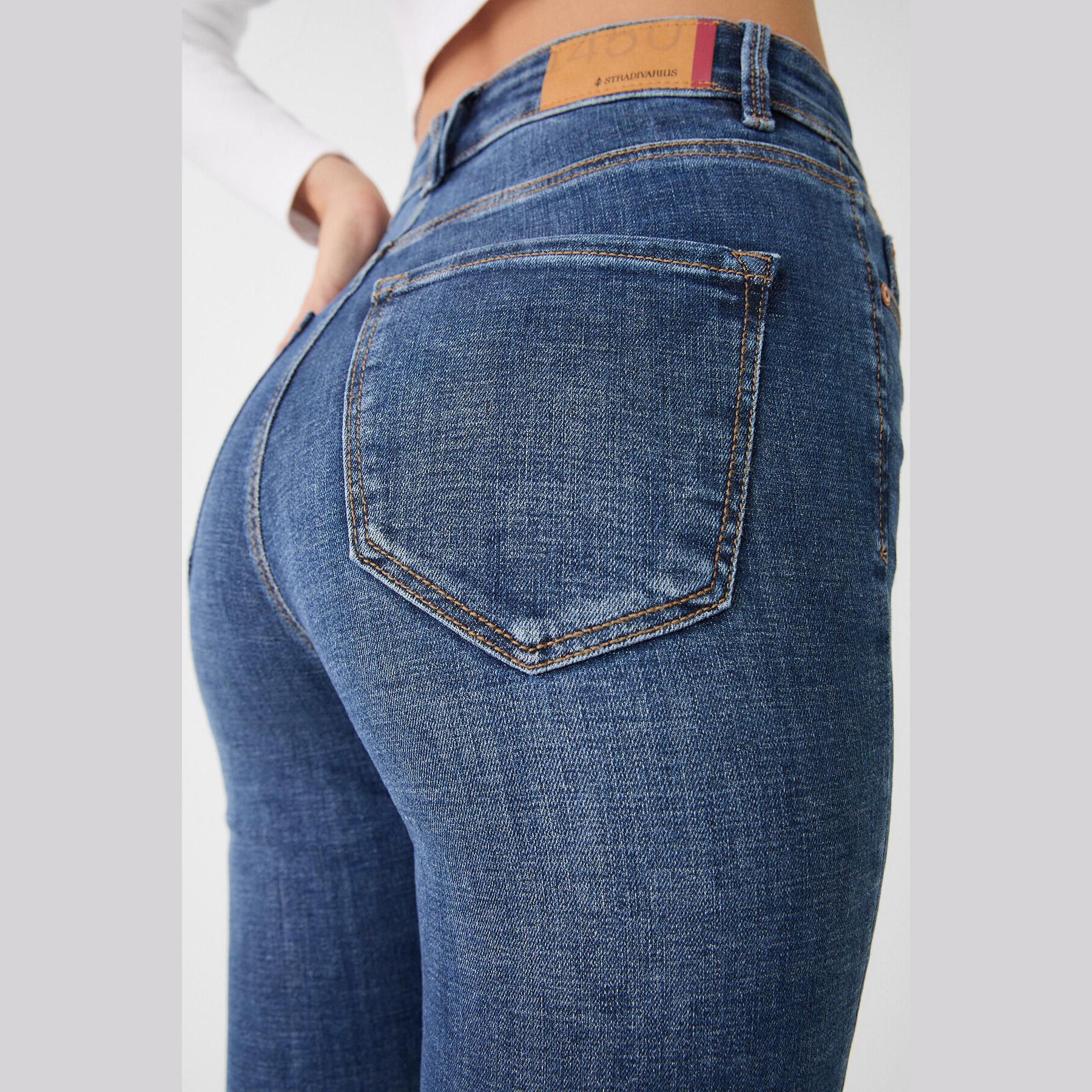 بنطال جينز أنيق من Stradivarius بلون كحلي داكن، مصنوع من خامة دينم مطاطية بتركيبة غنية بالقطن، يتميز بقصة ضيقة (Skinny Fit) وخصر فائق الارتفاع يمنحك ثباتًا وأناقة، مزود بإغلاق أمامي بالأزرار، 5 جيوب عملية، وأطراف ضيقة عند الكاحل، مثالي للتنسيق مع توبات قصيرة أو جاكيتات لإطلالة كاجوال مريحة وعصرية.