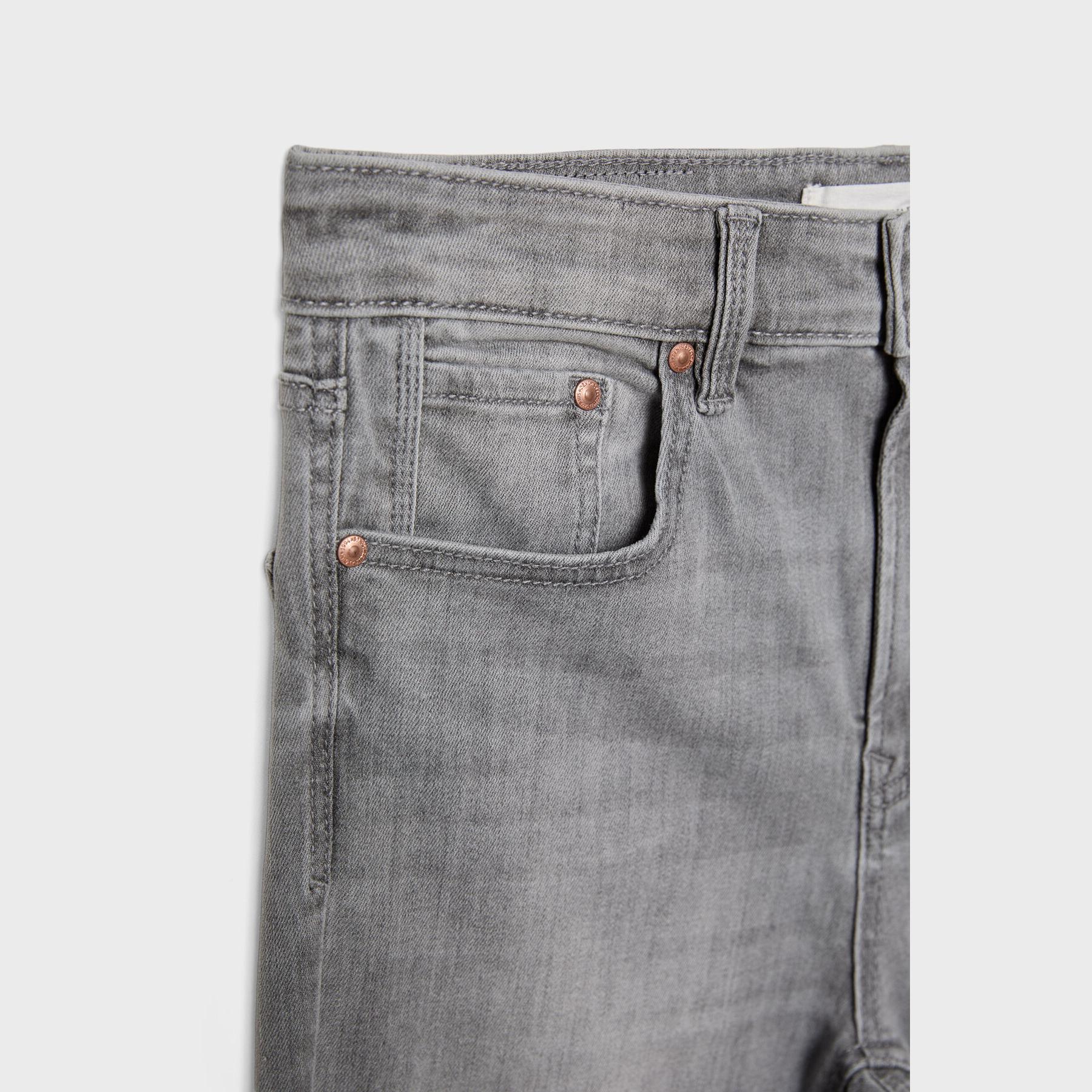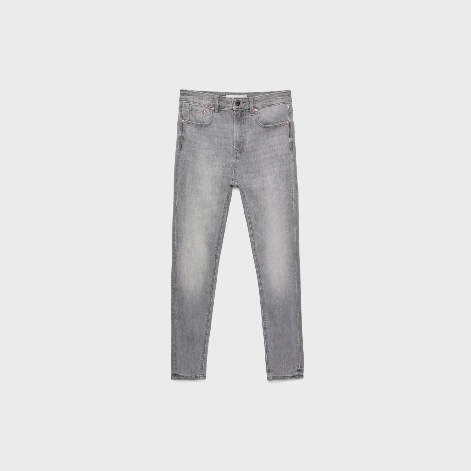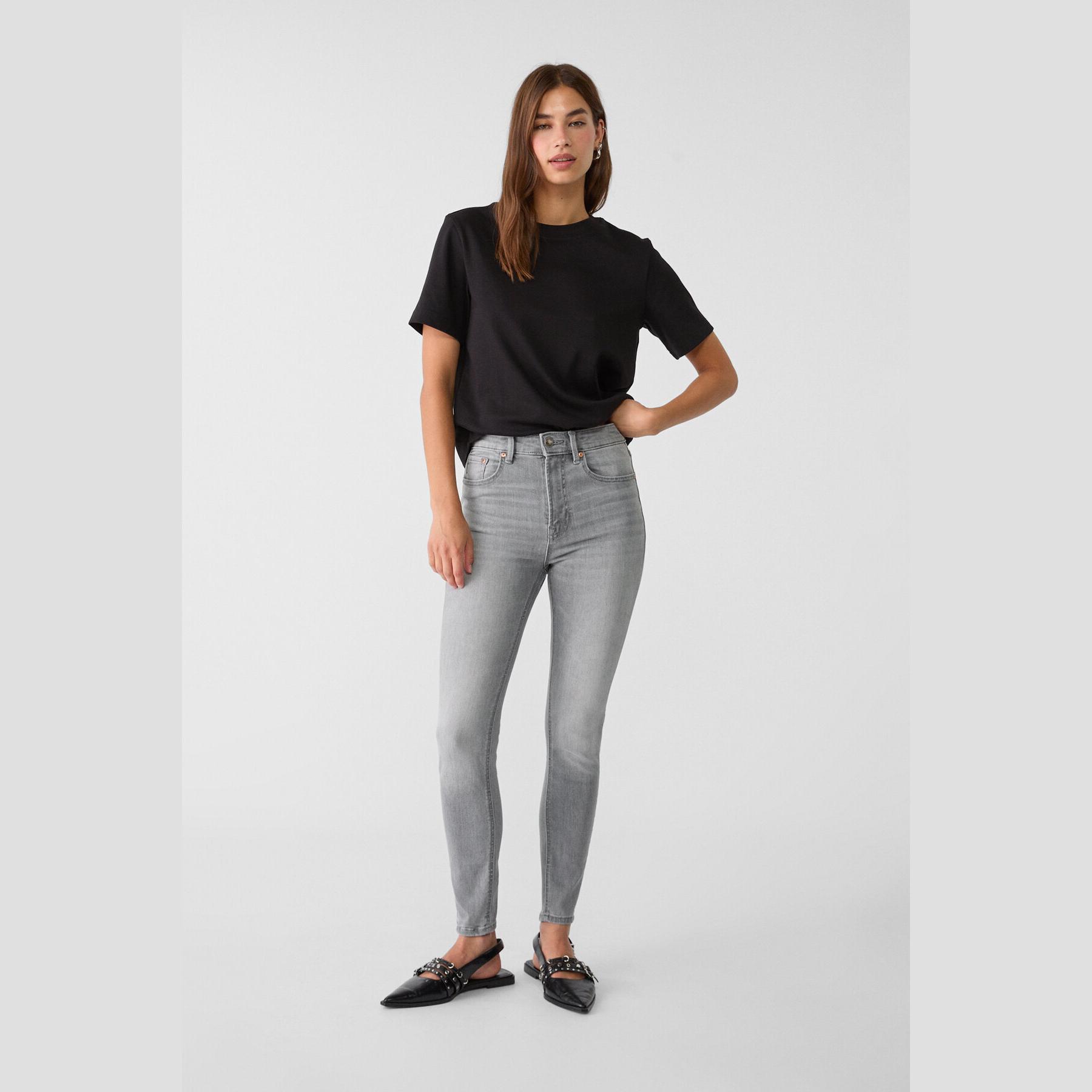 بنطال جينز أنيق من Stradivarius بلون أسود كلاسيكي، مصنوع من خامة دينم مطاطية بتركيبة غنية بالقطن، يتميز بقصة Super Skinny تلتف حول الساق من الفخذ حتى الكاحل، وخصر عادي بارتفاع متوسط، مزود بإغلاق أمامي بسحاب وزر معدني، 5 جيوب عملية، وأطراف ضيقة، مثالي للتنسيق مع توبات قصيرة أو جاكيتات لإطلالة كاجوال مريحة وعصرية.