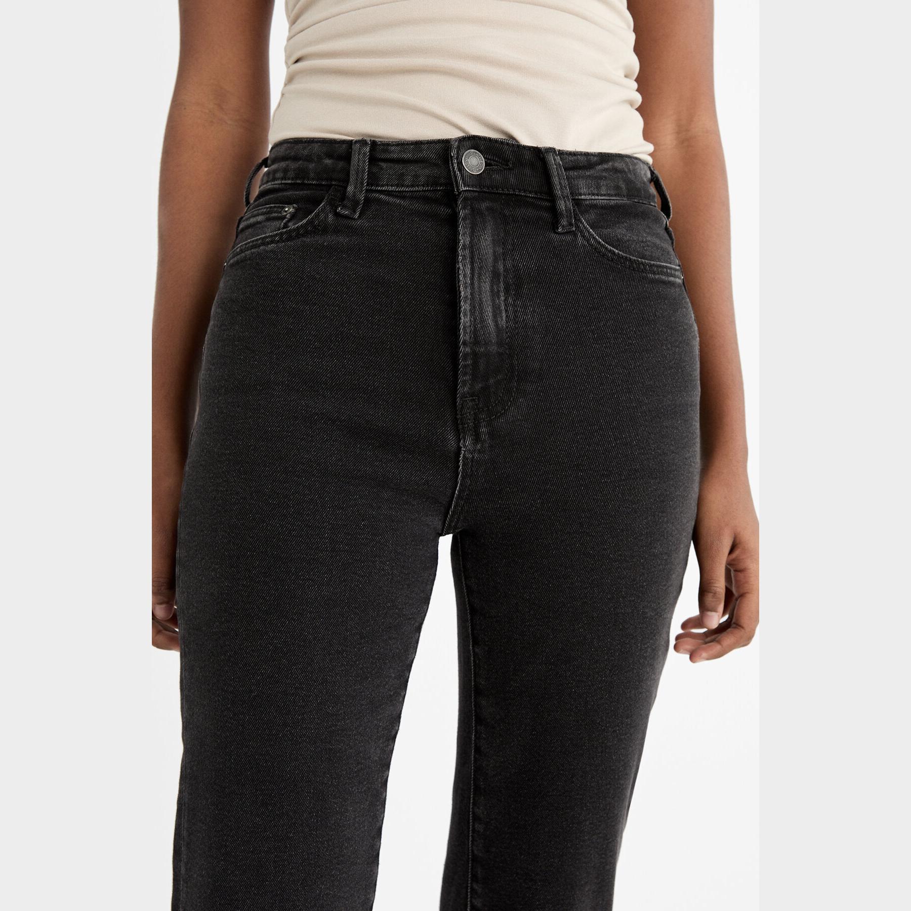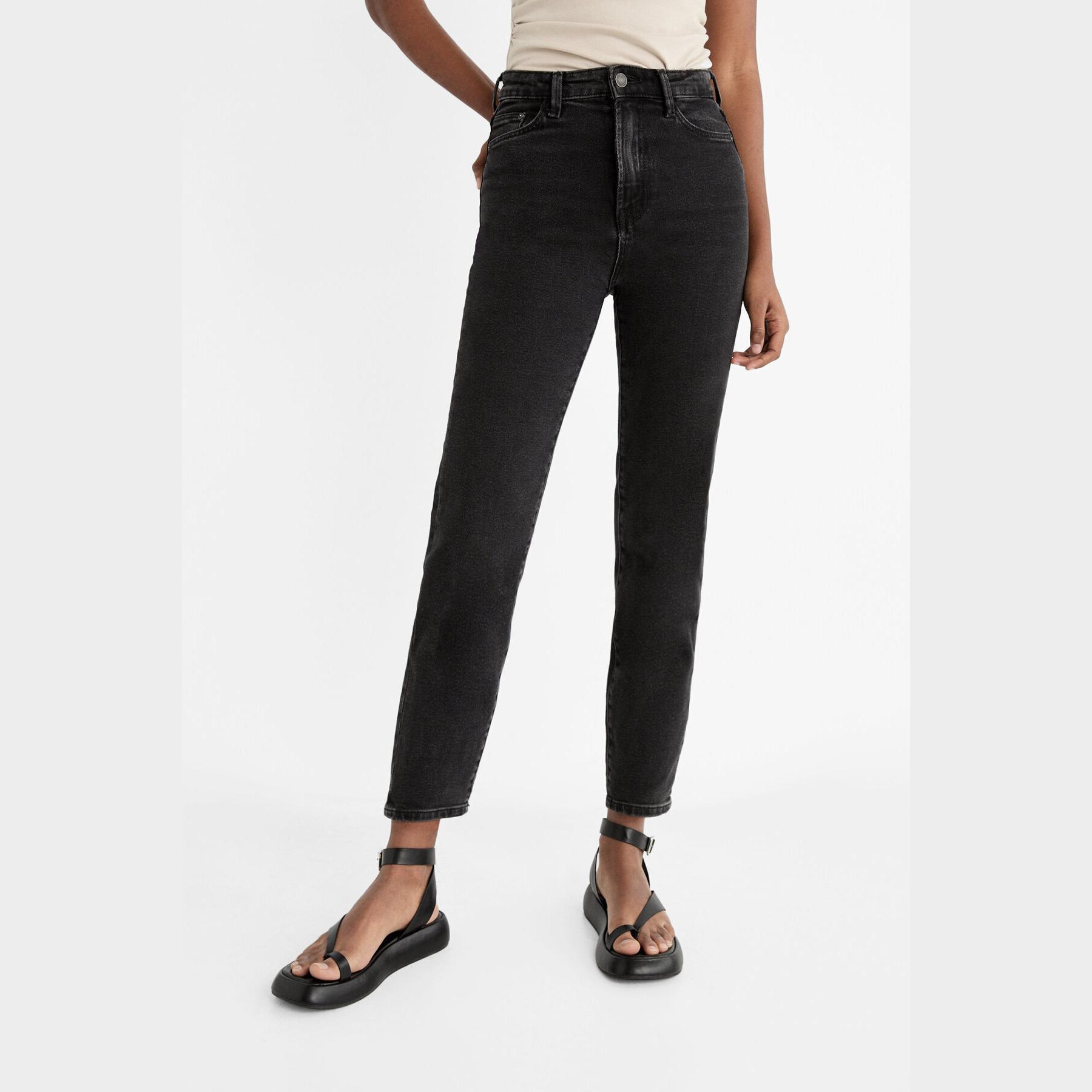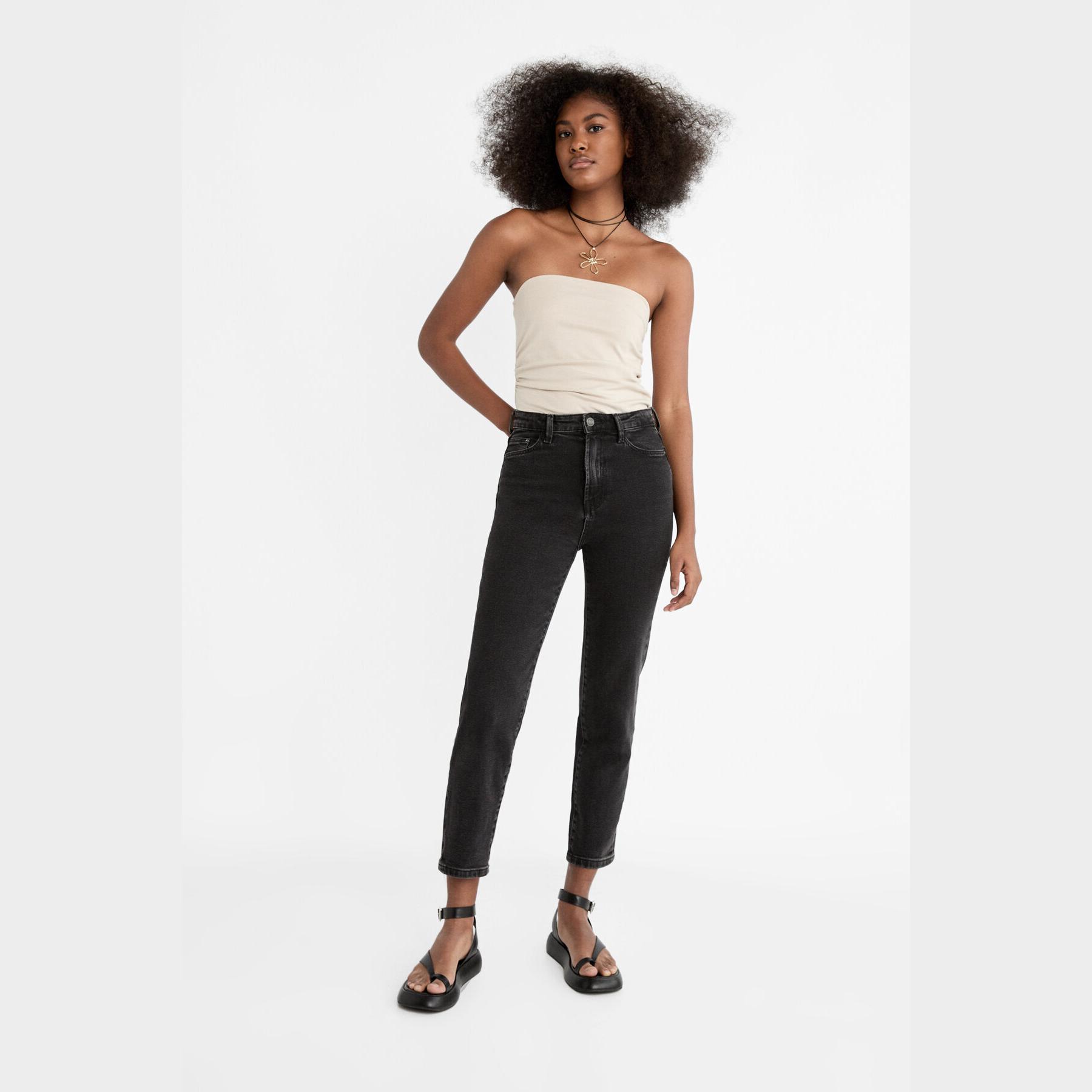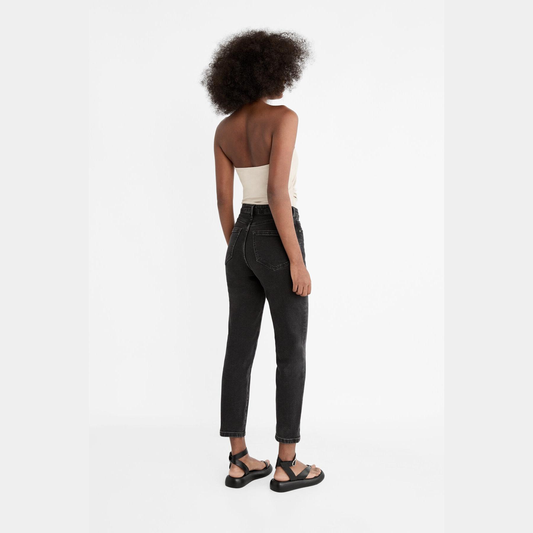 بنطال جينز أنيق من Stradivarius بلون رمادي داكن، مصنوع من خامة دينم قطنية مرنة، يتميز بقصة Slim Fit Mom التي تجمع بين الراحة والرشاقة، بخصر عالي وأطراف ضيقة، مزود بإغلاق أمامي بسحاب وزر معدني، 5 جيوب عملية، بدون حزام، مثالي للتنسيق مع توبات قصيرة أو جاكيتات لإطلالة كاجوال مريحة وعصرية.