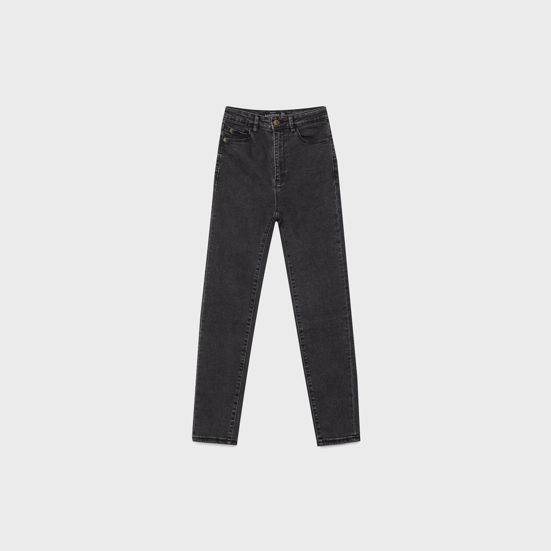 بنطال جينز Slim Fit Mom بخصر عالي وقصة ضيقة – رمادي من Stradivarius