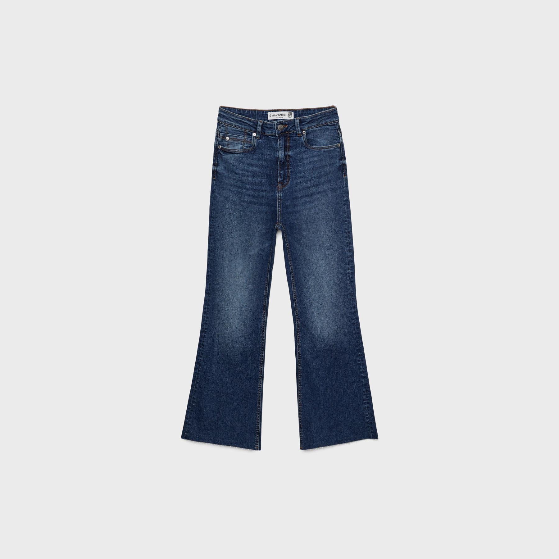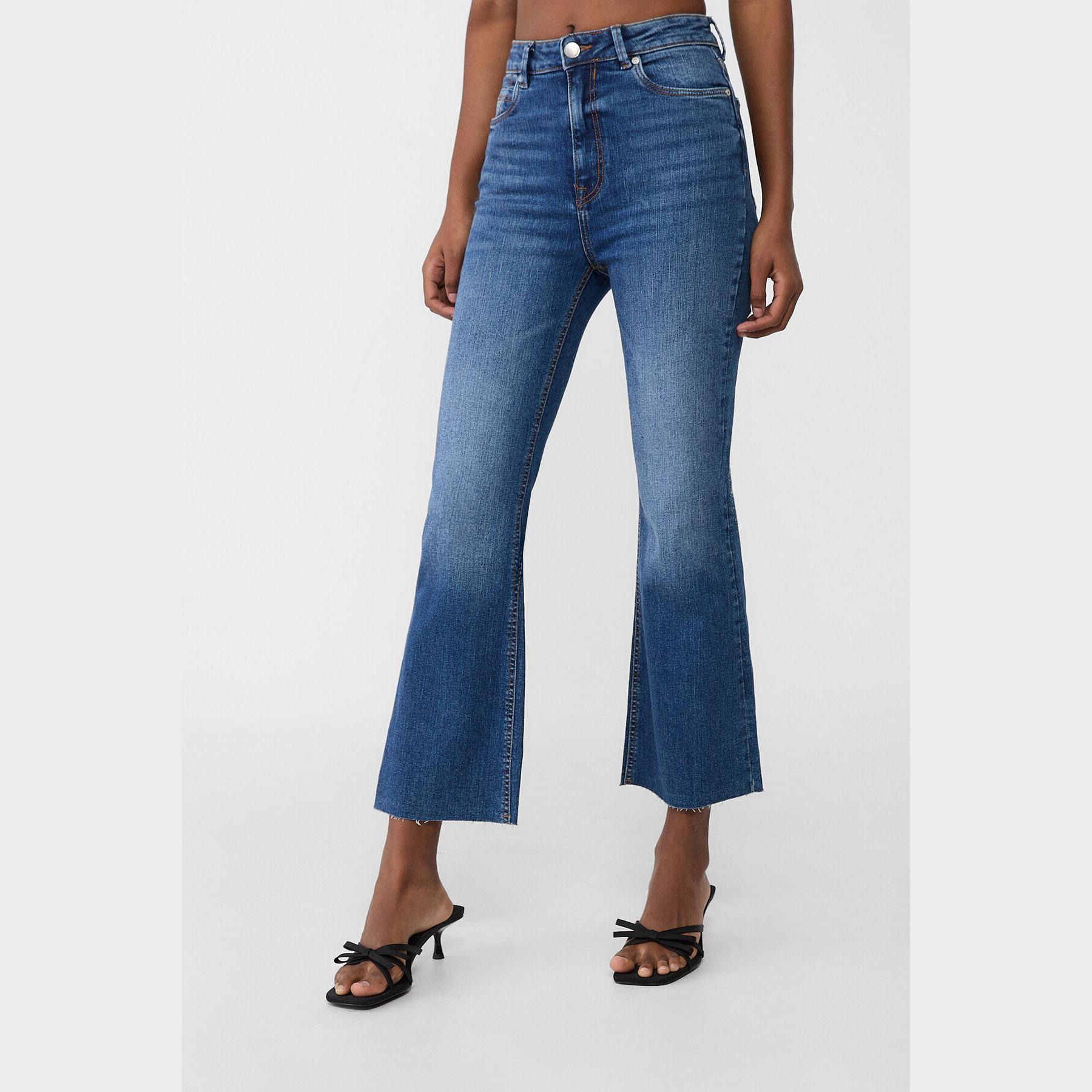 بنطال جينز D78 بقصة Crop وإسبانيول – أزرق من Stradivarius