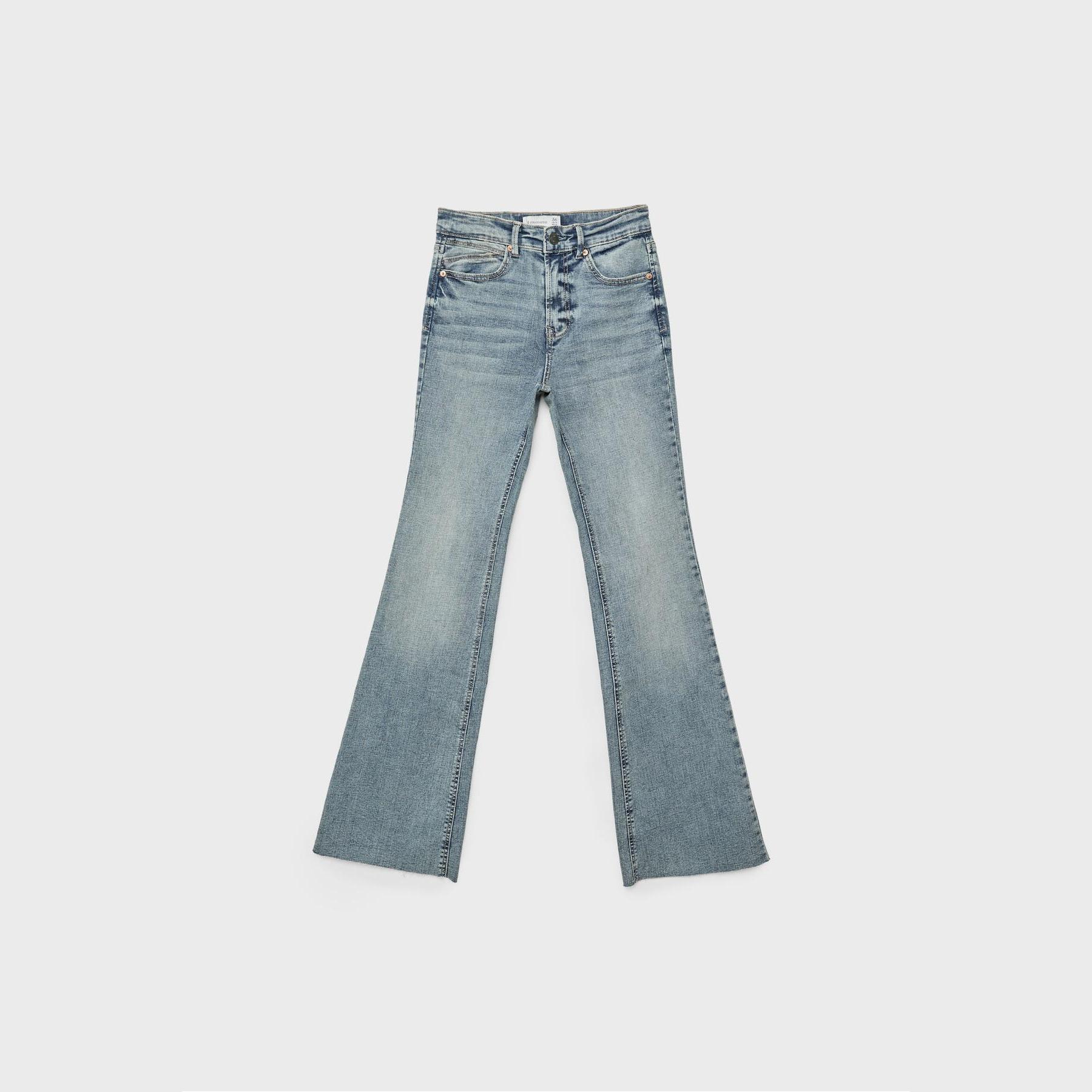 بنطال جينز Slim Fit بقصة إسبانيول وخصر عالي – أزرق من Stradivarius