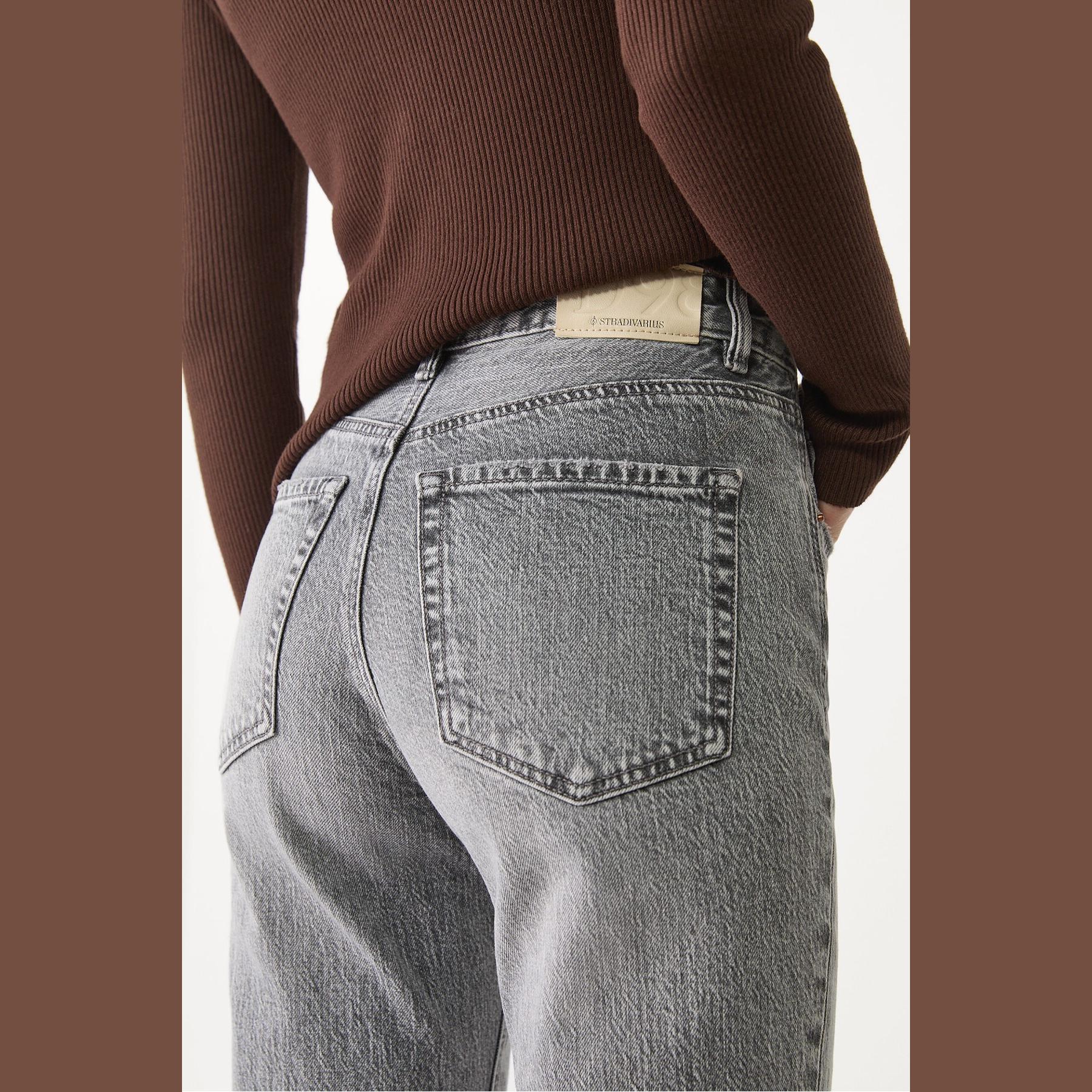 بنطال جينز D98 بقصة مستقيمة ولمسة Vintage – رمادي من Stradivarius
