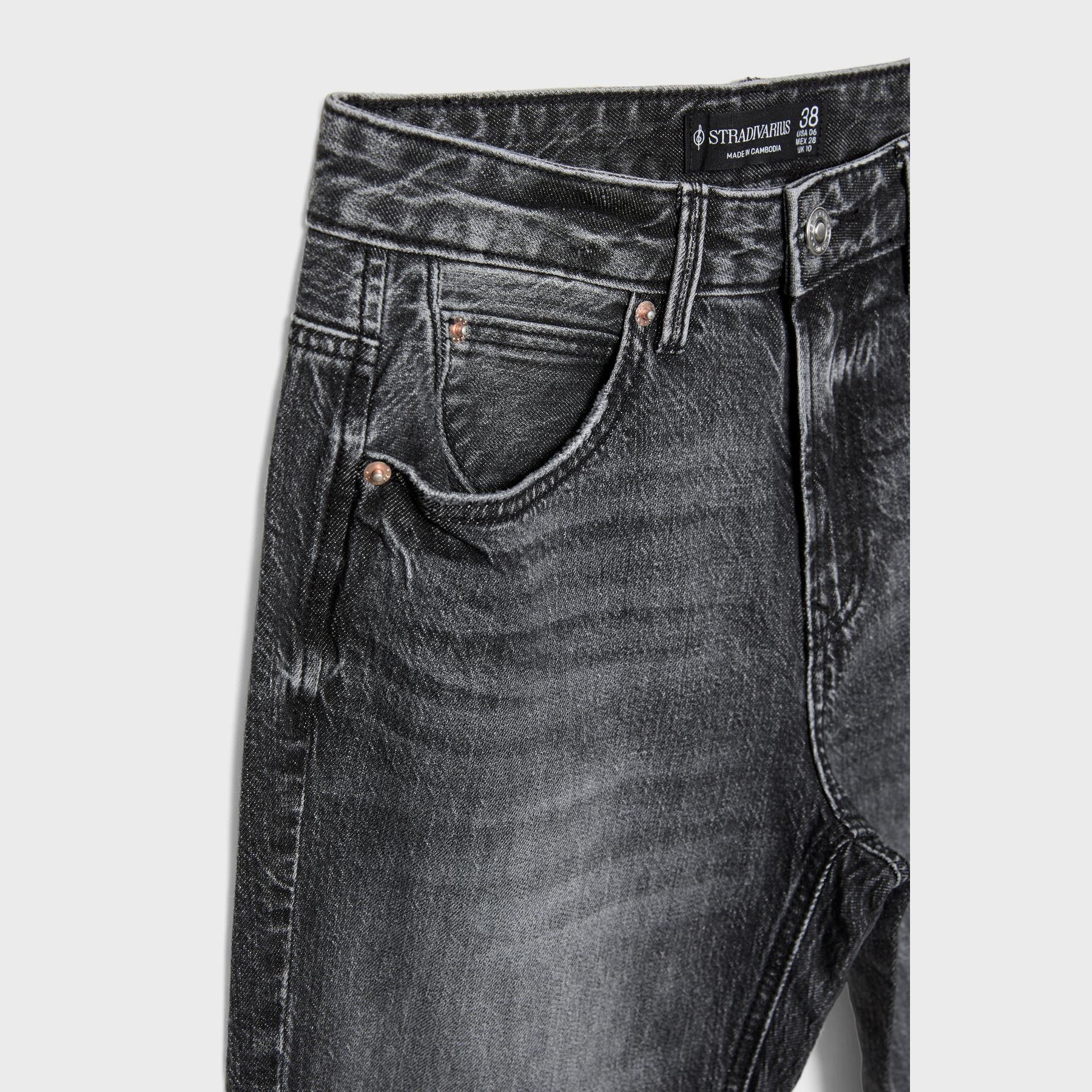 بنطال جينز D98 بقصة مستقيمة ولمسة Vintage – أسود من Stradivarius