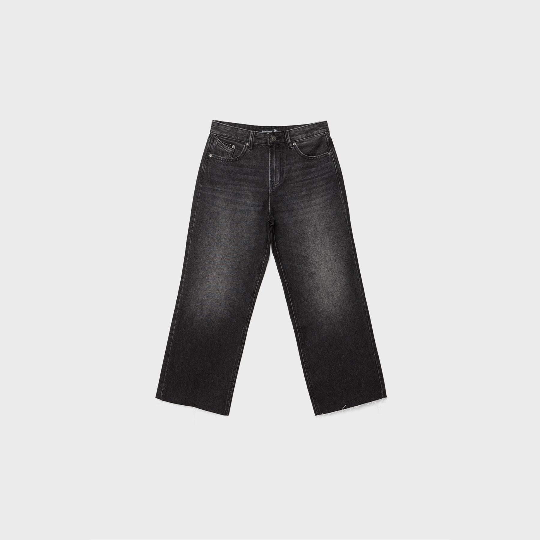 بنطال جينز D96 بقصة مستقيمة وبطول الكاحل – رمادي من Stradivarius