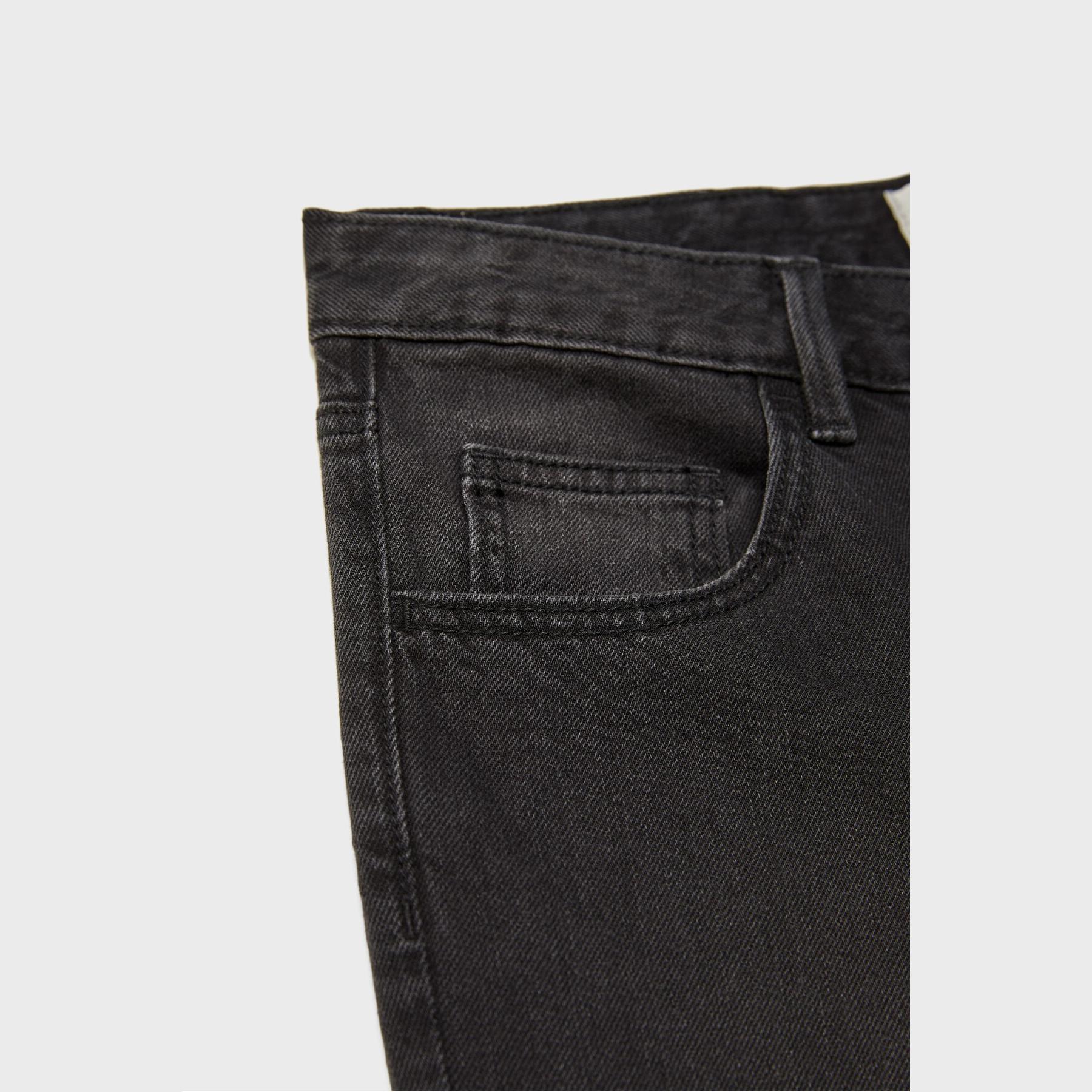 بنطال جينز أنيق من Stradivarius بلون رمادي مغسول، مصنوع من خامة قطنية مريحة بلمسة Vintage، يتميز بقصة إسبانيول واسعة من الأسفل، وخصر منخفض يمنحك مظهرًا عصريًا، مزود بإغلاق أمامي بسحاب وزر معدني، تصميم بخمسة جيوب عملية، وحلقات حزام، وأطراف سفلية مزودة بسحاب داخلي تضيف لمسة عصرية.