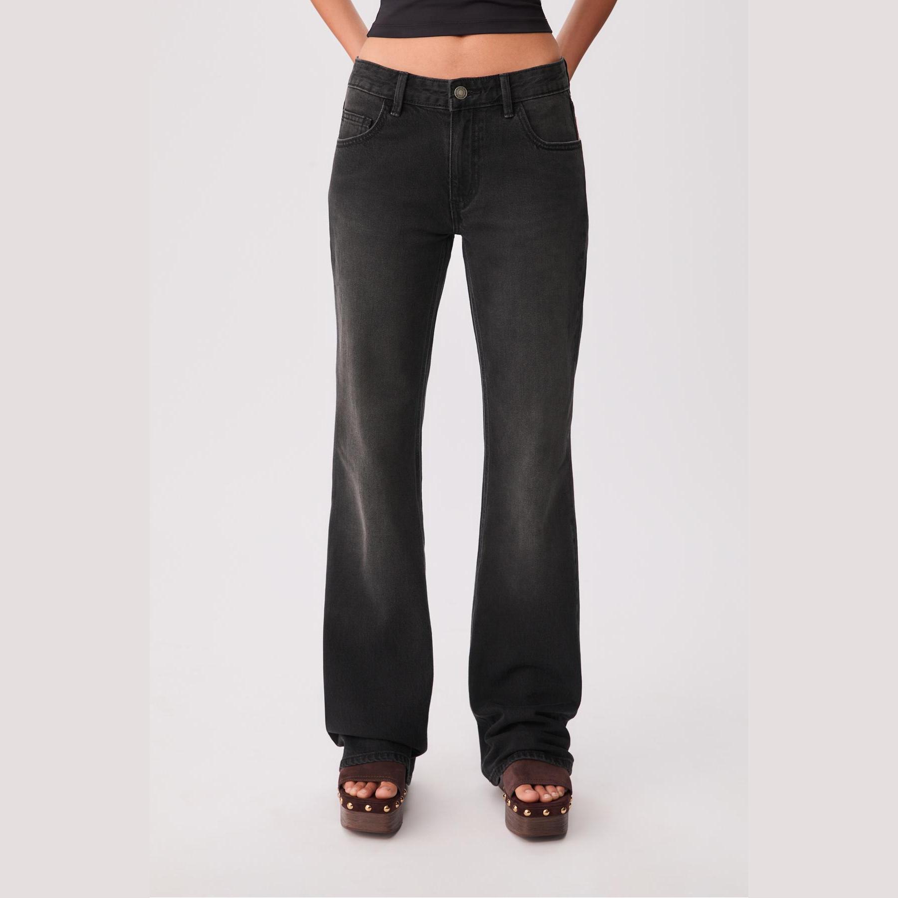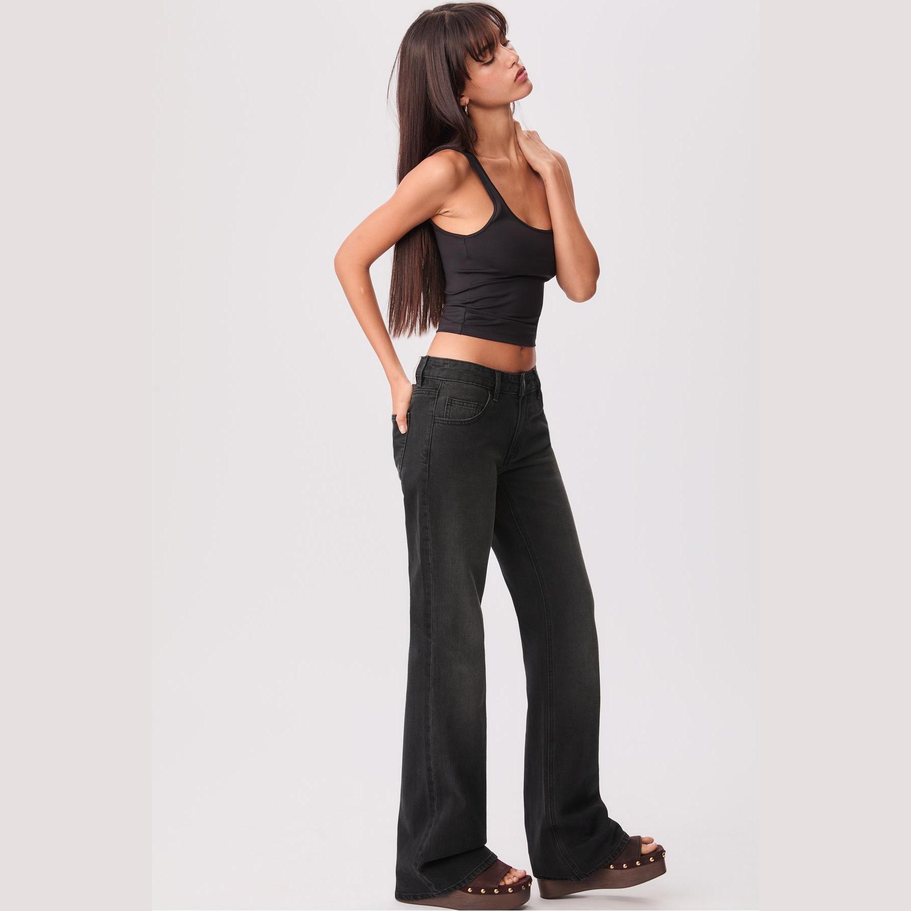 بنطال جينز بقصة إسبانيول وخصر منخفض – رمادي من Stradivarius