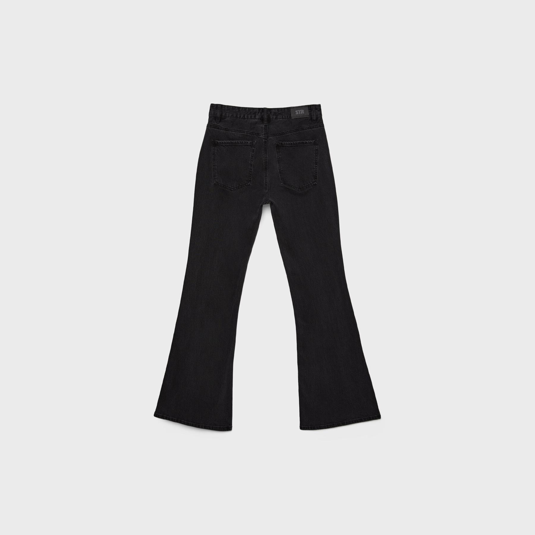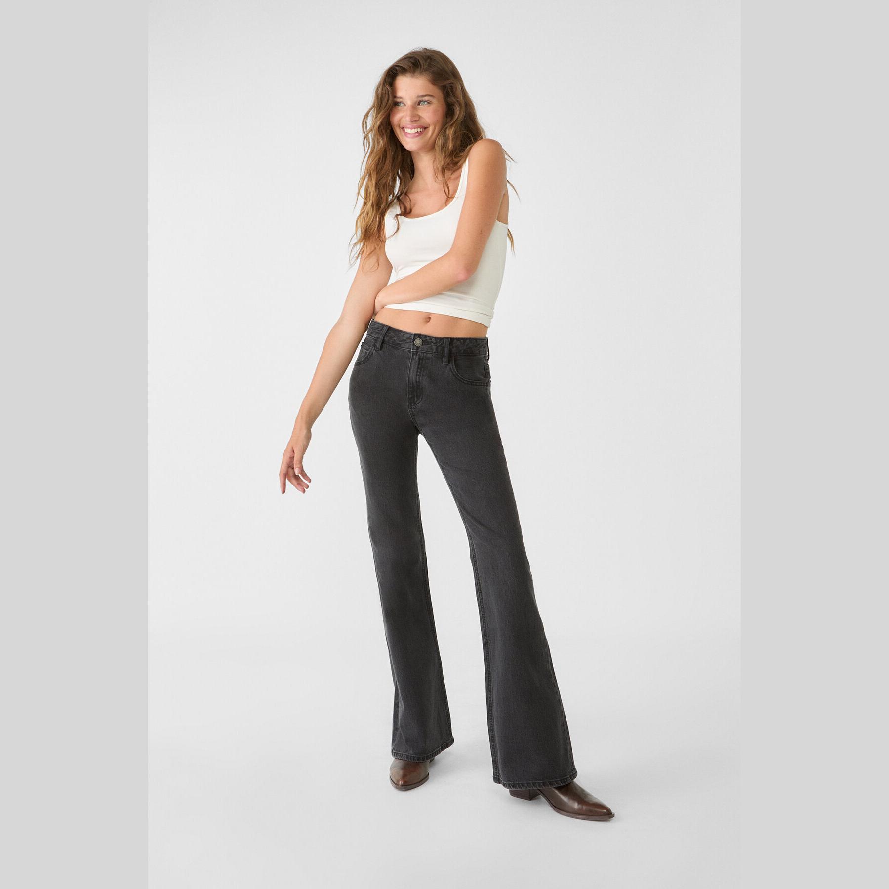 بنطال جينز Comfort بقصة إسبانيول وخصر عالي – أسود من Stradivarius
