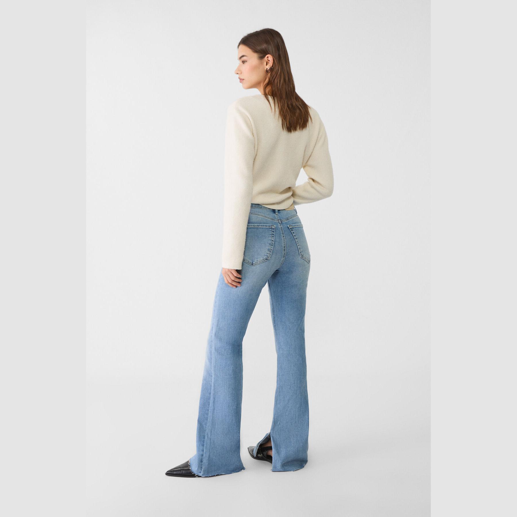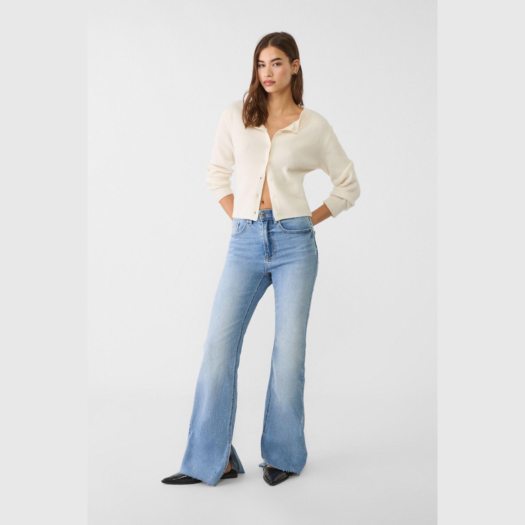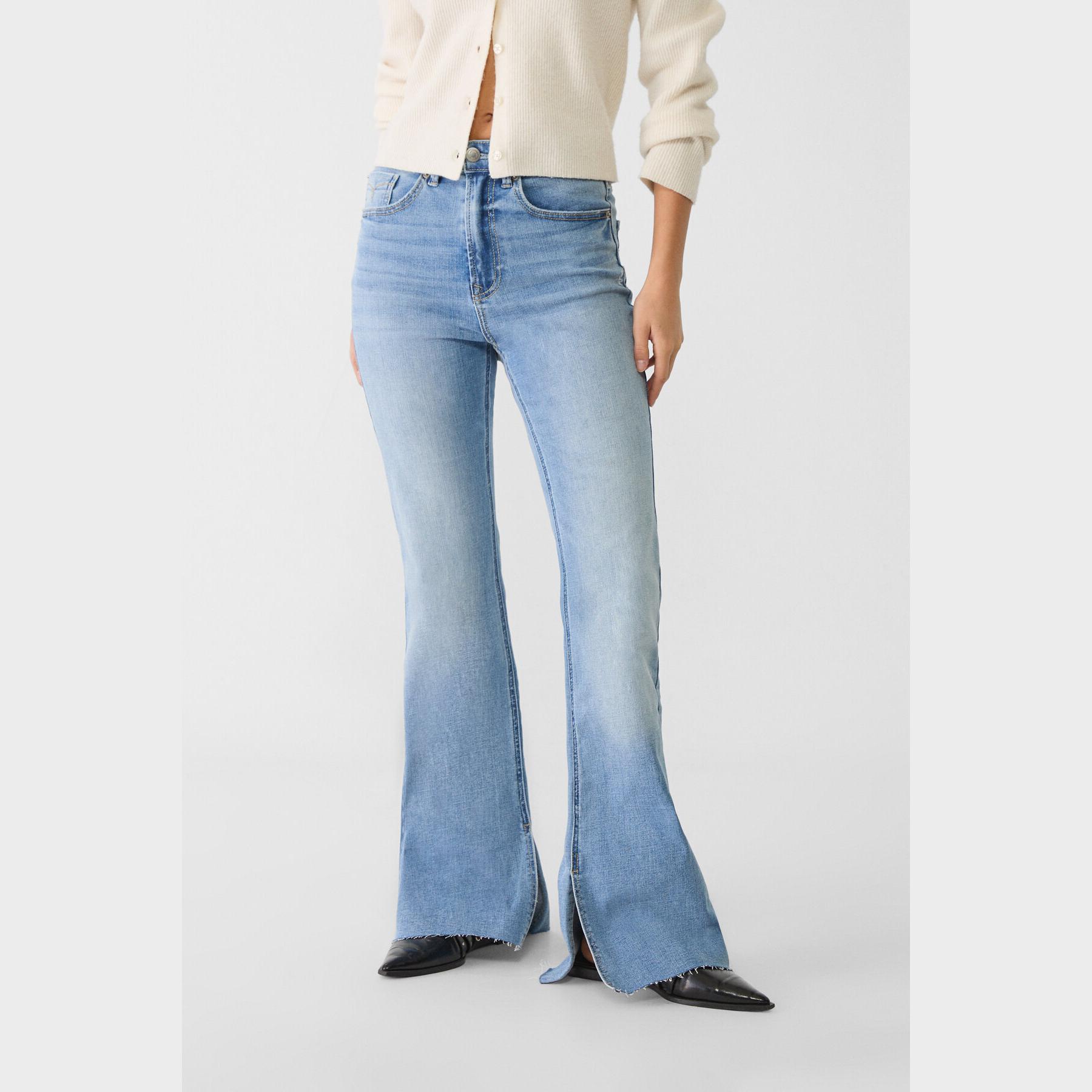 بنطال جينز Slim Fit بقصة إسبانيول مع شق داخلي – أزرق متوسط من Stradivarius